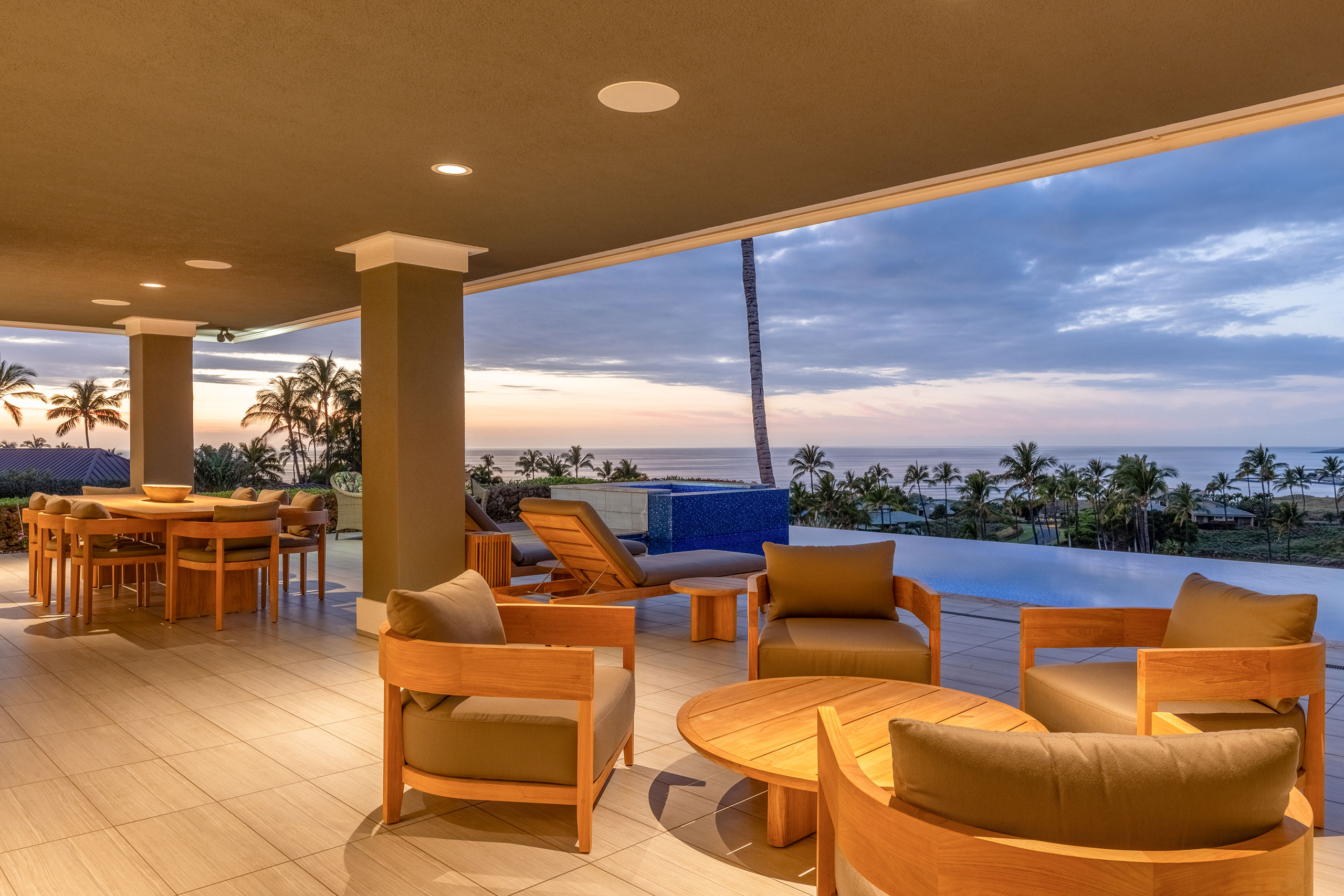 マウナ ケア レジデンスのフェアウェイズ ノースは、太陽の光がふり注ぐハウィ島コハラコーストに位置し、息をのむようなオーシャンビューとゴルフコースビューを見渡すラグジュアリーな邸宅です。広々としてエレガントなこの邸宅は、オープンコンセプトのデザインとなっており、インテリアは高級仕上げを施しております。屋外スペースのプライベートラナイ(ベランダ)は、ハワイの気持ちのよい気候を感じるのにぴったりの場所です。