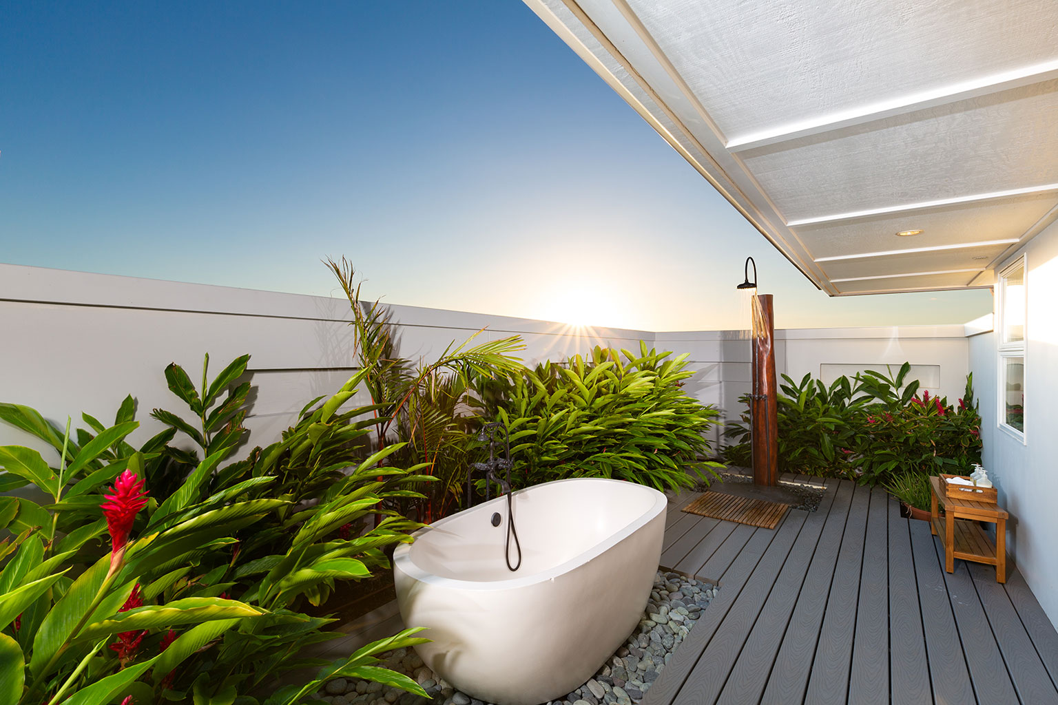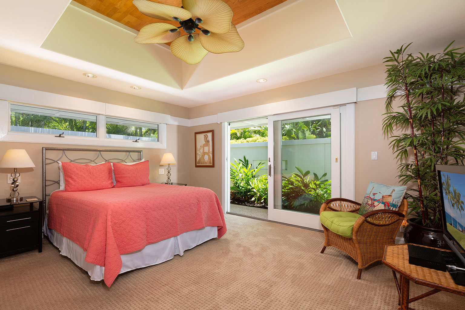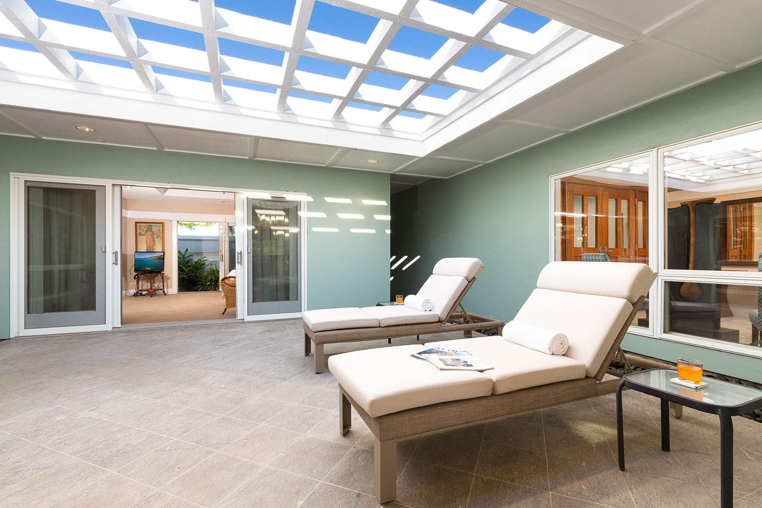 コートヤードを含む6か所のアウトドアスペースで読書を楽しんだり、屋外においてある卓球台で家族や友達とゲームをしたりも一興です。メインレジデンスには3つの寝室があり、プライマリースイートにはキングベッド1台が入っており、素晴らしいオーシャンビューの景色を望み、屋内ウォークインシャワーや屋外のバスタブがあるバスルームも併設されています。セカンダリースイートにはクイーンベッドが1台が入っており、バスルームにはジャグジータブもあります。3つ目の寝室には、合わせて使うとキングベッドになるツインベッドが2台入っており、自由にアレンジしていただけます。階下にあるゲストハウスの方に行きますと、プライベートラッププール、ビーチチェアがあります。ゲストハウスにはクイーンベッド1台とクイーンサイズのソファーベッドが1台が入っており、小さなキチネットとラウンジエリアにつながるバスルーム、屋外シャワーが併設されています。