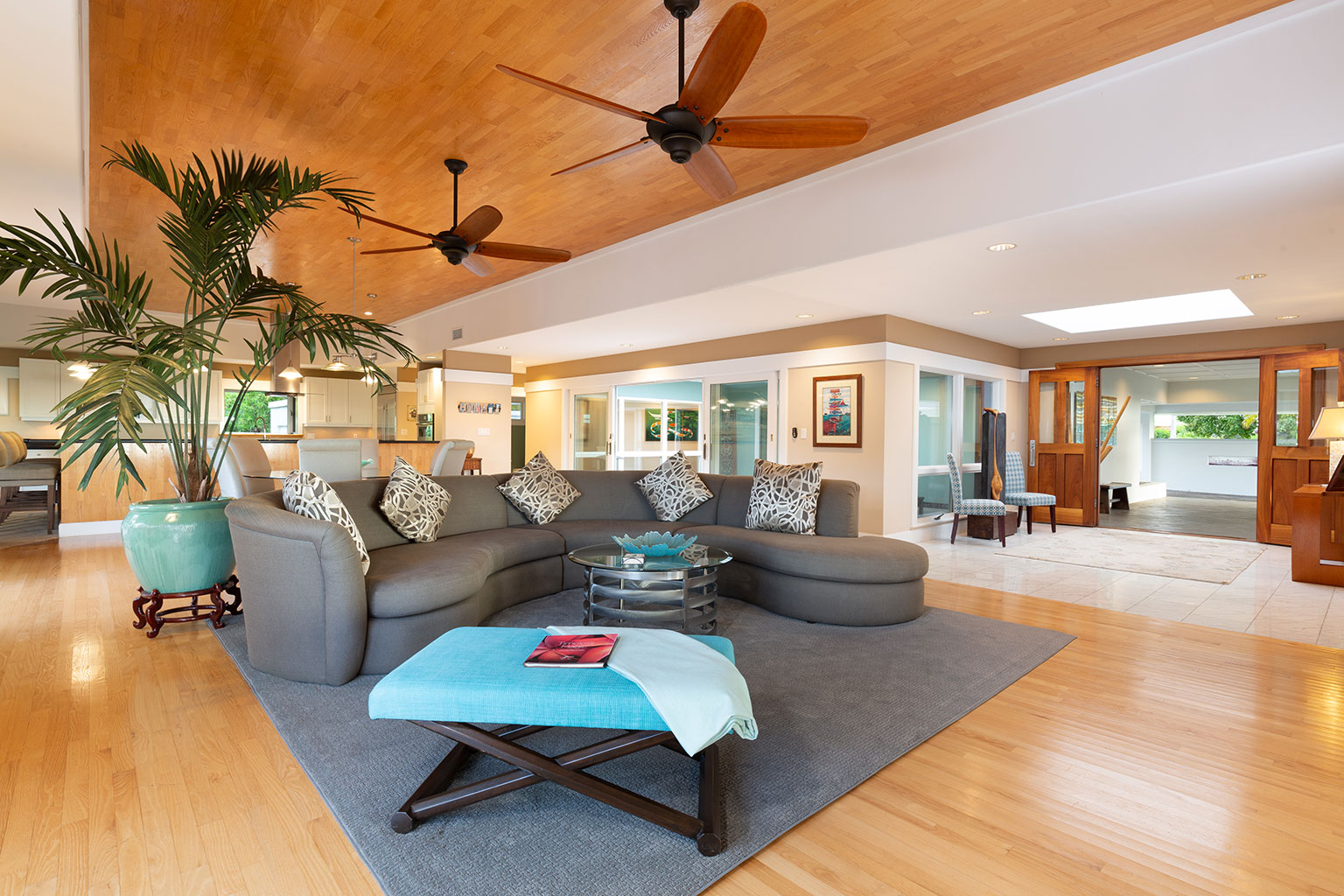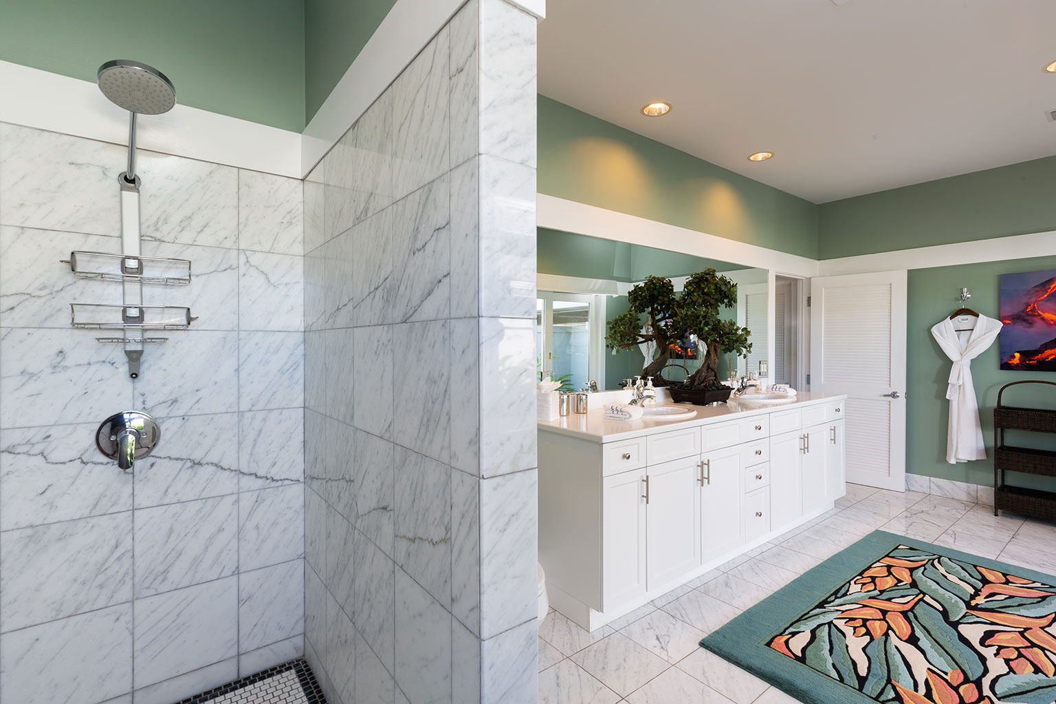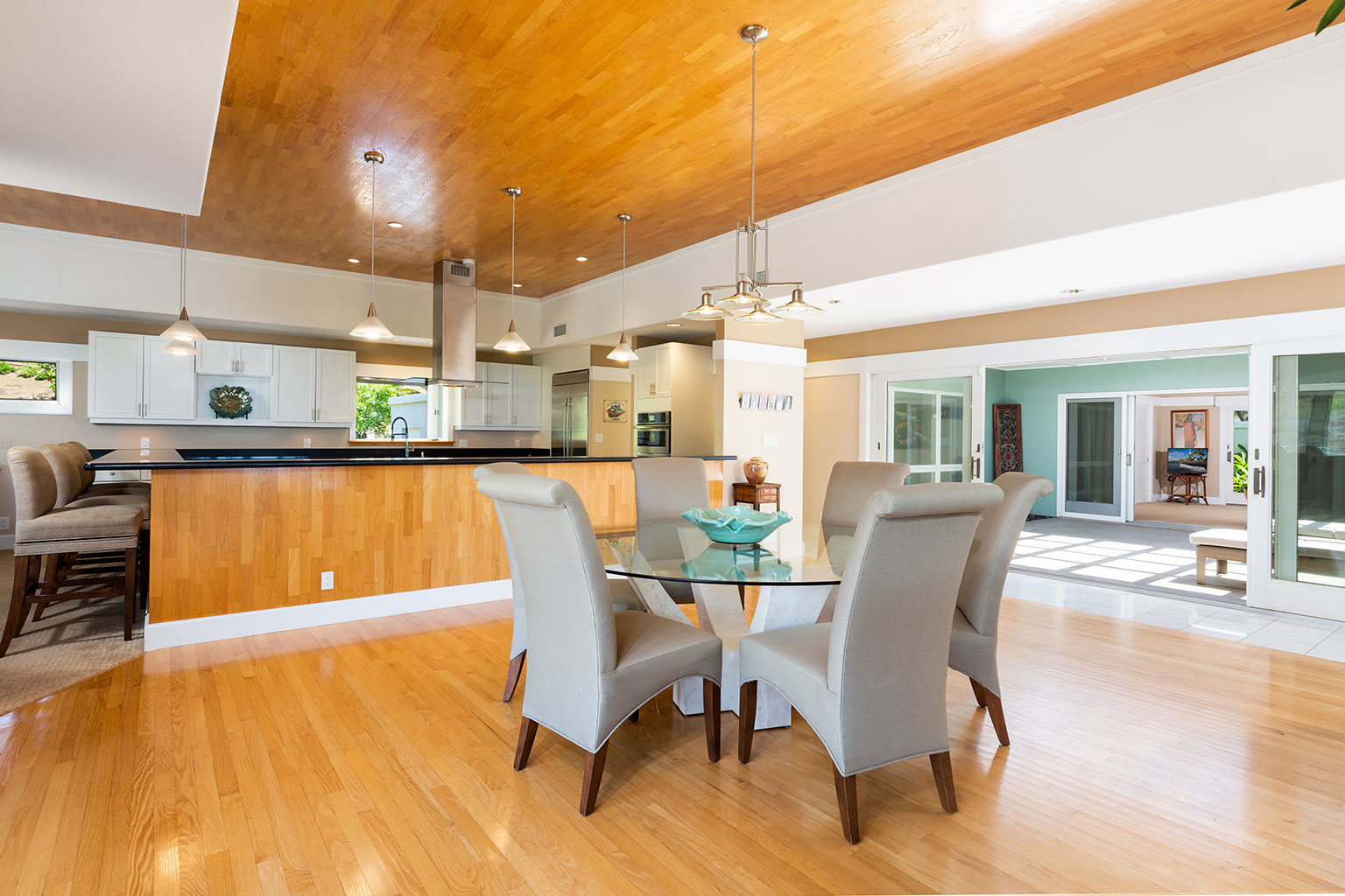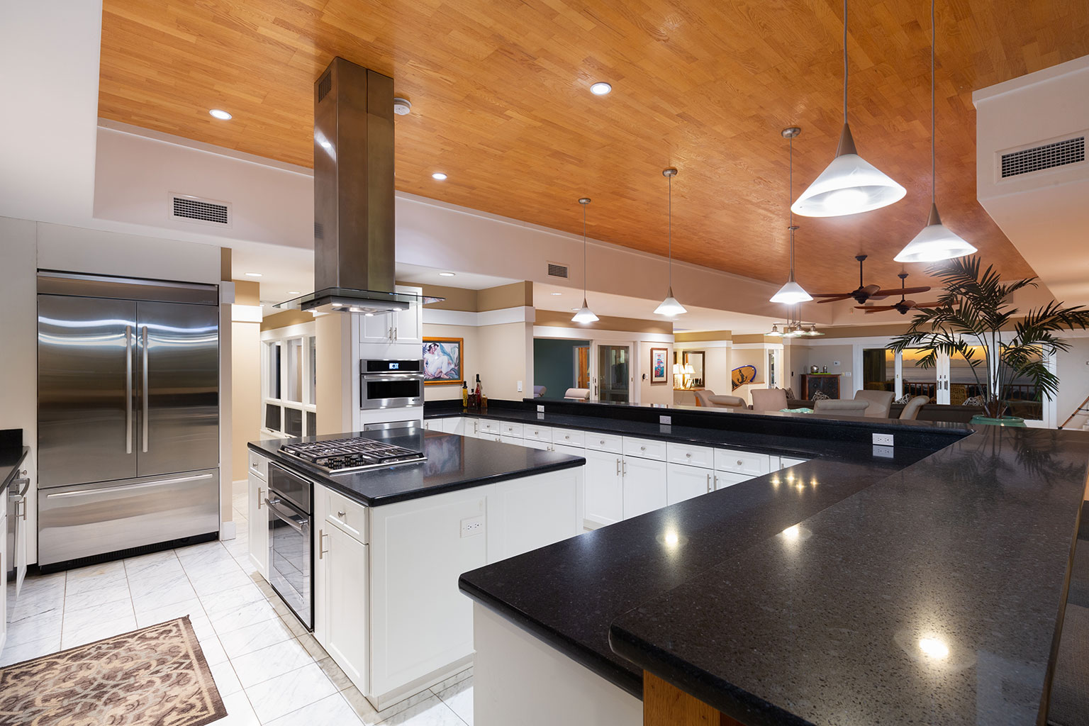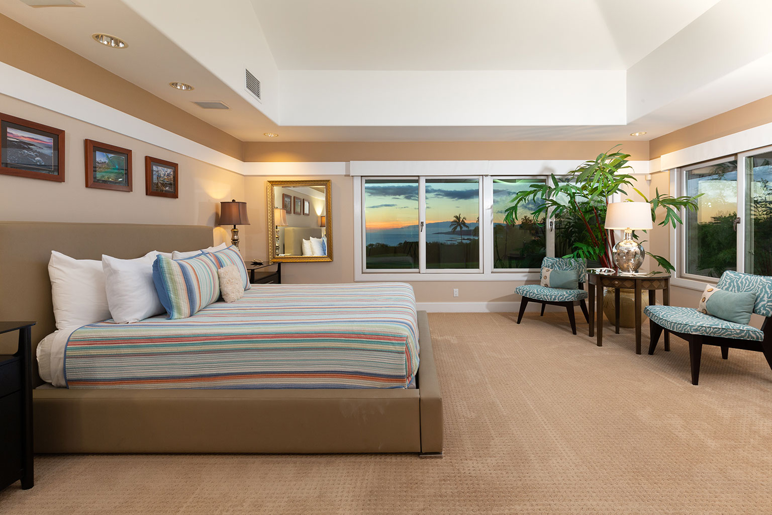 有名なマウナ ケア ビーチのノース フェアウェイズに位置するこの魅力的な4ベッドルームの邸宅には、ハワイのリゾートバケーションに必要なものが全て揃っています。パノラマのオーシャンビューを見渡すだけでなく、マウイ島、そしてコハラの山々の景色もお楽しみいただけます。オープンな設計になっているリビングに入ると、ステンレススチールのアプライアンスが揃う、ゆったりとした造りのキッチンがあります。プライベートシェフを招いたり、多人数のパーティーを催すたりするのにもぴったりです。室内にある4つのバーシート、6人で利用できるダイニングテーブル、8人用の長いダイニングテーブルがある屋外デッキなど、お食事を楽しめる素敵なエリアが多数あります。キッチンは2つのリビングスペースに面しており、フォーマルで会話を楽しむリビングエリアと、テレビ見てリラックスするリビングエリアに分かれています。