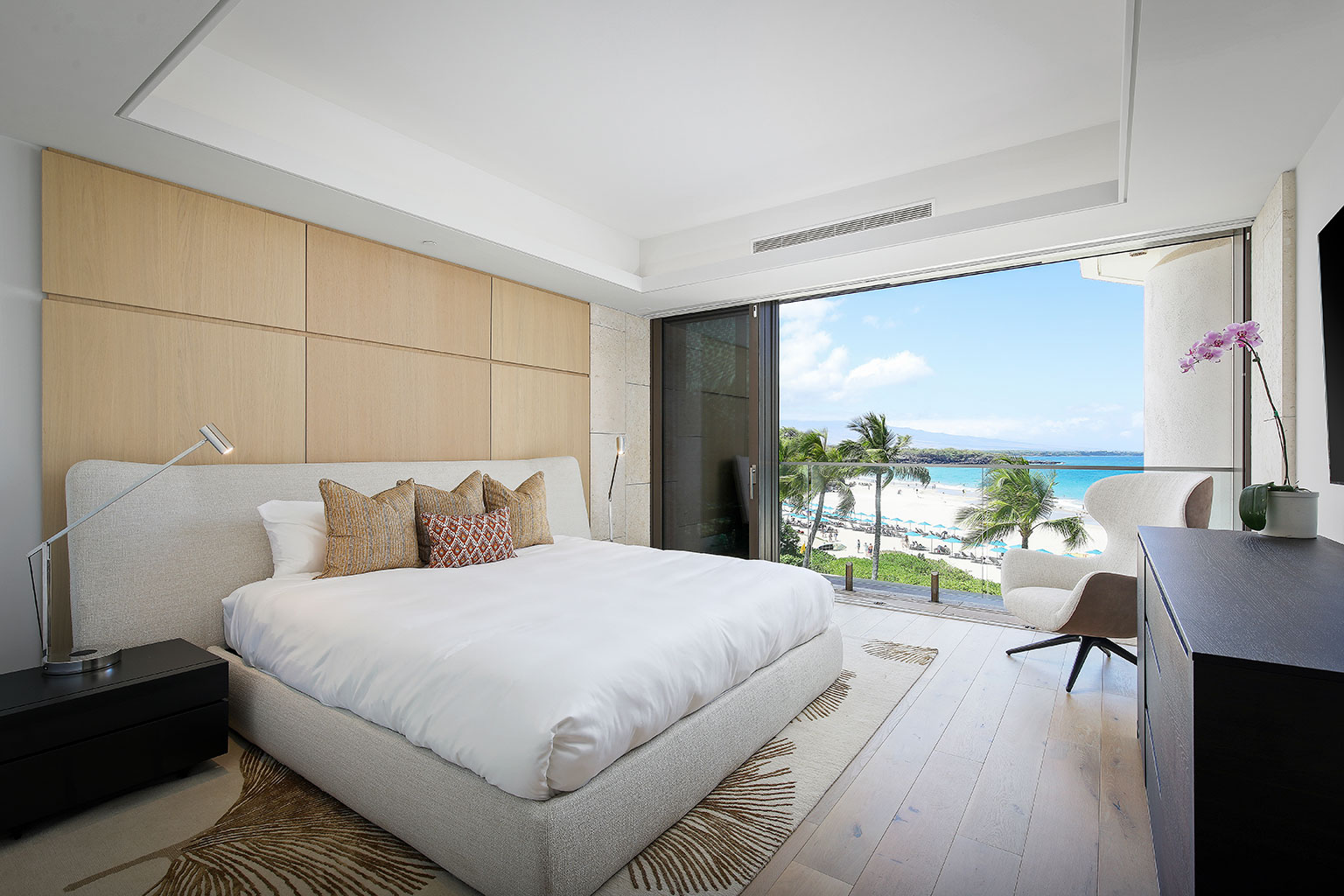 この新築オーシャンフロント豪華邸宅には6名でご宿泊いただけます。床から天井まで広がる壁一面の大きなスライド ガラス窓が屋内と屋外のスペースを一体化するリビング エリア、最新鋭のアプライアンスを揃えたシェフ仕様キッチン、豪華なバスルームを併設したゲストスイート2部屋を備えています。デン/ボーナスルームには、ダブルサイズのバンクベッドが入っています。また、トイレはTOTO社製、お部屋には4K/8Kテレビがあります。ハプナ ゴルフコースのクラブハウス至近というロケーションも魅力のレジデンスです。