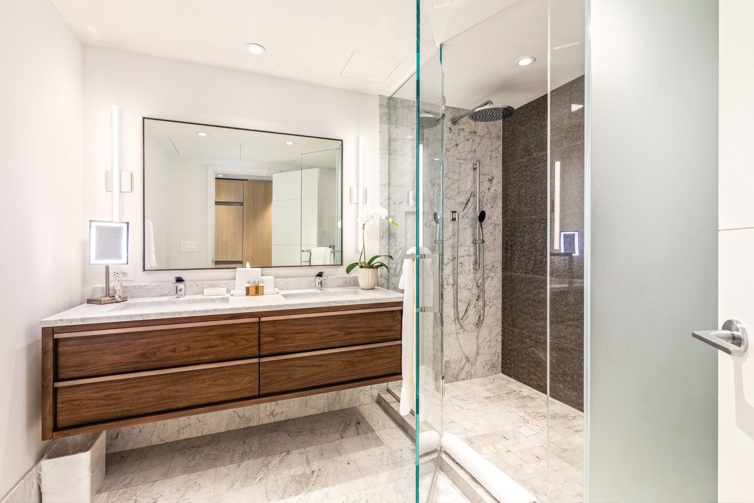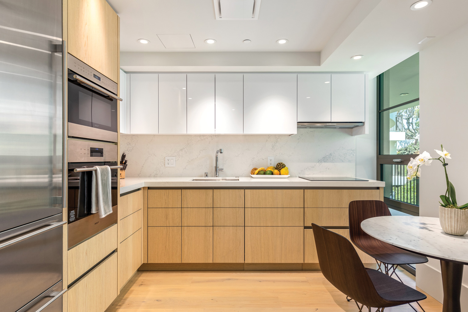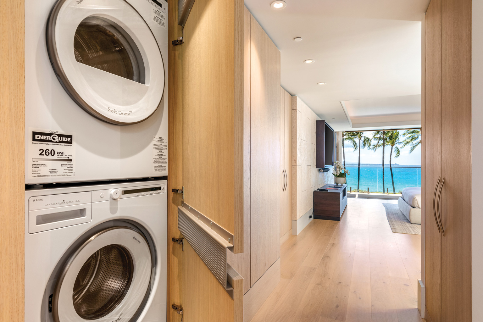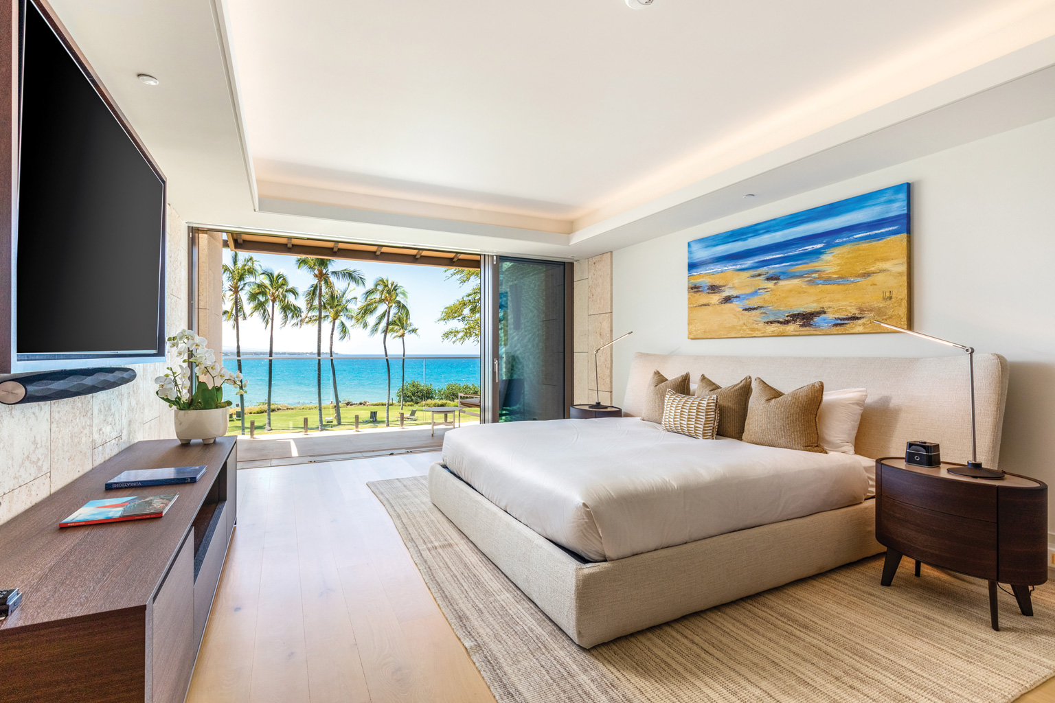 2階に位置するこのオーシャンフロントの素晴らしい新築ステュディオでは、床から天井まで広がる壁一面の大きなスライド ガラス窓が屋内と屋外のスペースを一体化するリビング エリア、シェフが愛用するWolf製やSub-Zero製、Miele製の調理機器をそろえた豪華プロ キッチン、ワインセラー、そしてハンドクラフトのキャビネットをご提供しております。