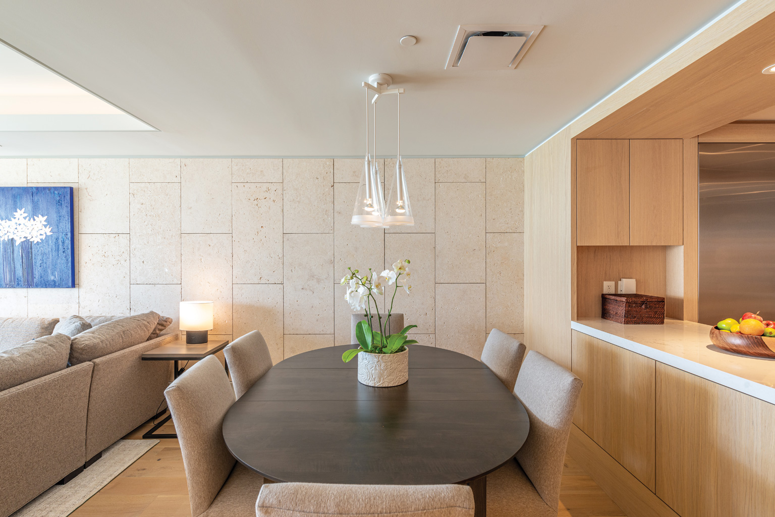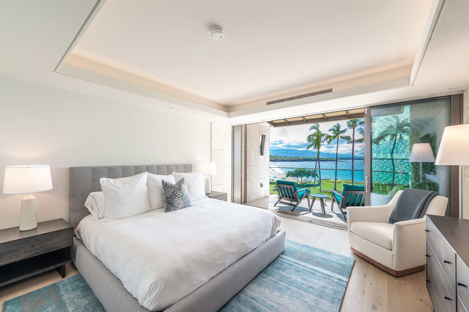 2階に位置するハワイの傑作ともいえるこの最新でシックな新築オーシャンフロント レジデンスでは、床から天井まで広がる壁一面の大きなスライド ガラス窓が屋内と屋外のスペースを一体化するリビング エリア、シェフが愛用するWolf製やSub-Zero製、Miele製の調理機器をそろえたプロ キッチン、ワインセラー、そしてハンドクラフトのキャビネットをご提供しております。