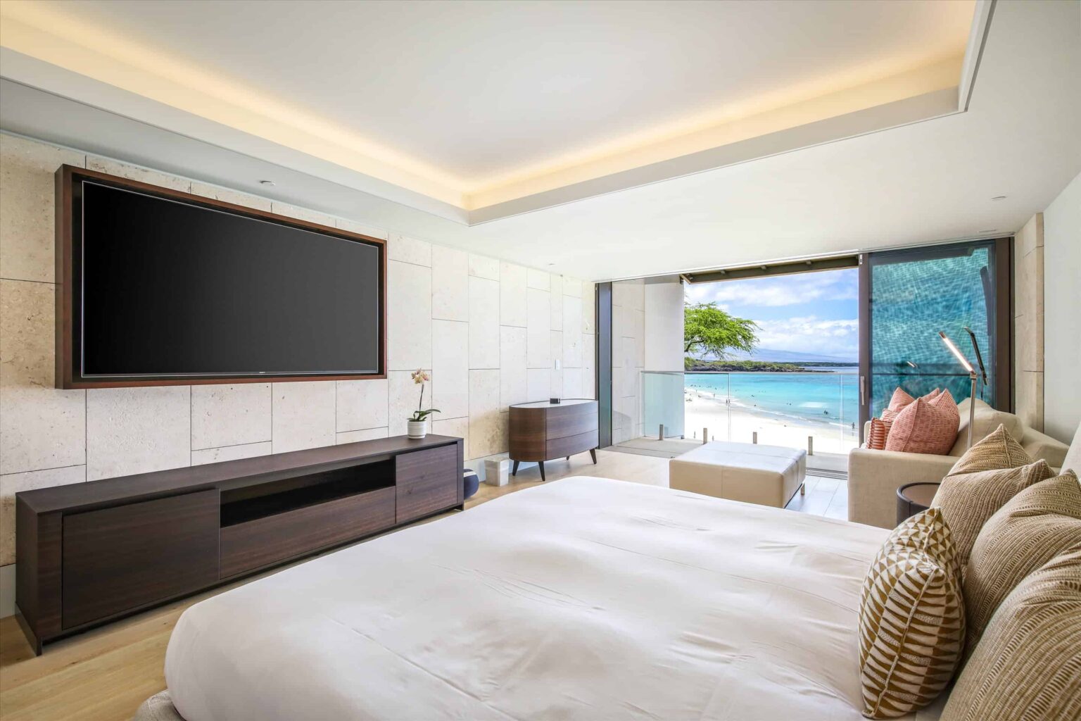 その他、スパのような高級感あふれるバスルームとキングベッド、ご希望される方にはツインサイズのソファベッド、Asko製の洗濯/乾燥機、エアコン、ラナイも完備。ハプナ ゴルフコースのクラブハウスからほど近いロケーションも魅力のレジデンスです。