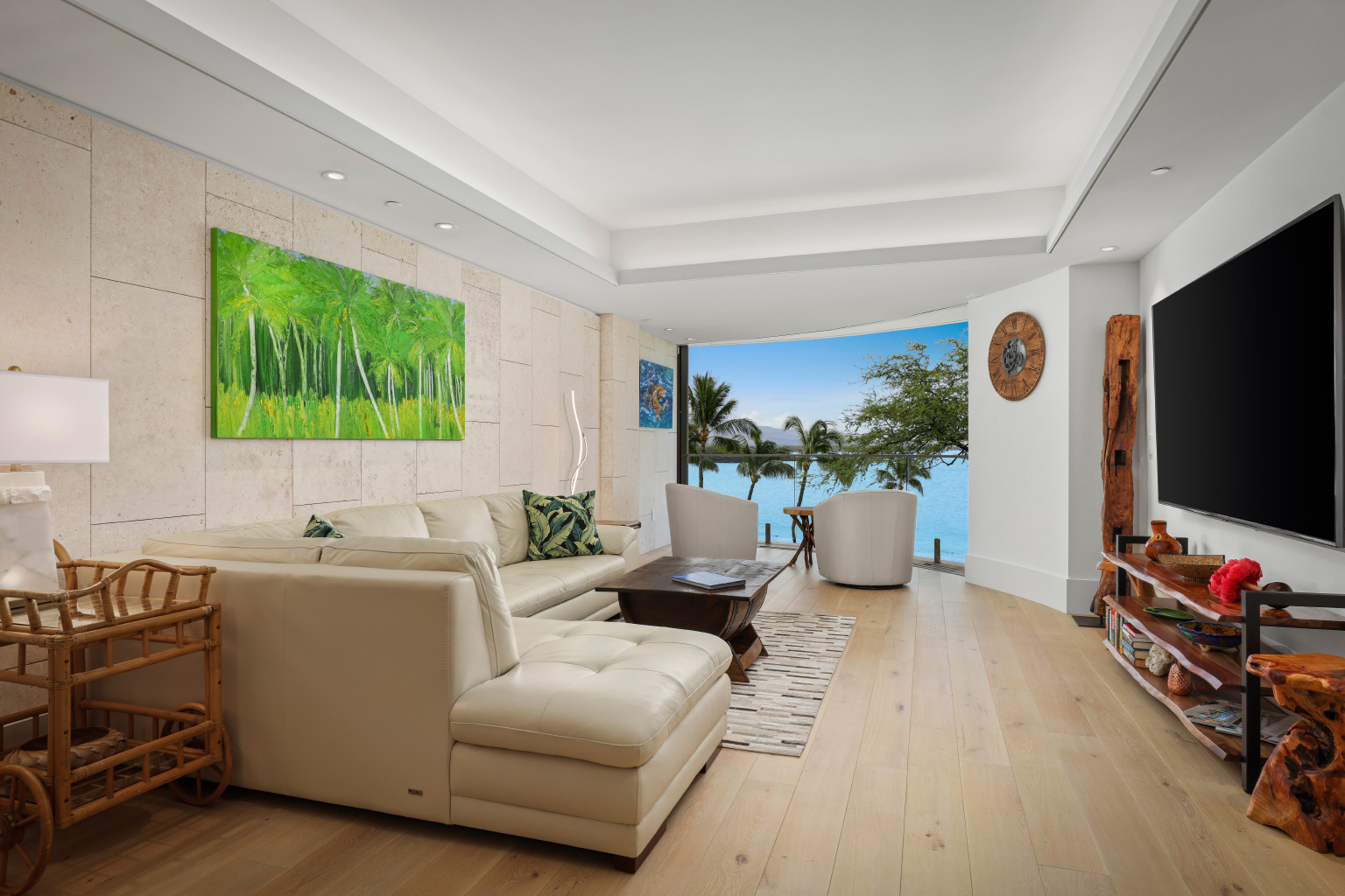 その他、調整可能な無重力ベース付きキングサイズ「パープル」のマットレス、86インチのスマートTV、贅沢なバスタブ付きのバスルームを設えたゲスト スイート ルーム、ソファベッドと65インチのスマートTVを備えたボーナスルーム(Den)、エアコン、ランドリールーム、Asko製の洗濯/乾燥機も完備。Wi-Fi、ネットフリックス、プライム ビデオ、YouTube TV、および駐車場も含まれています。ハプナ ゴルフコースのクラブハウスからほど近いロケーションも魅力のレジデンスです。