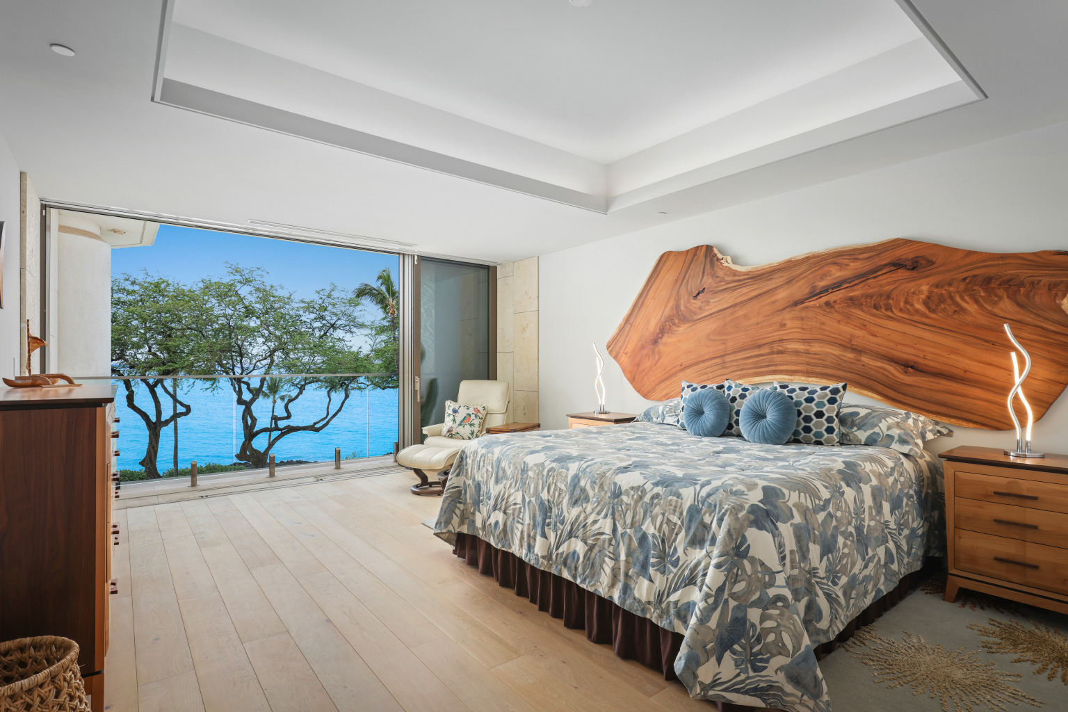 最上階に位置する比類なき島の豪華な空間の新築ビーチフロント レジデンスには、屋内スペースがラナイにもなる床から天井まで広がる壁一面の大きなスライド ガラス窓、シェフが愛用するWolf製やSub-Zero製、Miele製の調理機器、48本保管できるワインセラーをそろえたグルメなキッチン、そして4人掛けのダイニングテーブルをご提供しております。