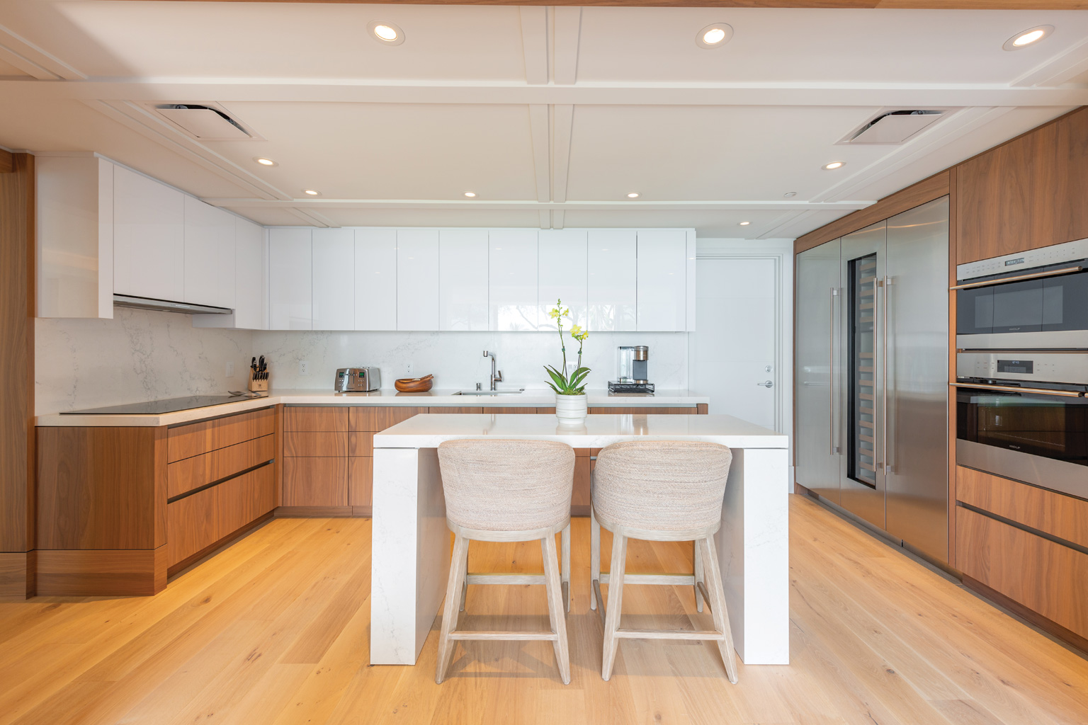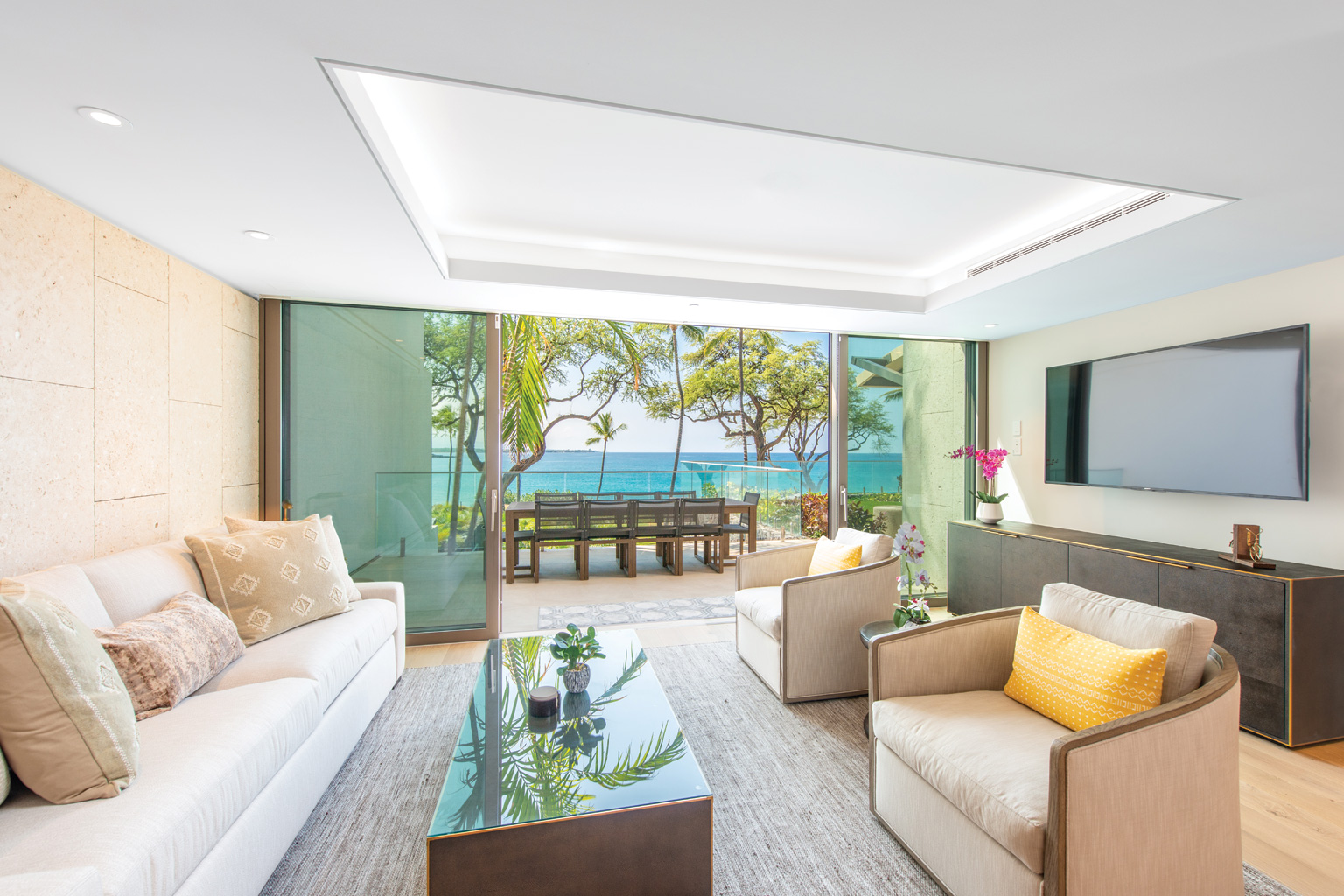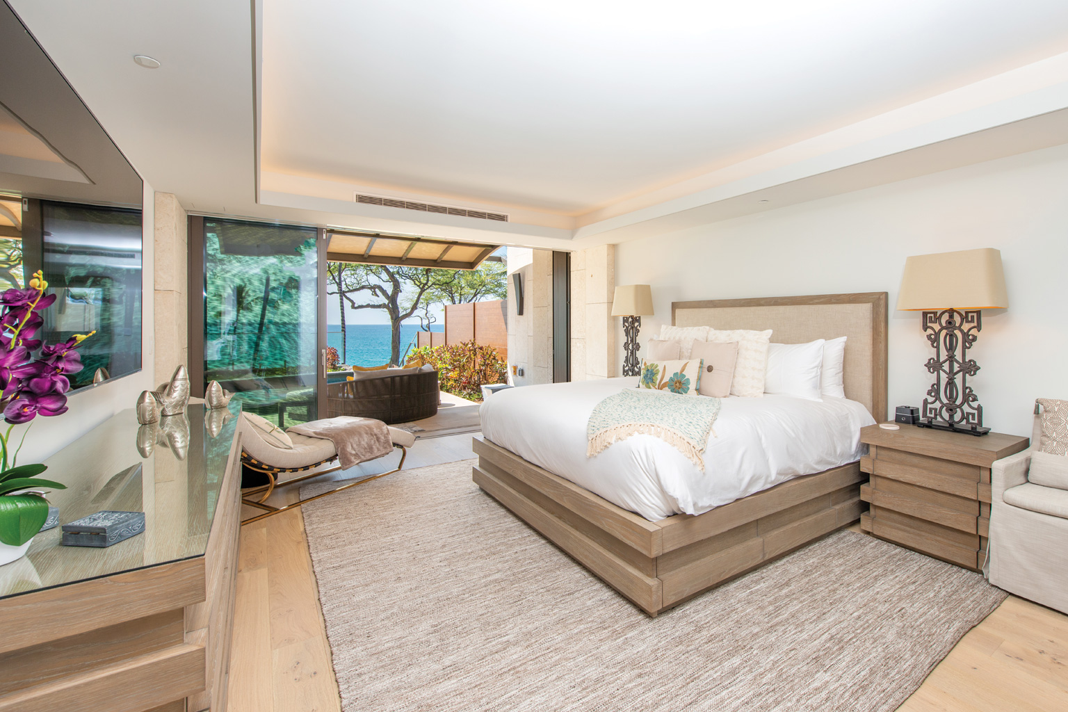 他に類を見ないハワイの傑作ともいえるこのオーシャンフロントの新築レジデンスでは、地上階からビーチへのアクセスが容易な最高の利便性と完璧なプライバシー、そして広々とした空間が自然に調和しています。レジデンスには床から天井まで広がる壁一面の大きなスライド ガラス窓が屋内と屋外のスペースを一体化するリビング エリア、シェフが愛用するWolf製やSub-Zero製、Miele製の調理機器をそろえたプロ キッチン、ダブルオーブン、ワインセラー、ハンドクラフトのキャビネット、さらに2つある各リビングルームにはキングサイズのソファベッドをご用意しております。