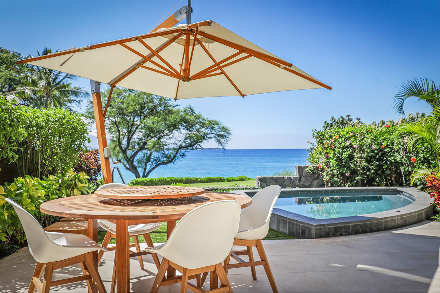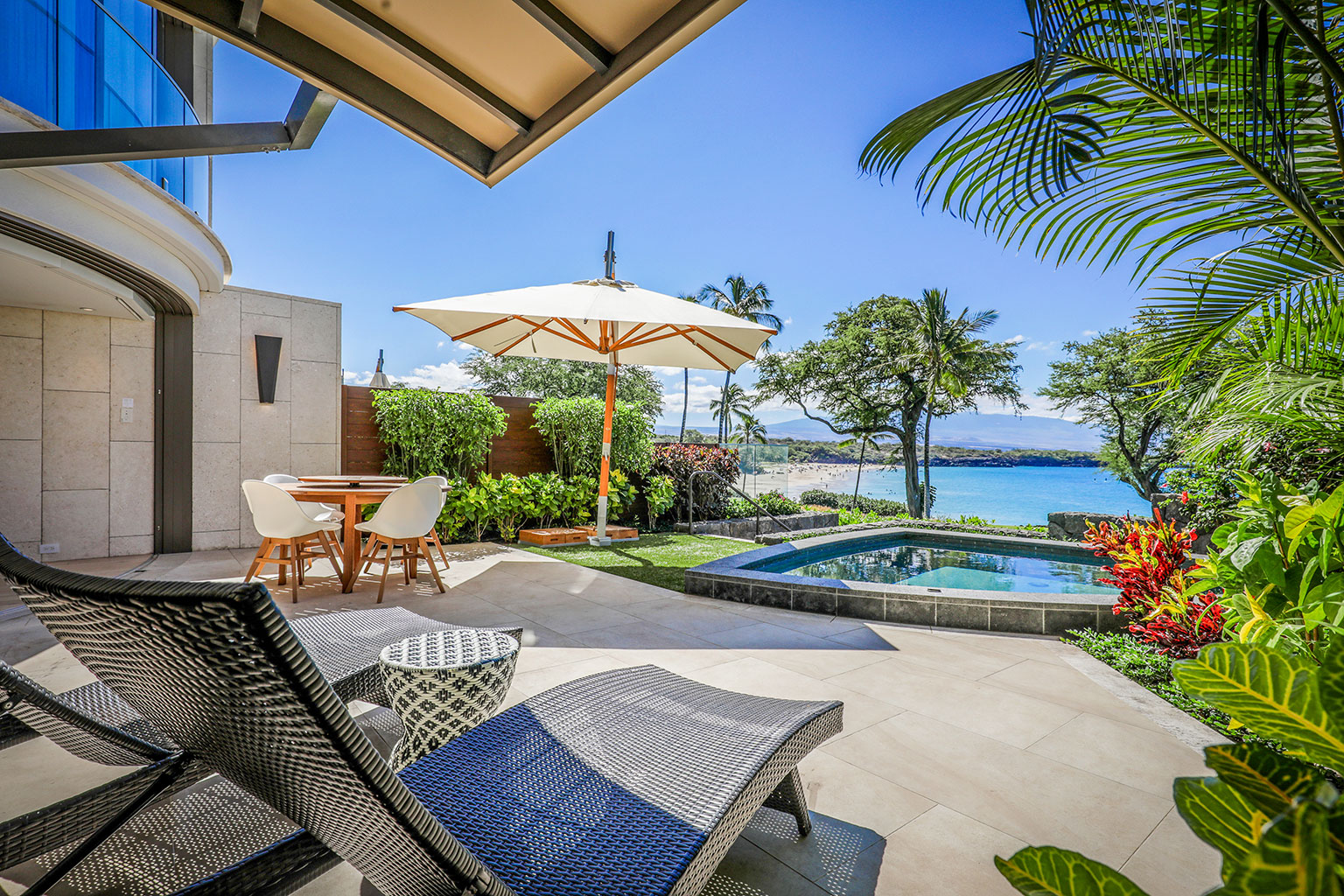 その他、各部屋に高級感あふれるバスルームを設えたゲスト スイートルームが2部屋(一部屋にはキングベッド、もう一部屋にはクイーンベッド)、Asko製の洗濯/乾燥機、エアコン、家具の調った広いラナイも完備。ハプナ ゴルフコースのクラブハウスからほど近いロケーションも魅力のレジデンスです。