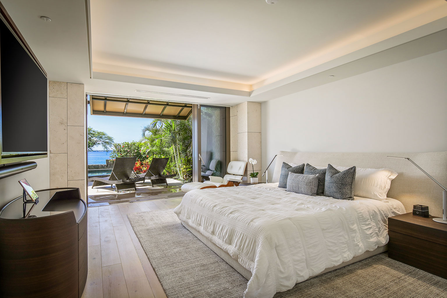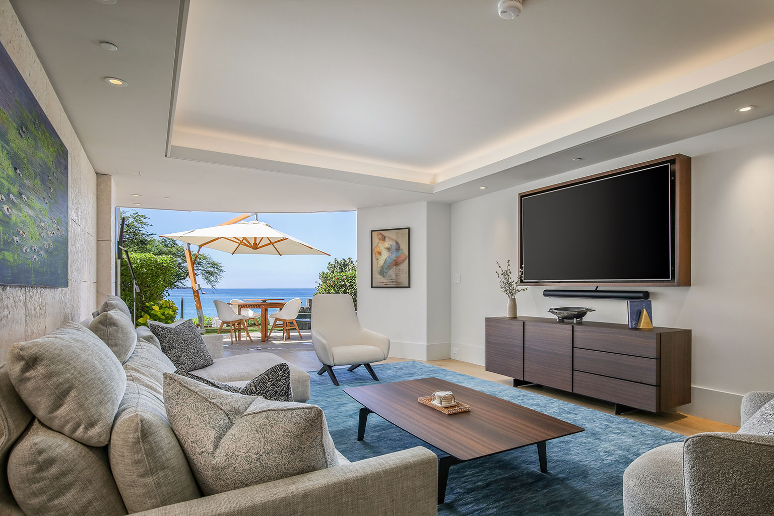 このハワイの傑作ともいえる壮麗な新築オーシャンフロント レジデンスでは、床から天井まで広がる壁一面の大きなスライド ガラス窓が屋内と屋外のスペースを一体化するリビング エリア、シェフが愛用するWolf製やSub-Zero製、Miele製の調理機器をそろえたプロ キッチン、ワインセラー、そしてハンドクラフトのキャビネットをご提供しております。