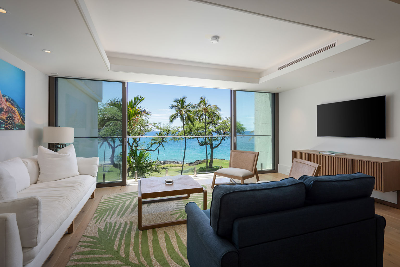 3階に位置するハワイの傑作ともいえるこのオーシャンフロントの優雅なレジデンスには、床から天井まで広がる壁一面の大きなスライド ガラス窓が屋内と屋外のスペースを一体化するリビング エリア、ダブルオーブン、ワインセラーなど、プロシリーズのWolf製やSub-Zero製の調理機器をそろえたグルメなキッチン、6人以上座れるダイニングテーブルをご提供しております。
