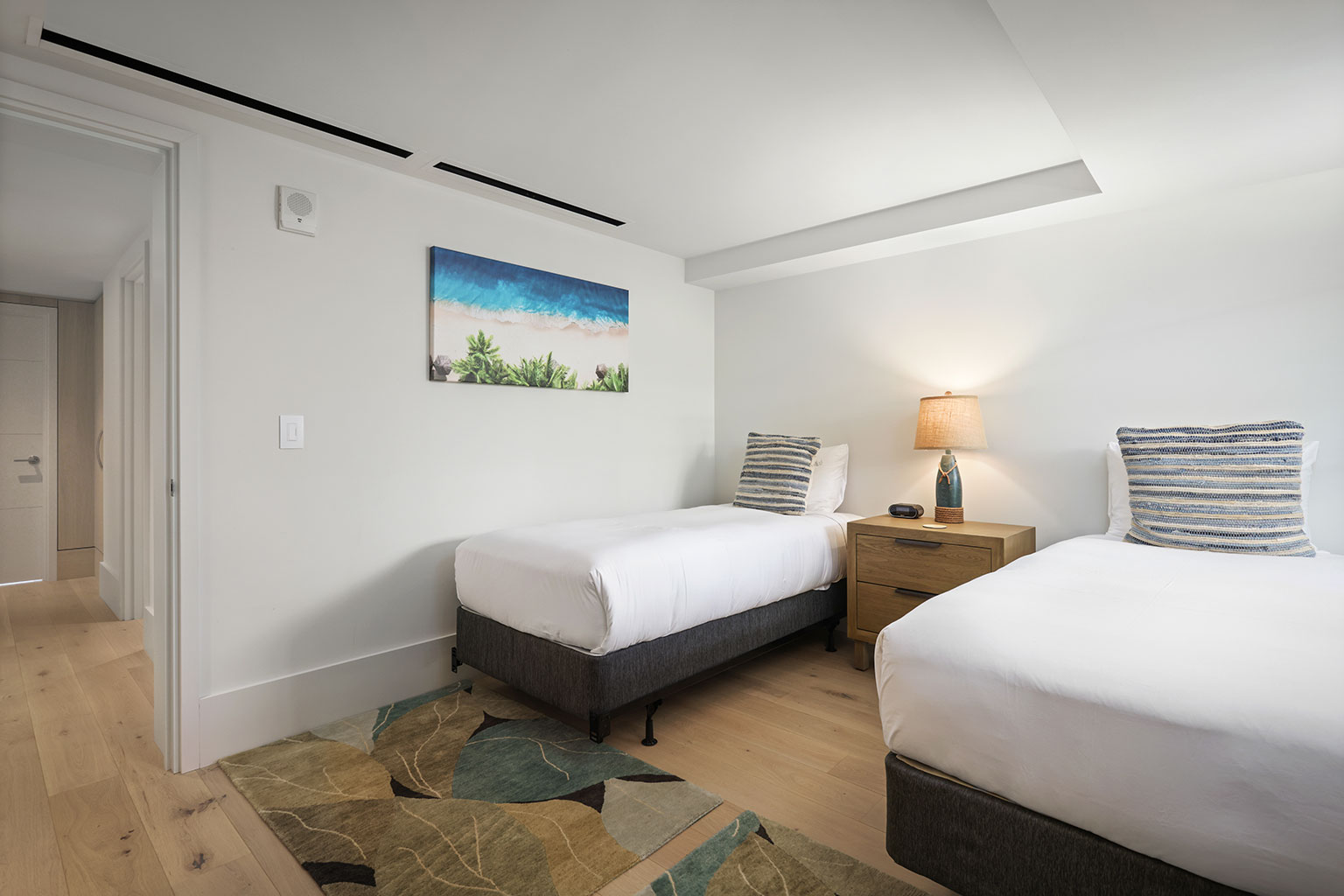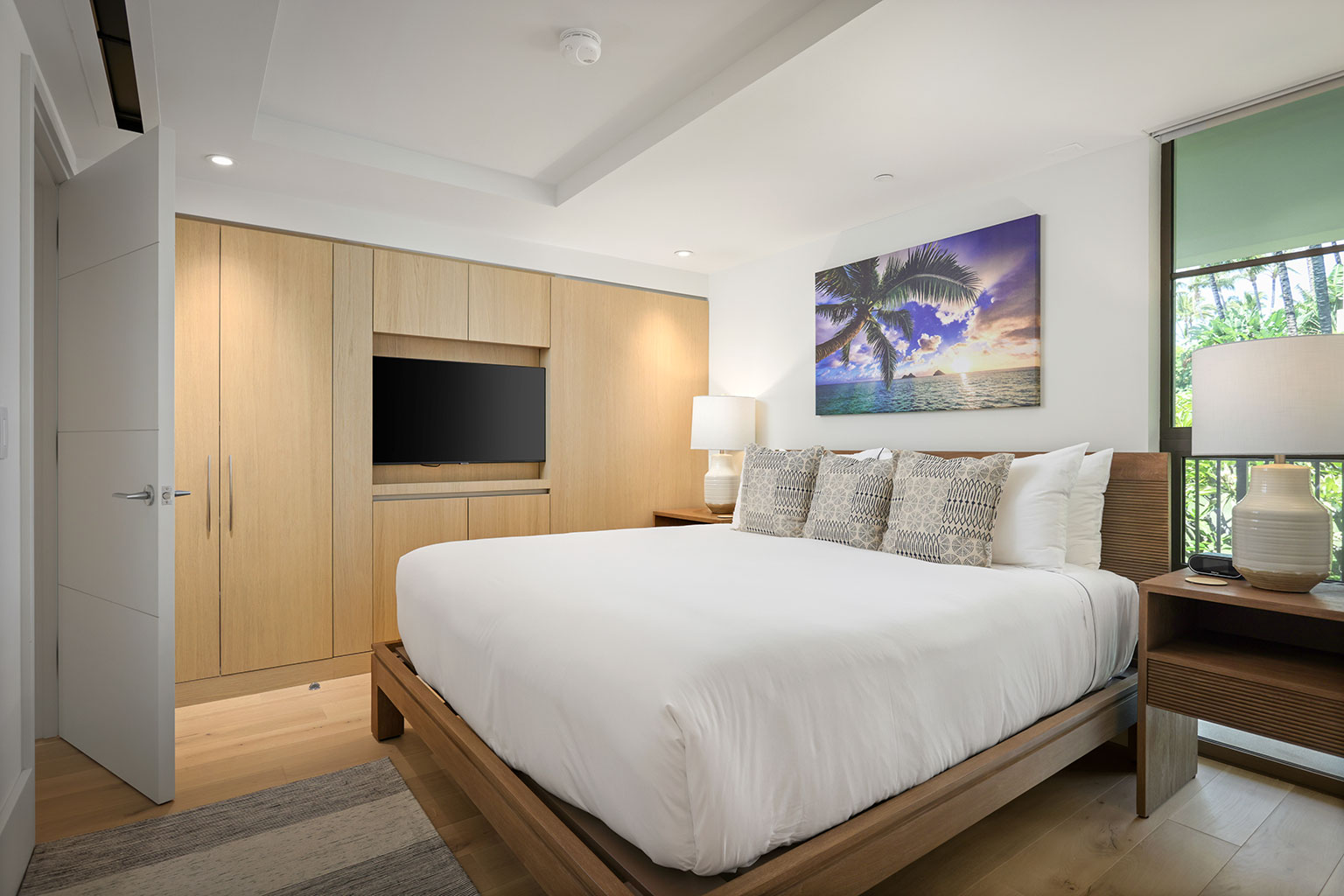 この他、スパのような高級感あふれる専用バスルームを設けた3つのゲストスイート(二部屋にはカリフォルニア キングベッド、一部屋にはキングベッドとしても利用できるツインベッド2台)、ランドリールーム、ツインサイズのソファーベッド、エアコン、家具を調えたラナイも完備。ハプナ ゴルフコースのクラブハウスからほど近いロケーションも魅力のユニットです。