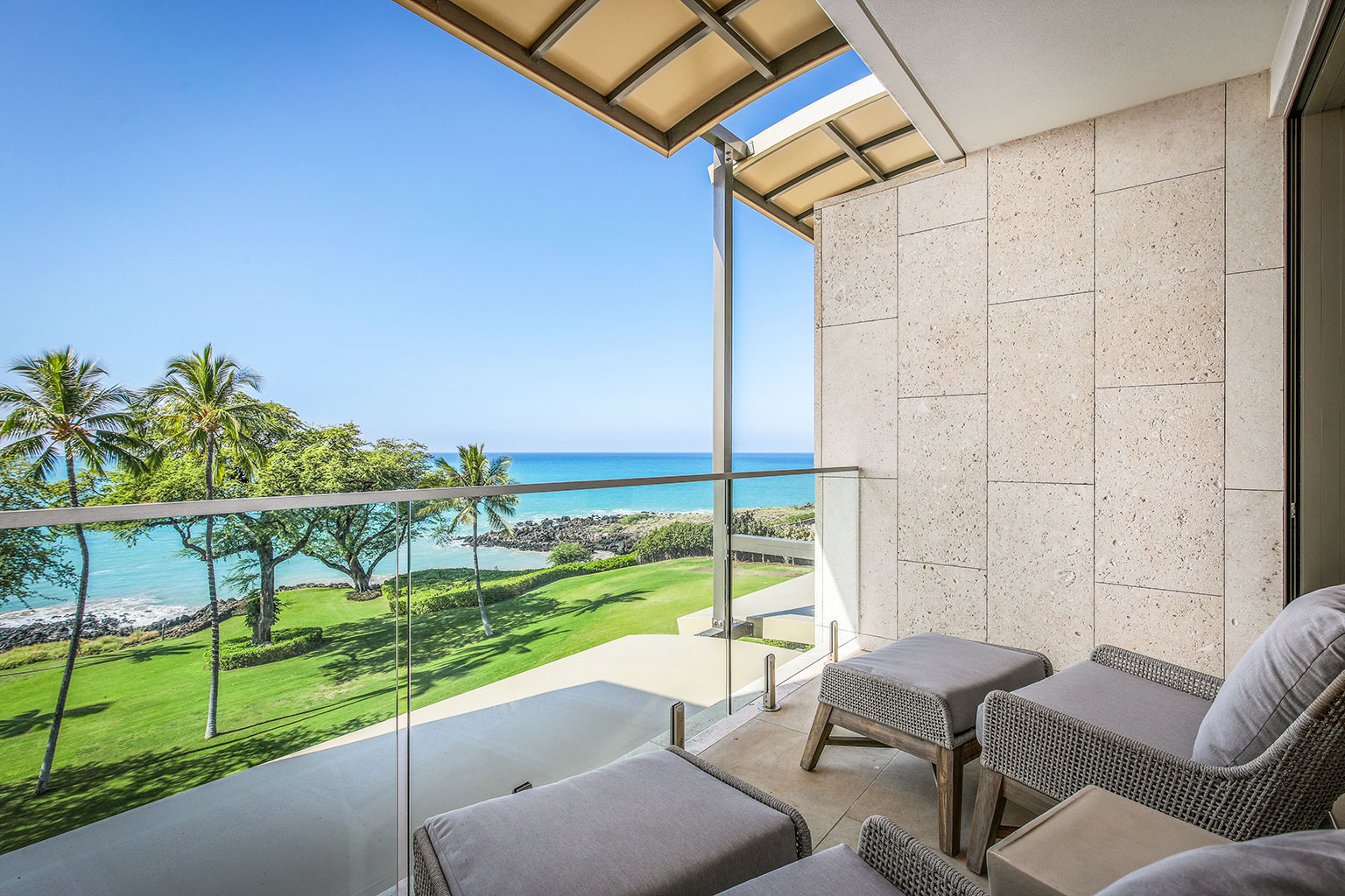 その他、豪華な専用バスルームを設けた3つのゲスト スイート ルーム(2部屋にはカリフォルニアキングベッド、1部屋にはキングベッドとしても利用できるツインベッド)、ツインのトランドルベッドが下に収納されているクイーンサイズ デイベッドを備えたボーナスルーム(Den)、ランドリールーム、エアコン、家具の調ったラナイも完備。ハプナ ゴルフコースのクラブハウスからほど近いロケーションも魅力のレジデンスです。