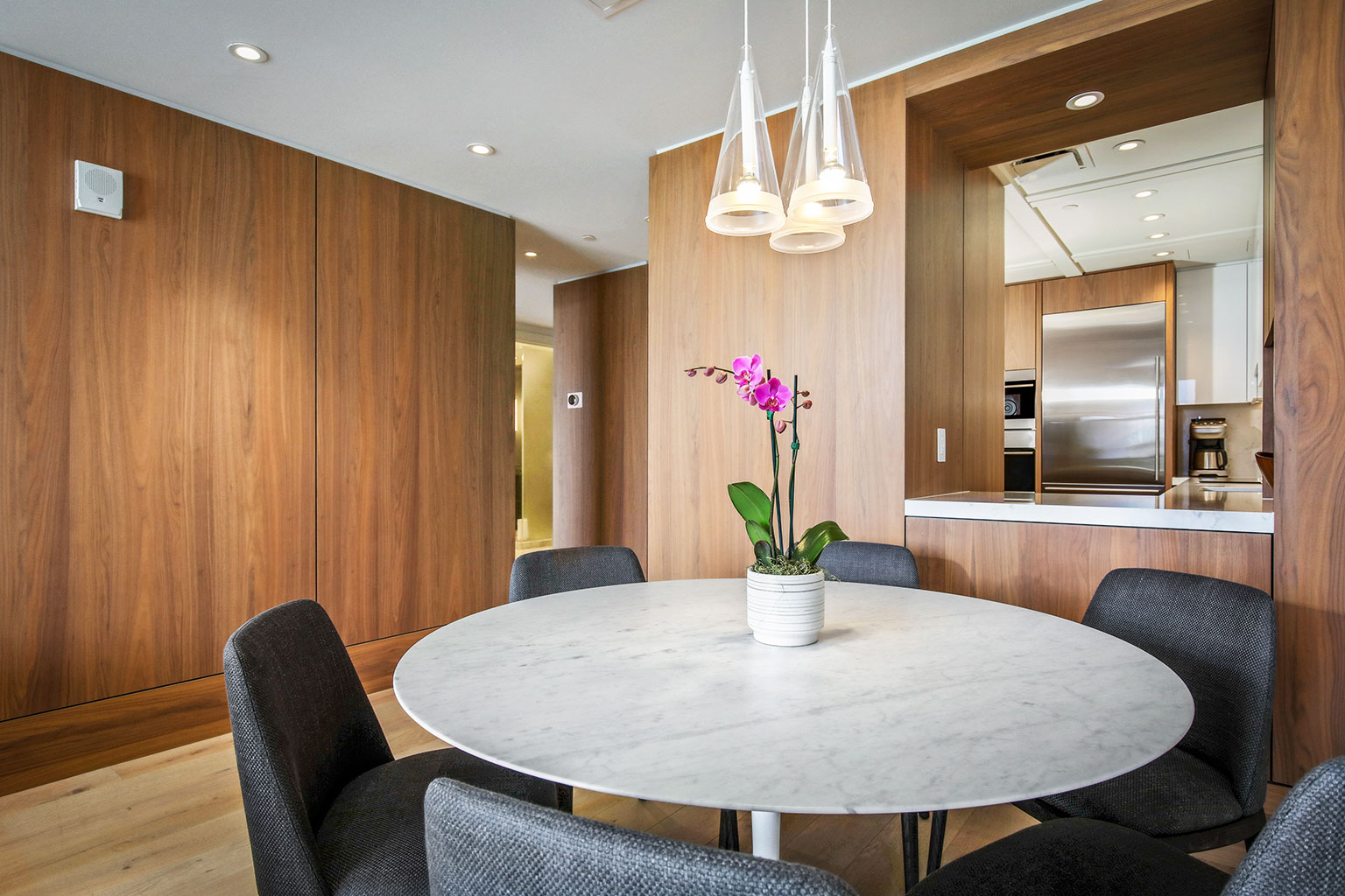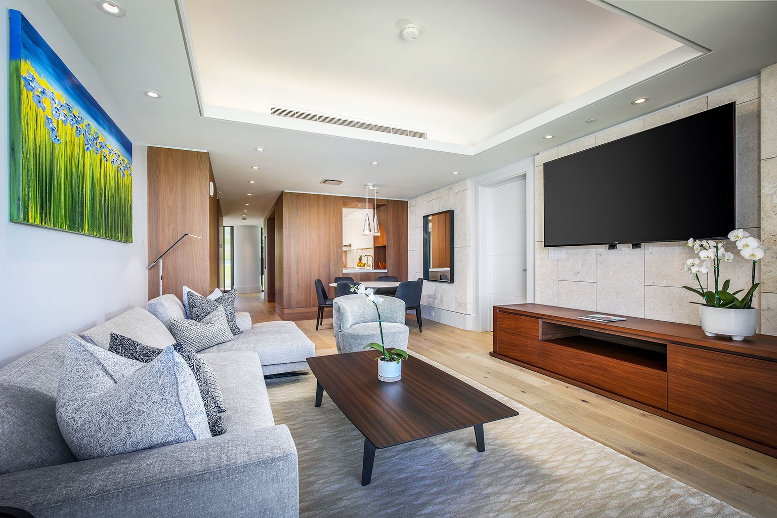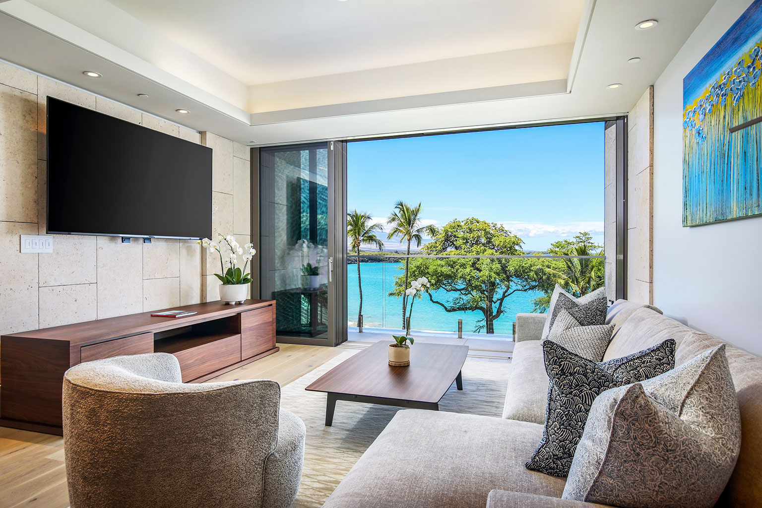 ハワイの傑作ともいえるこの贅沢な新築オーシャンフロント レジデンスでは、床から天井まで広がる壁一面の大きなスライド ガラス窓が屋内と屋外のスペースを一体化するリビング エリア、シェフが愛用するWolf製やSub-Zero製の調理機器をそろえたスタイリッシュな豪華プロ キッチン、ダブルオーブン、ワインセラー、ハンドクラフトのキャビネット、そして6人掛けのダイニングテーブルをご提供しております。