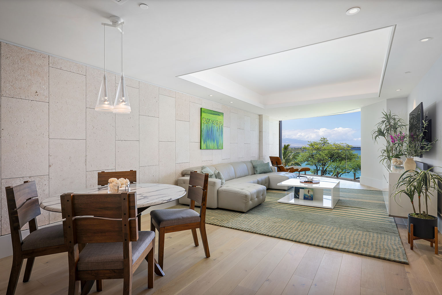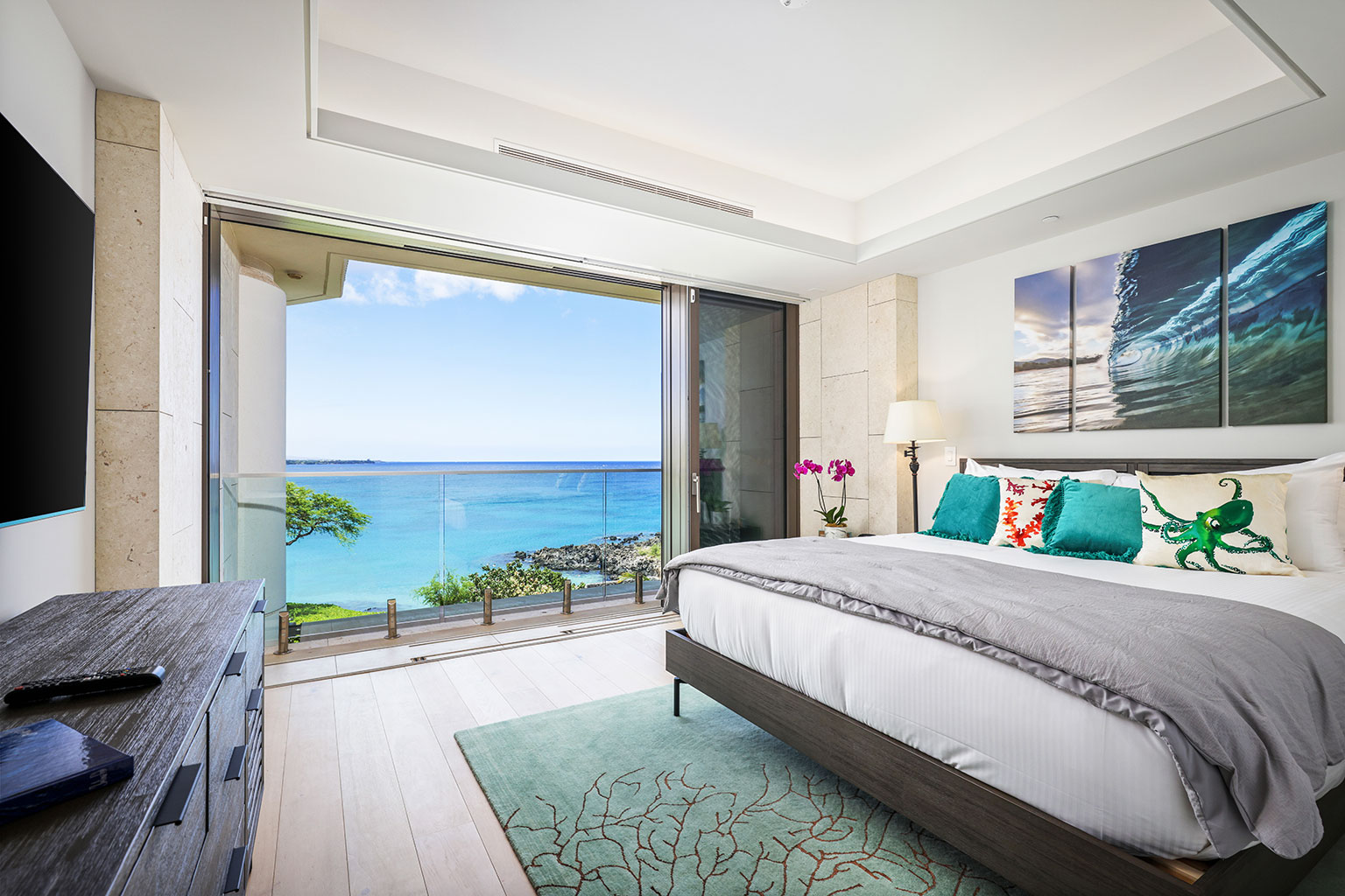 この素晴らしいオーシャンフロントのレジデンスは4階に位置しています。床から天井まで広がる壁一面の大きなスライド ガラス窓が屋内と屋外のスペースを一体化するリビング エリア、プロシリーズのWolf製やSub-Zero製の調理機器をそろえたグルメなキッチン、ワインセラー、ブッチャーブロック・アイランド、大理石のダイニングテーブル(4名用)を備えています。ゲストスイートが2部屋(いずれのお部屋にもカリフォルニアキングベッド1台)にはラグジュアリーなバスルームが併設されています。エアコン、洗濯機/乾燥機完備。ハプナ ゴルフコースのクラブハウス至近というロケーションも魅力のレジデンスです。