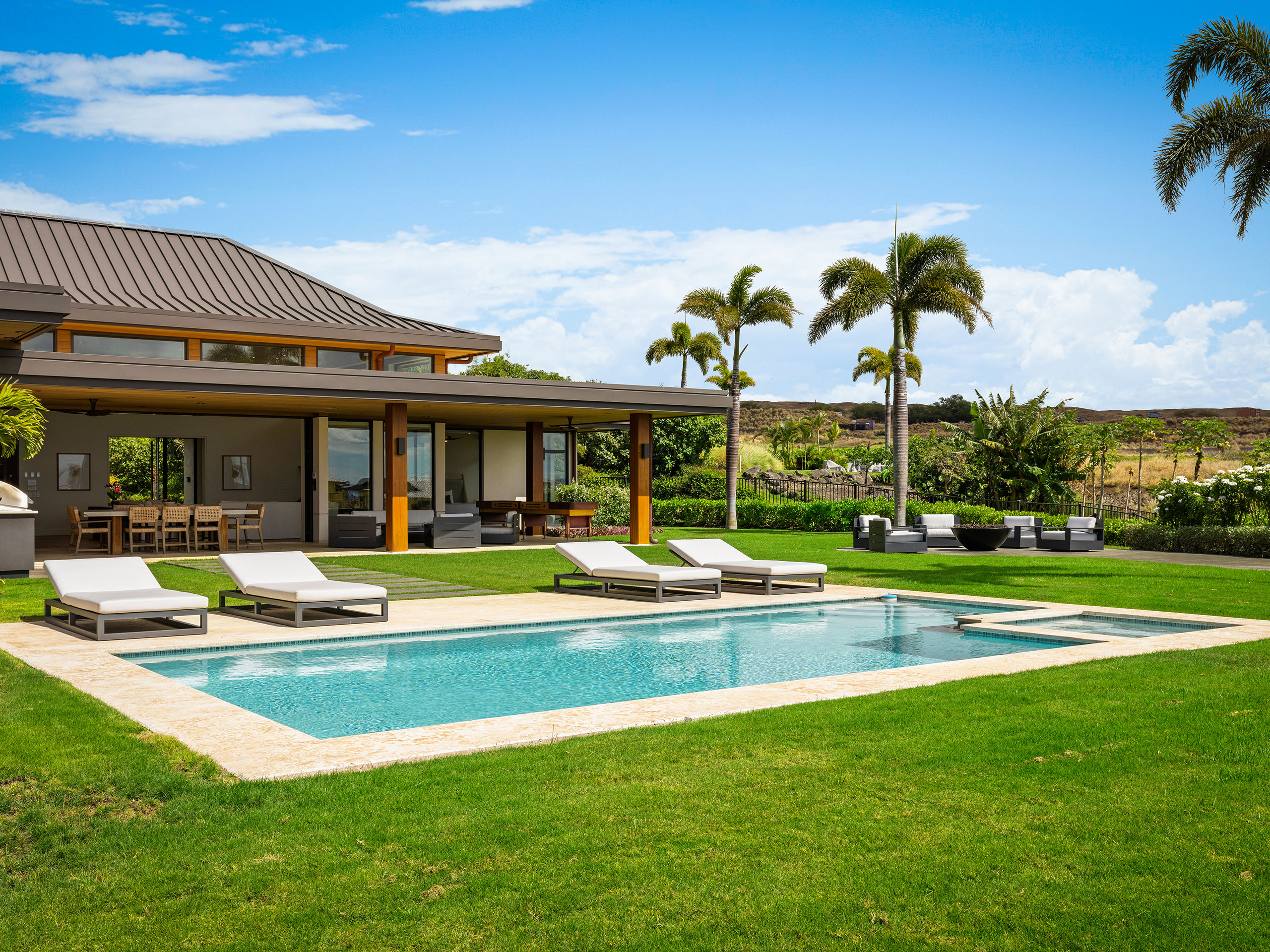 ハプナ エステーツは、ハプナ ビーチ リゾートの上に位置しています。5ベッドルームの邸宅からは、ゴルフ場と素晴らしいオーシャンビューの眺めます。プライベートプール、屋外キッチン設備付き、ハプナ エステーツ敷地内にはアメニティーセンターと公園もあります。ハワイでのバケーションをより魅力的なものにする閑静なプライベートリトリートとなっております。