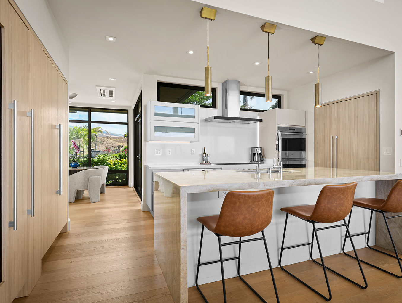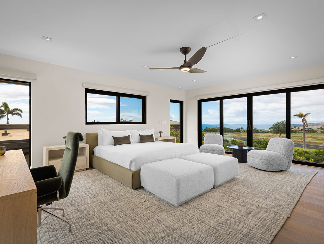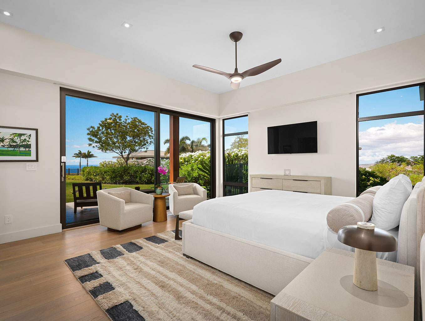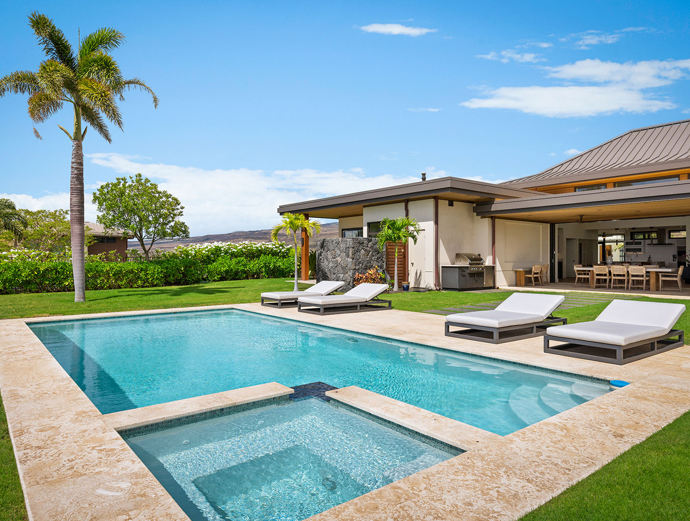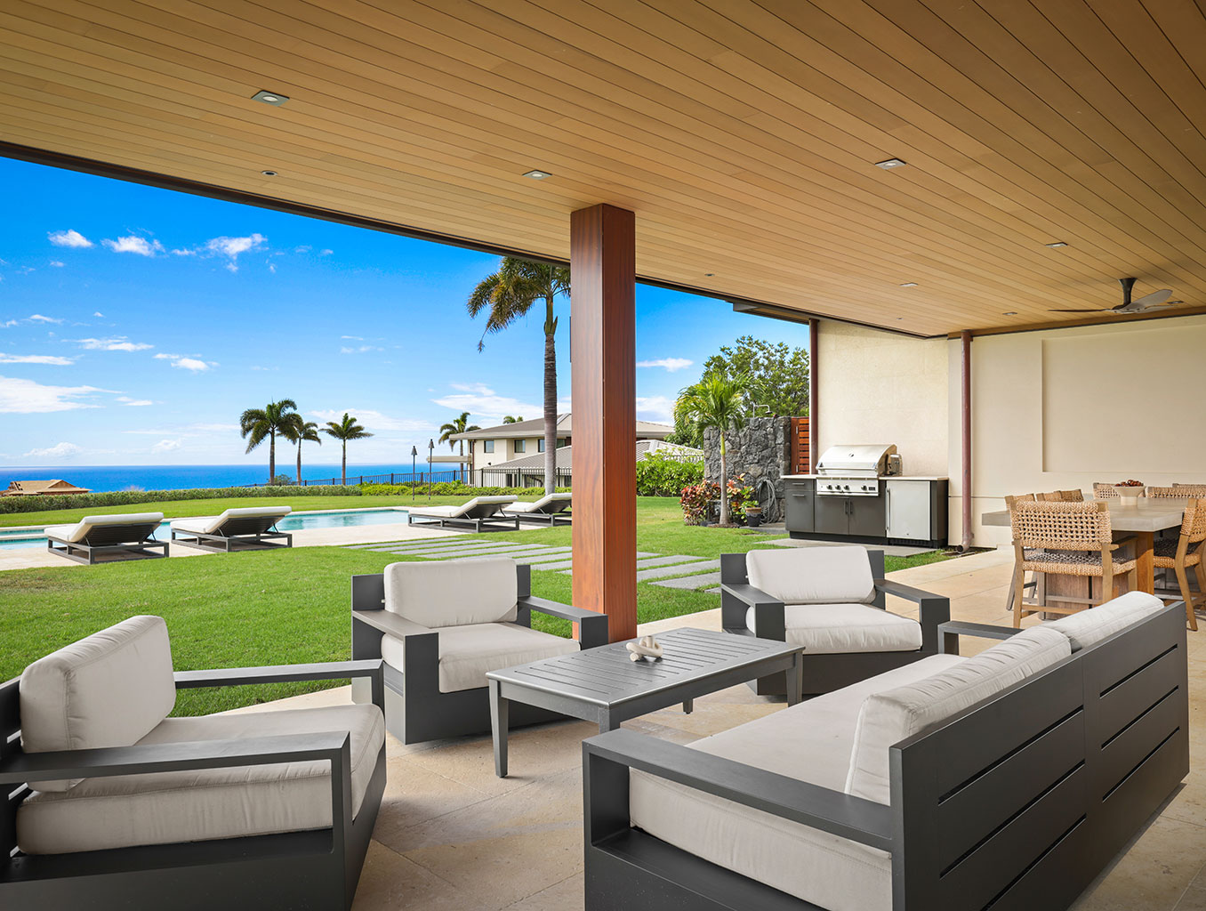 ハプナゴルフコースに面し、コハラコーストの壮大な景色を望むこの美しいハワイの邸宅は、スライド ガラス窓が屋内と屋外のスペースを一体化するリビング エリア、プロ仕様のステンレス製あアプライアンスやハンドクラフトのキャビネットを備えたグルメなキッチンがあります。ゲストスイートは5部屋。それぞれのお部屋にキングベッド1台、フラットスクリーンテレビ、併設された贅沢なバスルーム、最新技術のオーディオ・ビデオ機器、デザイナー照明があります。屋内全体がハードウッドフロアとなっており、ランドリールーム、エアコン、シーリングファン、そして車3台分のガレージが備わっております。