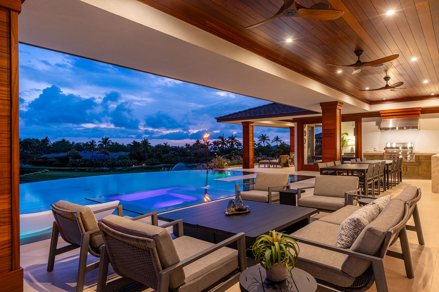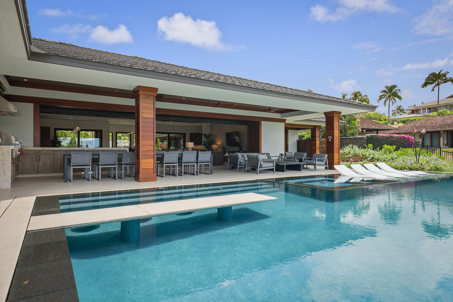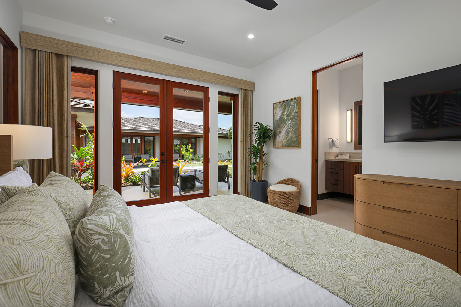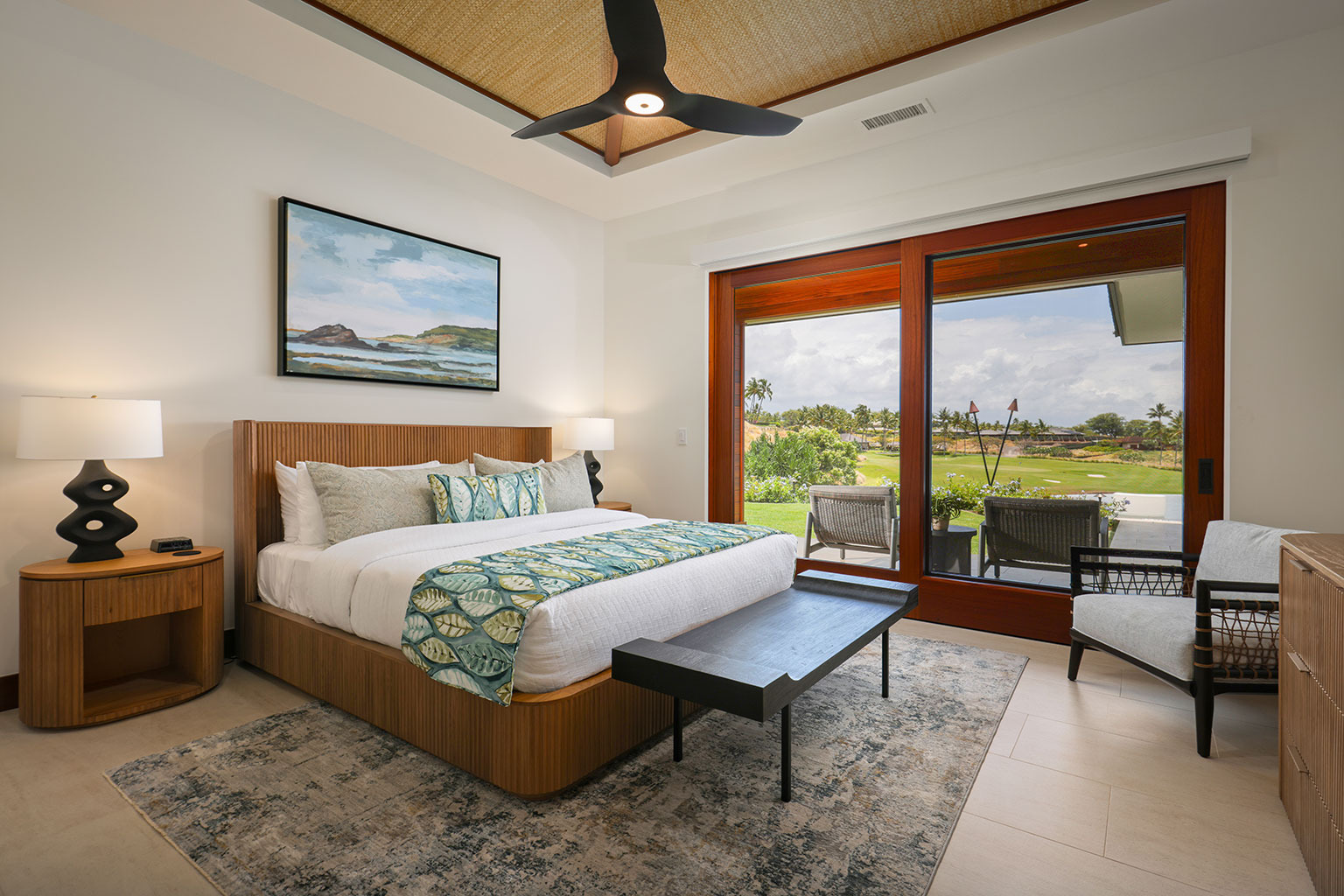 静かに佇むハワイの邸宅カウナオアのユニット22は、豪華な5ベッドルームで、バスルームは6つあります。カウナオア・ゴルフコースを望み、屋内外にリビングスペースを設けております。お部屋に高さと開放感を加えるヴォールト天井を採用。広いラナイ(ベランダ)につながるオープン設計のリビングルームとダイニングエリアでは、インフィニティ―プールを眺めながらリラックスしたひと時をお過ごしいただけます。中央に位置するリビングスペースを囲むように、4つのベッドルームがあります。それぞれの寝室にはキングベッドが1台、ウォークインクローゼット、バスルーム、プライベートパティオが備わっております。プライマリースイートからの眺めは格別で、崖の上に広がる景色を見渡します。バスルームも一番広く、バスタブ、屋内外のウォークインシャワーがあります。その他にオハナユニットがあり、こちらにもキングベッドが1台入っています。バスルーム併設、ウォークインシャワーもあり、招待ゲストや親戚の方にご利用いただくのに最適です。その他、エアコン、ホットタブ、駐車場完備。プライバシーが守られた豪華なハワイライフスタイルをご堪能いただけます。