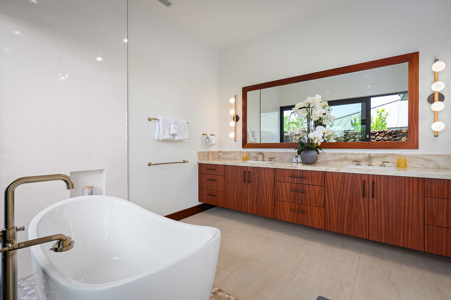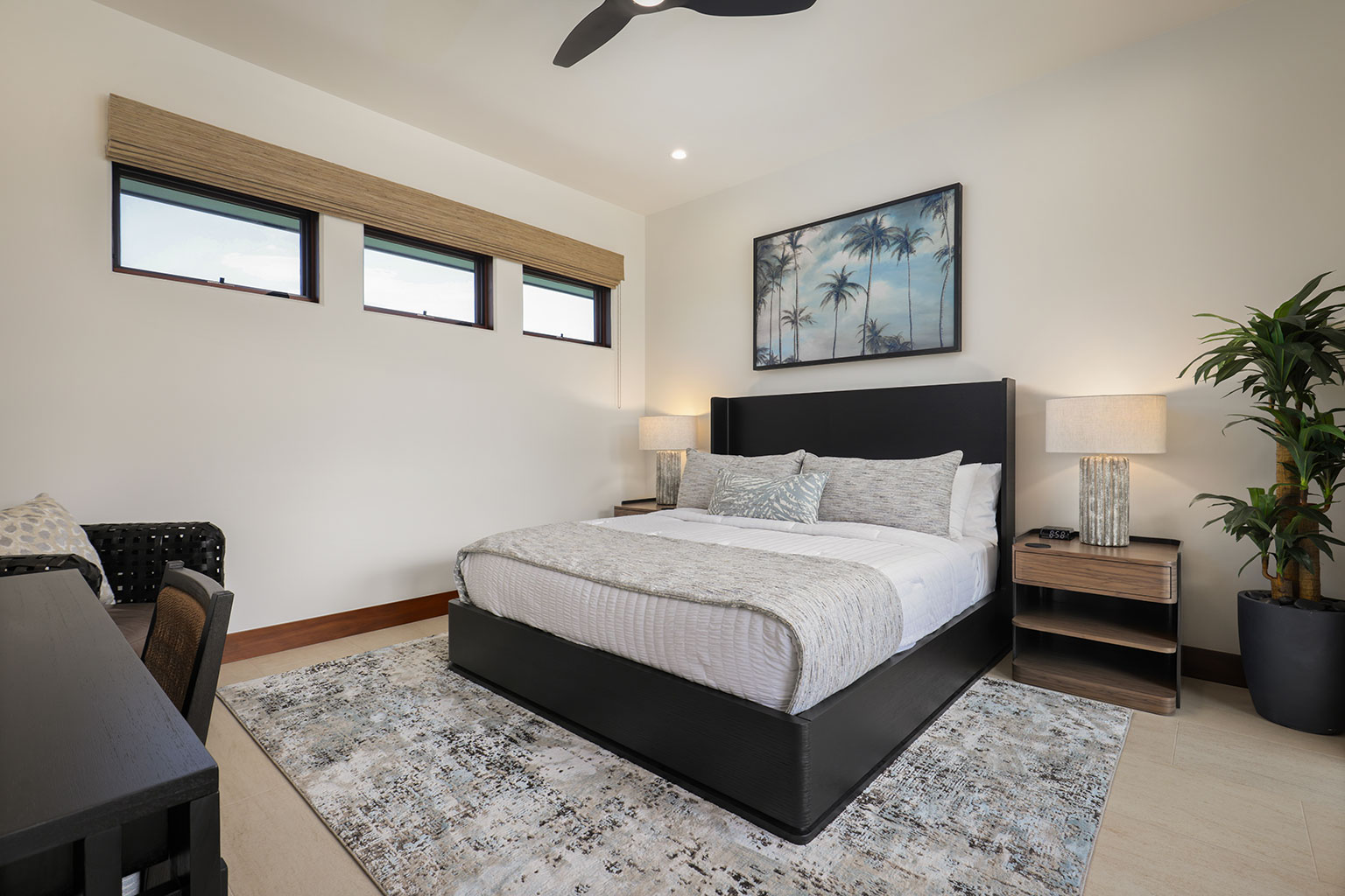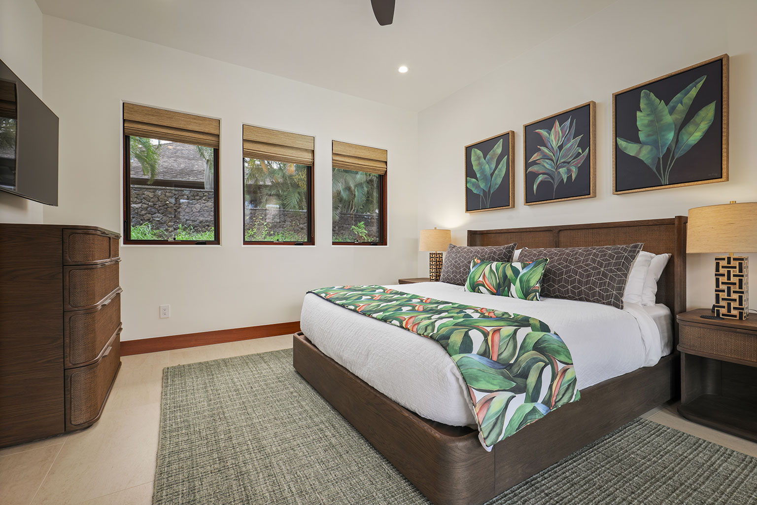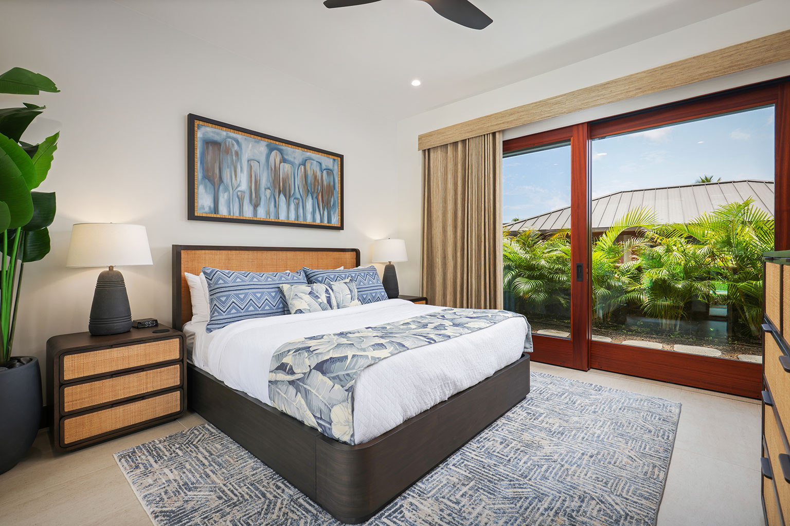 静かに佇むハワイの邸宅カウナオアのユニット22は、豪華な5ベッドルームで、バスルームは6つあります。カウナオア・ゴルフコースを望み、屋内外にリビングスペースを設けております。お部屋に高さと開放感を加えるヴォールト天井を採用。広いラナイ(ベランダ)につながるオープン設計のリビングルームとダイニングエリアでは、インフィニティ―プールを眺めながらリラックスしたひと時をお過ごしいただけます。中央に位置するリビングスペースを囲むように、4つのベッドルームがあります。それぞれの寝室にはキングベッドが1台、ウォークインクローゼット、バスルーム、プライベートパティオが備わっております。プライマリースイートからの眺めは格別で、崖の上に広がる景色を見渡します。バスルームも一番広く、バスタブ、屋内外のウォークインシャワーがあります。その他にオハナユニットがあり、こちらにもキングベッドが1台入っています。バスルーム併設、ウォークインシャワーもあり、招待ゲストや親戚の方にご利用いただくのに最適です。その他、エアコン、ホットタブ、駐車場完備。プライバシーが守られた豪華なハワイライフスタイルをご堪能いただけます。