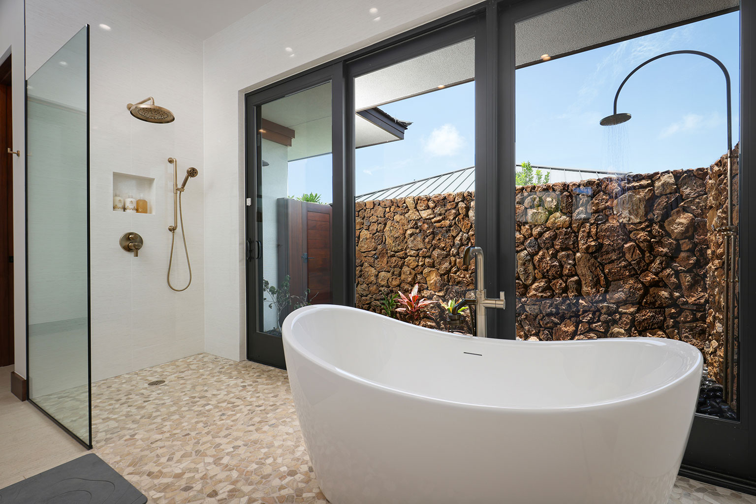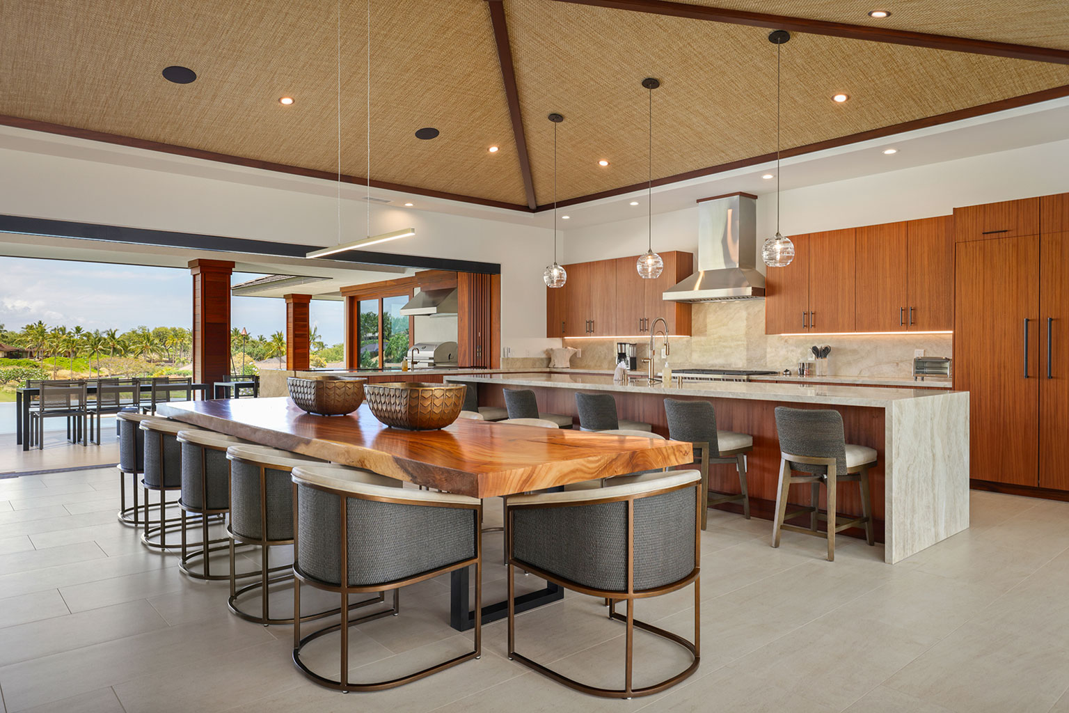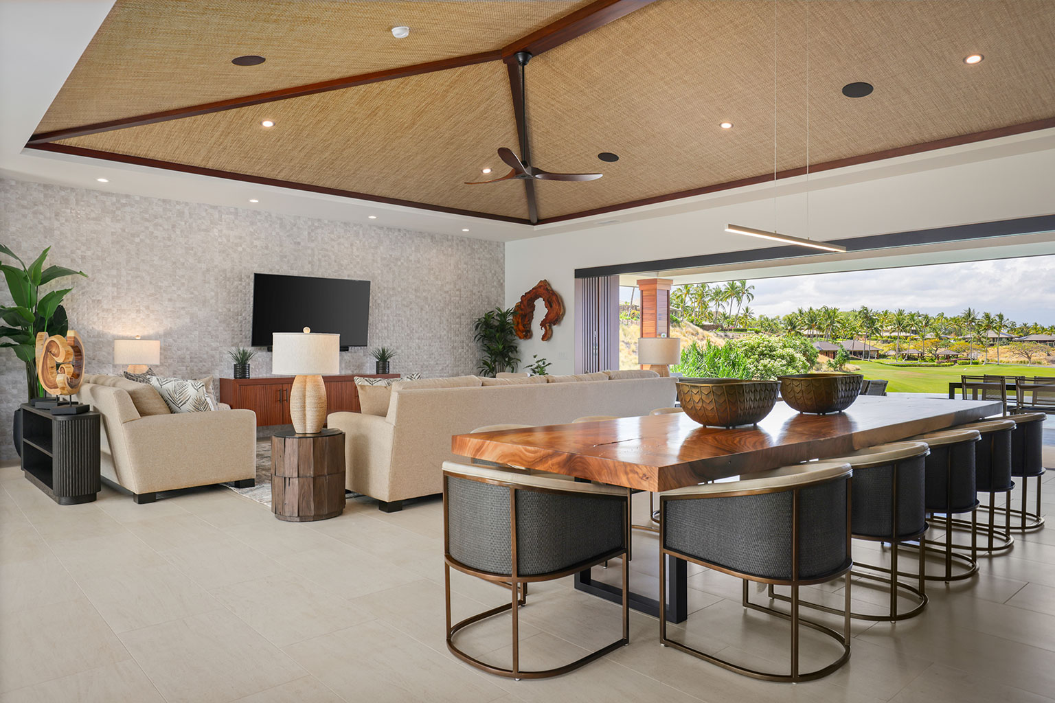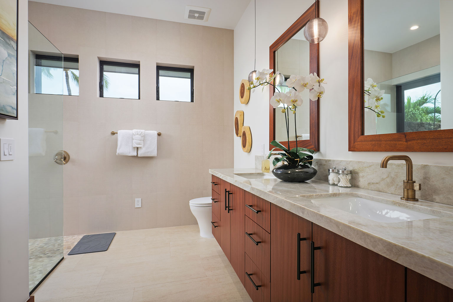 静かに佇むハワイの邸宅カウナオアのユニット22は、豪華な5ベッドルームで、バスルームは6つあります。カウナオア・ゴルフコースを望み、屋内外にリビングスペースを設けております。お部屋に高さと開放感を加えるヴォールト天井を採用。広いラナイ(ベランダ)につながるオープン設計のリビングルームとダイニングエリアでは、インフィニティ―プールを眺めながらリラックスしたひと時をお過ごしいただけます。中央に位置するリビングスペースを囲むように、4つのベッドルームがあります。それぞれの寝室にはキングベッドが1台、ウォークインクローゼット、バスルーム、プライベートパティオが備わっております。プライマリースイートからの眺めは格別で、崖の上に広がる景色を見渡します。バスルームも一番広く、バスタブ、屋内外のウォークインシャワーがあります。その他にオハナユニットがあり、こちらにもキングベッドが1台入っています。バスルーム併設、ウォークインシャワーもあり、招待ゲストや親戚の方にご利用いただくのに最適です。その他、エアコン、ホットタブ、駐車場完備。プライバシーが守られた豪華なハワイライフスタイルをご堪能いただけます。