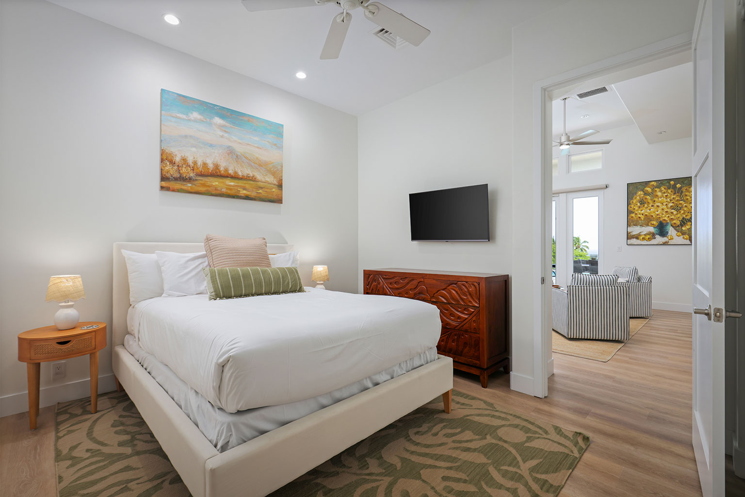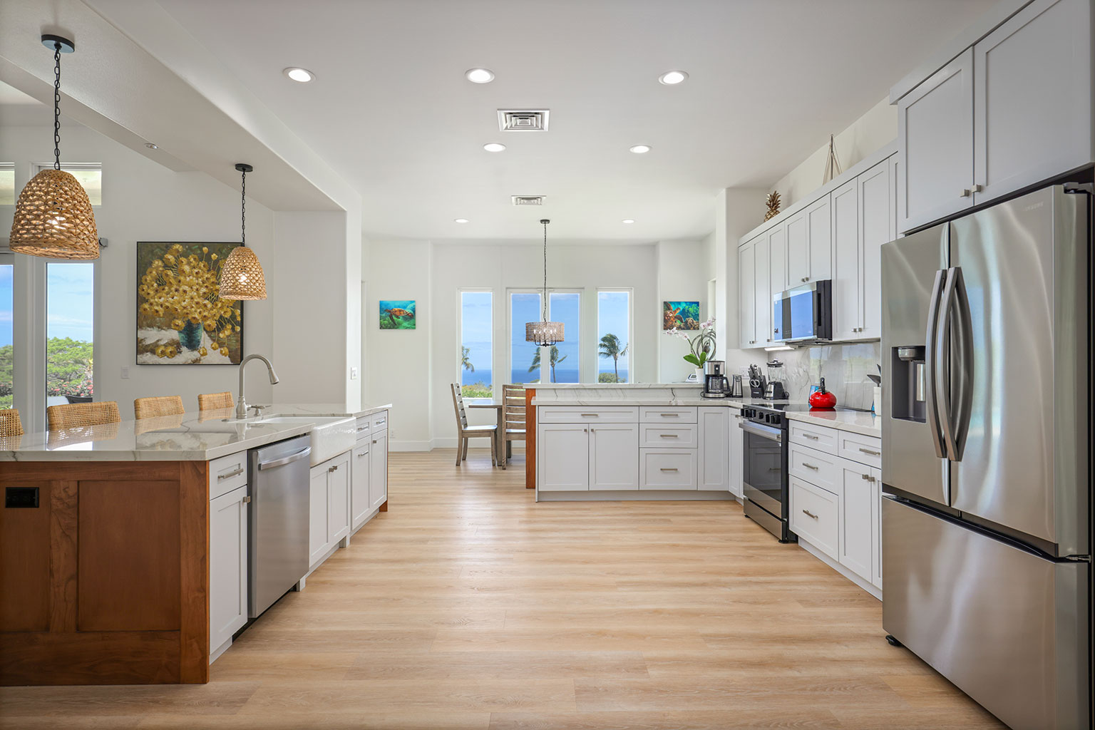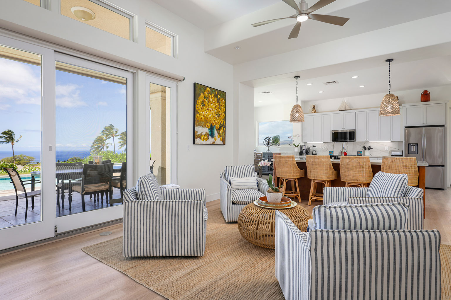 広大な角地にたたずむこの素敵な「アップカントリー」のハワイ島オーシャンビュー レジデンスでは、屋内外が一体となったハワイのライフスタイルを満喫していただけるガラスドアのある大きなお部屋、中庭、カスタム キャビネットと家具、食洗器とガスの調理台のあるシェフ キッチン、そしてソファベッドのあるボーナスルームをご提供しております。その他、空調とシーリングファン、洗濯機と乾燥機、屋外シャワー、プライベート パッティンググリーン、プール、ジャグジー、バーベキューグリルのある家具付きラナイ、車2台分の駐車場などもご用意。このレジデンスは海まで1マイルの場所にあります。