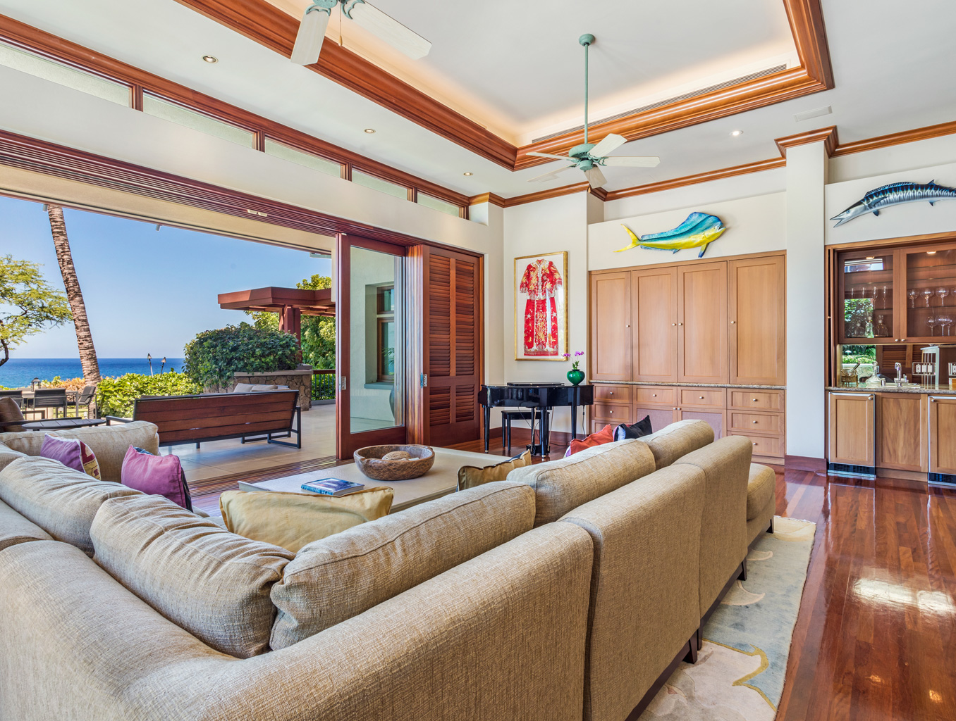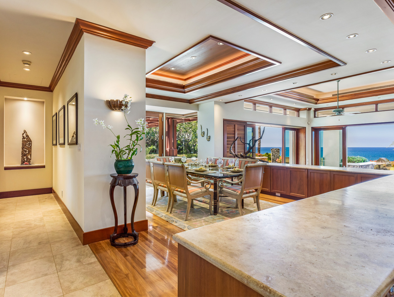 ダイナミックな岩の海岸沿いにたたずむゲートで守られた極上コミュニティの中にあるこの贅沢なオーシャンフロントの邸宅は、ハワイ一流の建築家とインテリア デザイナーによって創られました。ウェットバーを配しスライド ガラス ドアが屋内と屋外のスペースを一体化するハワイのライフスタイルを楽しめる広いお部屋、シェフの愛用するMiele製やSub-Zero製の調理機器やワインセラーをそろえたプロ キッチン、そしてフォーマル ダイニングを完備しております。