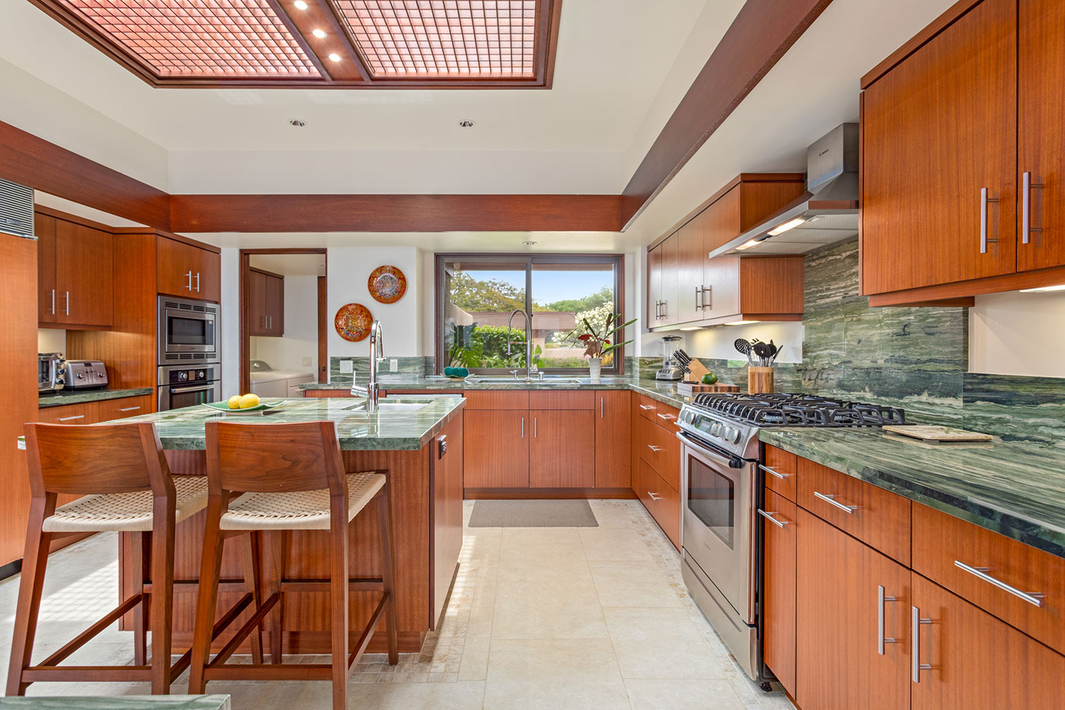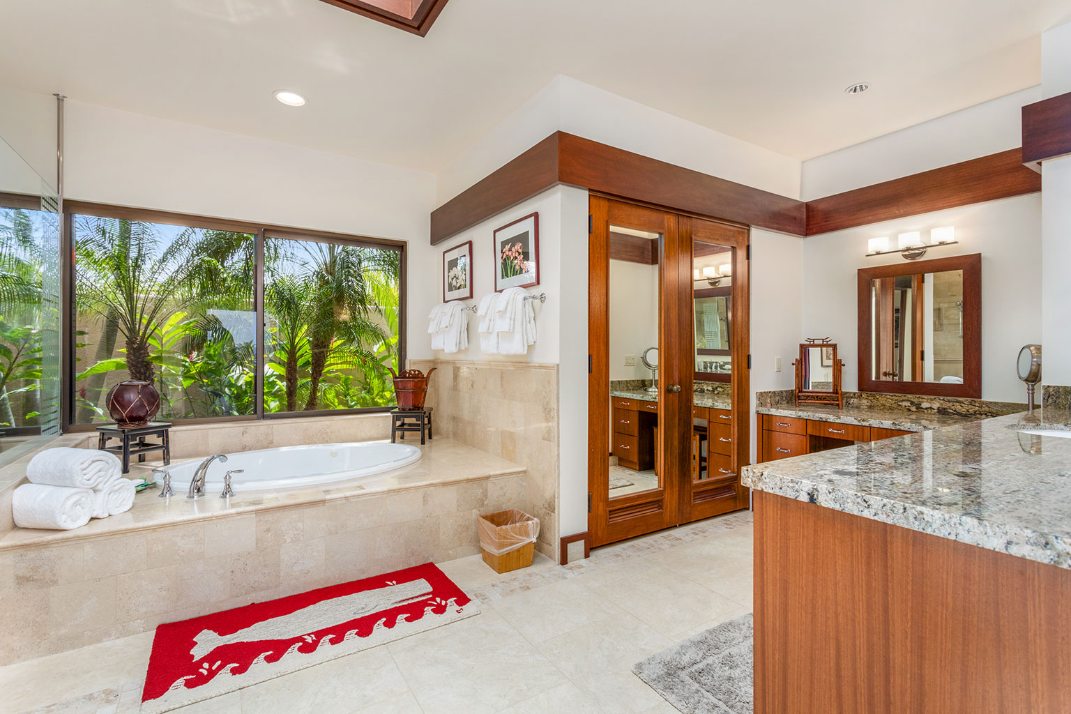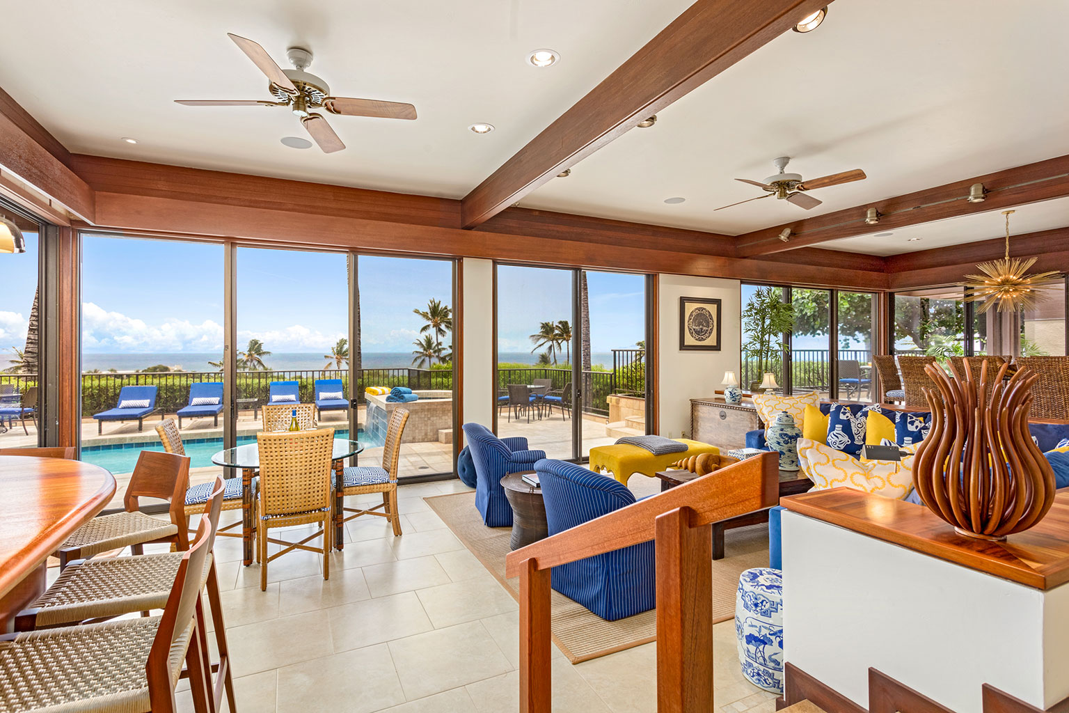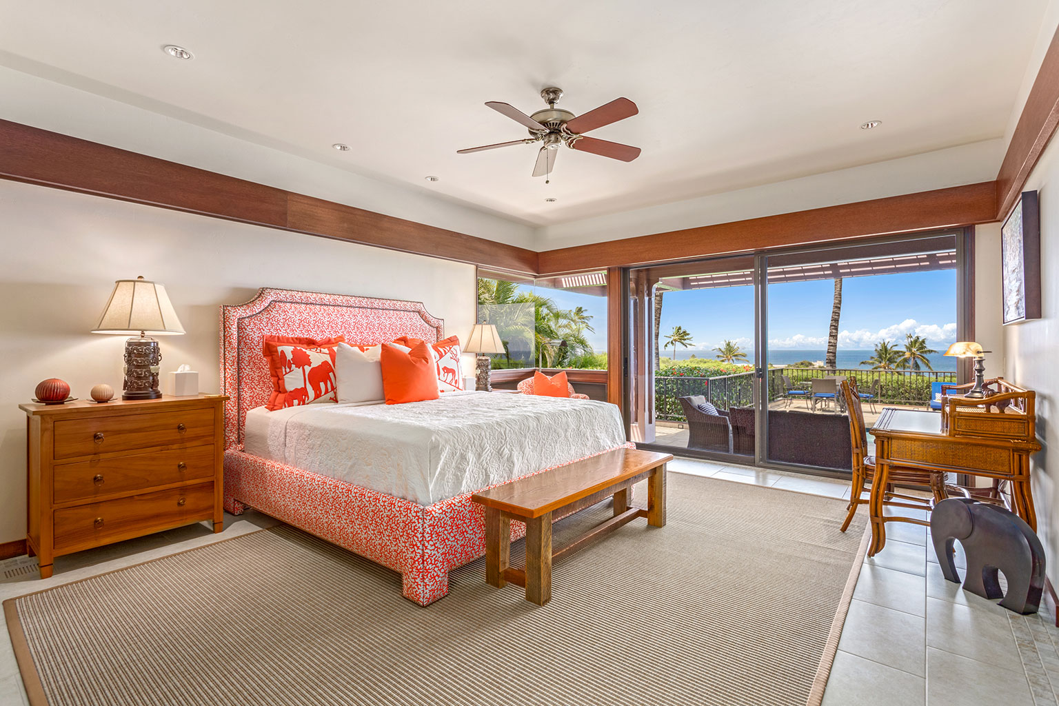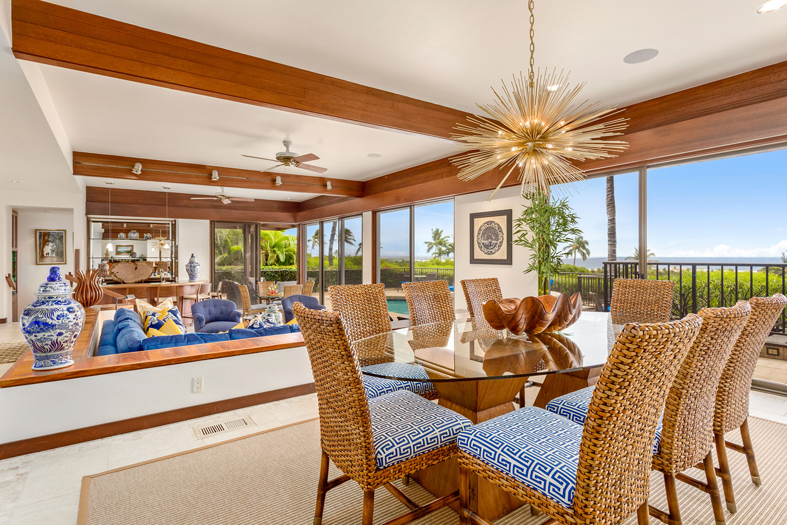 目利きの旅行者でさえも魅了する、この見晴らしのよいオーシャンビューの眺望を誇る邸宅は、ハワイのライフスタイルにぴったりな屋内と屋外のスペースを一体化するスライド ガラス ドアと、天然石のカウンタートップやプロ仕様の調理機器を備えたシェフ キッチン(オーブン2台を含む)、ウェットバー、8人掛けのダイニングテーブルがあり、邸宅全体にカスタムウッドワークが施されています。プライマリースイートにはキングサイズのベッド1台とデスク/ワークスペースがあり、ラグジュアリーなバスルームが併設されています。セカンドベッドルームにはキングサイズのベッド1台と屋外シャワー、サードベッドルームにはツインベッドが2台入っています。エアコン、シーリングファン、ランドリー設備、Sonos音響システム、デザイナー照明完備。上品なアート作品も飾られています。