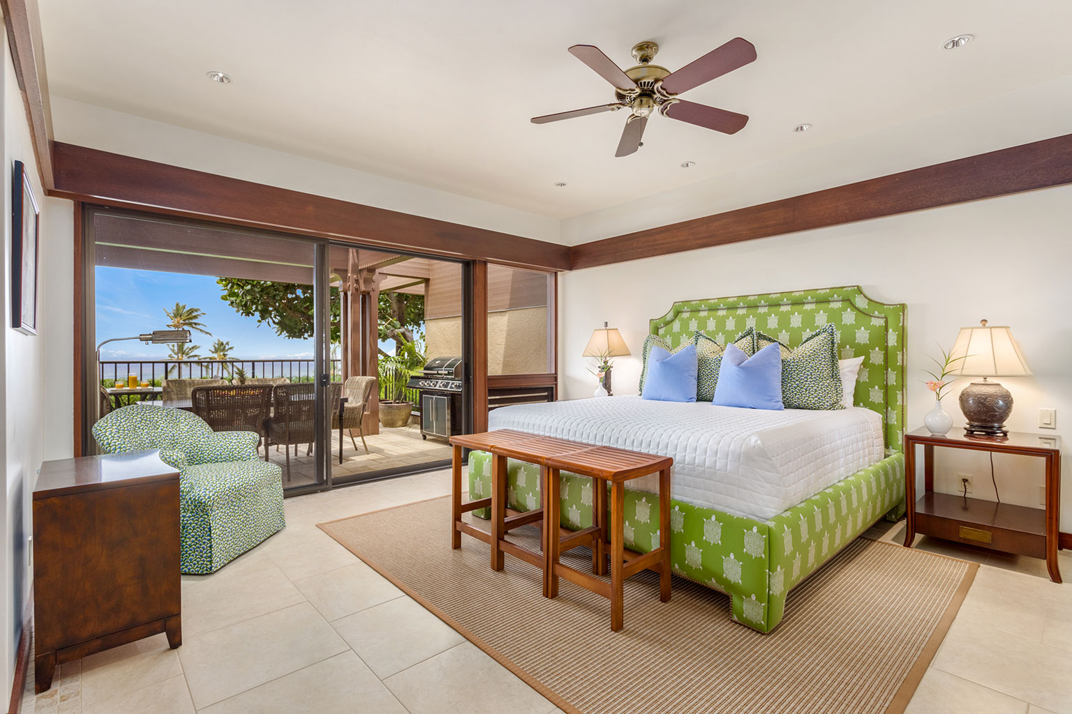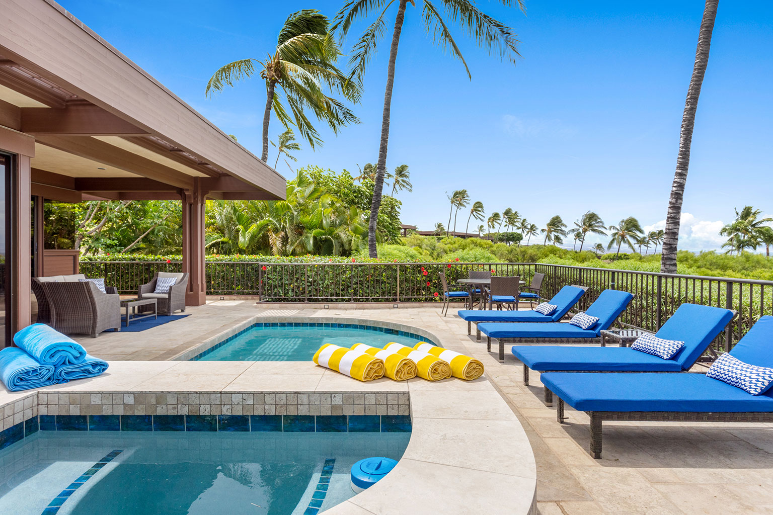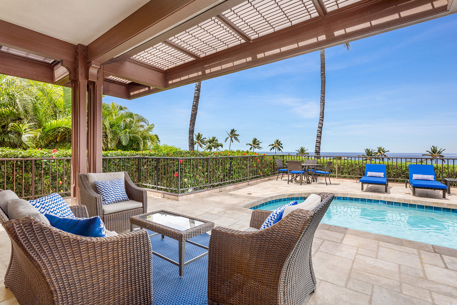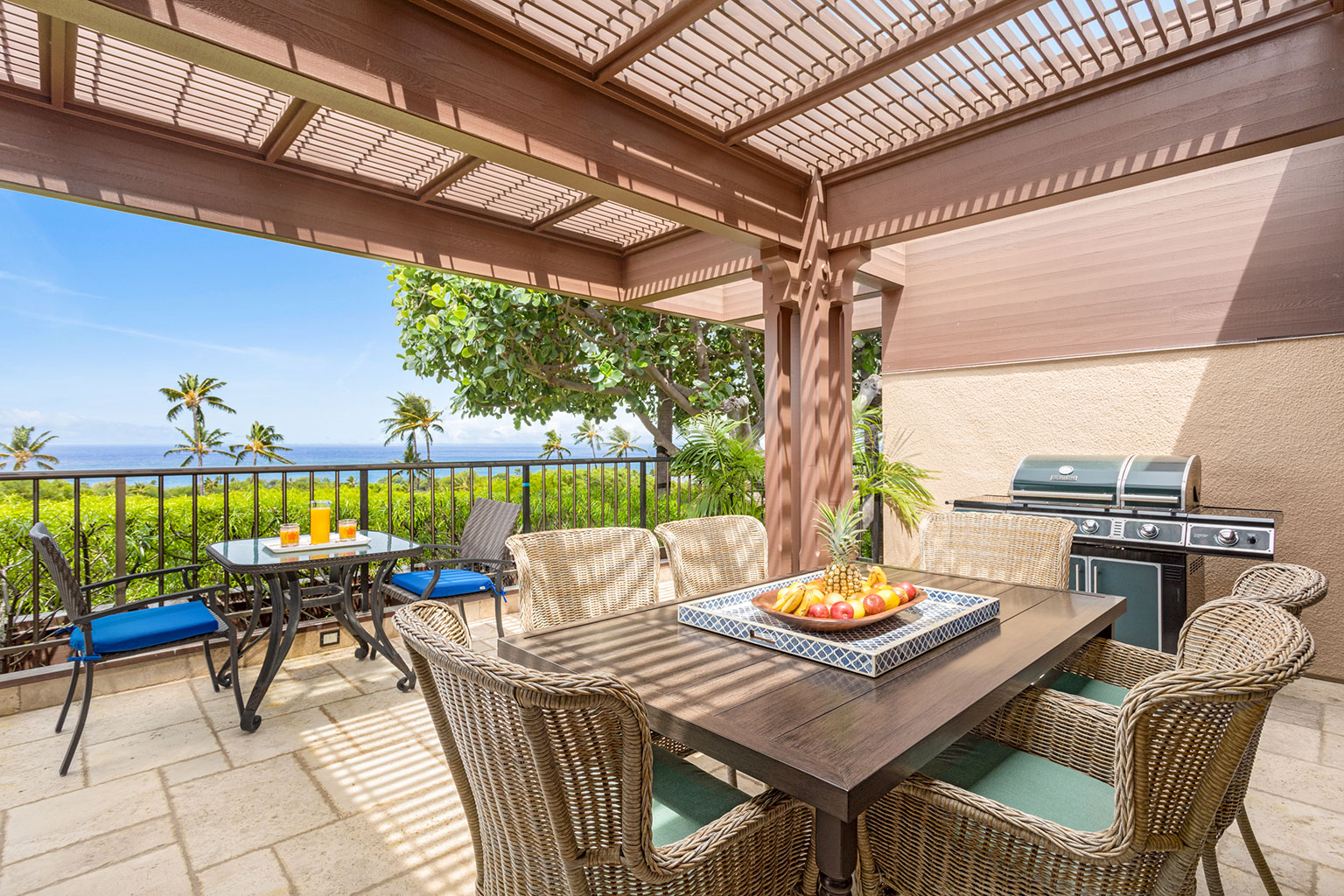 プライベートプールとジャグジーからは、オーシャンビューのパノラマの景色を見渡します。また、Master Forge社製のBBQ設備がある家具付きラナイでゆっくりとお寛ぎいただけます。ビーチまで徒歩10分です。