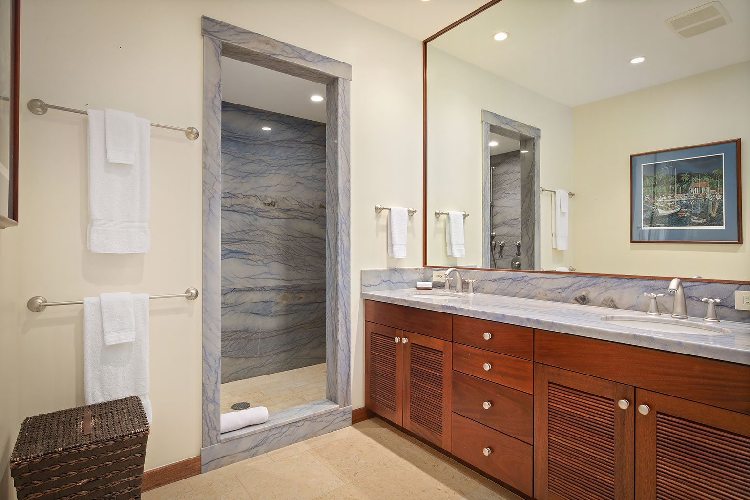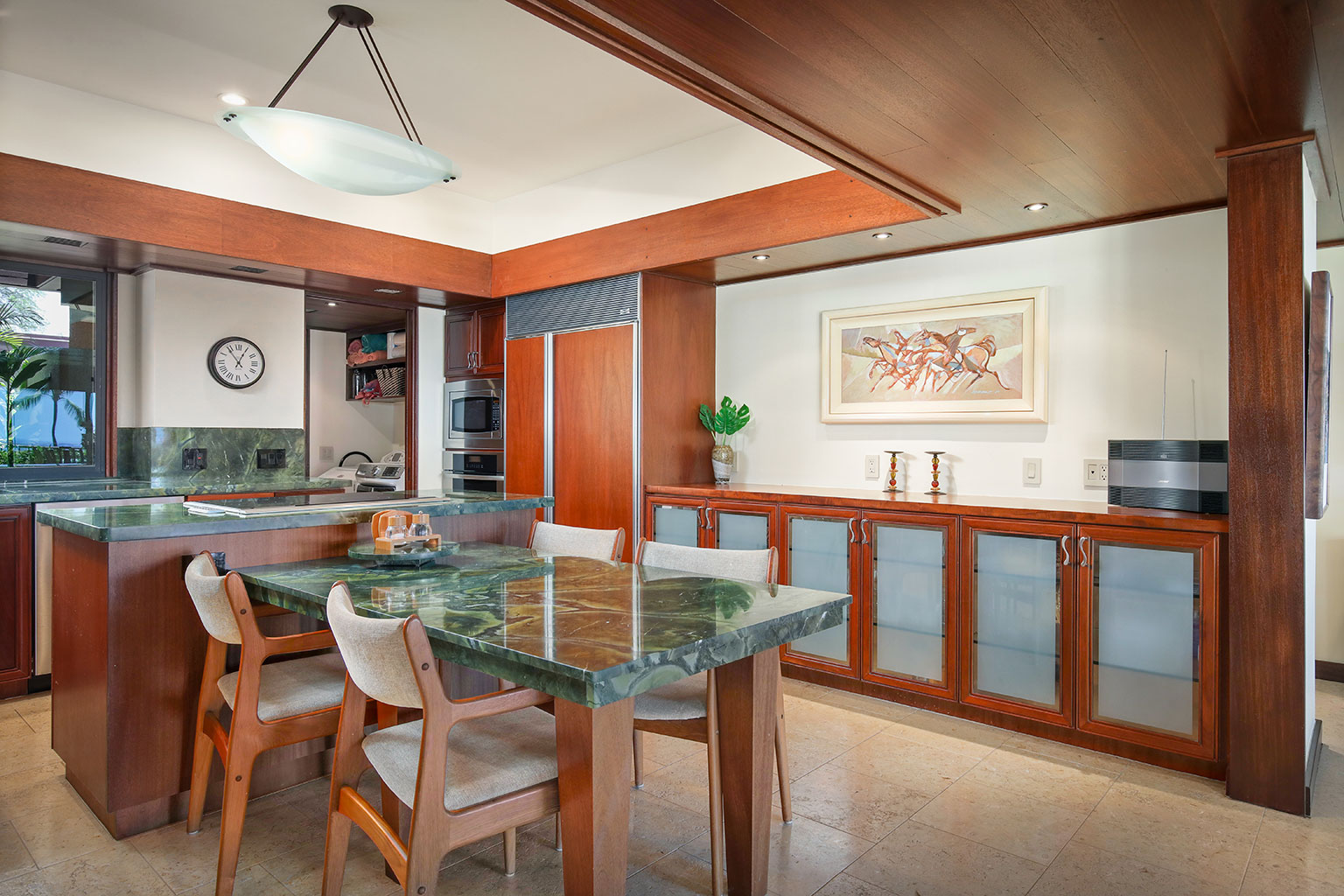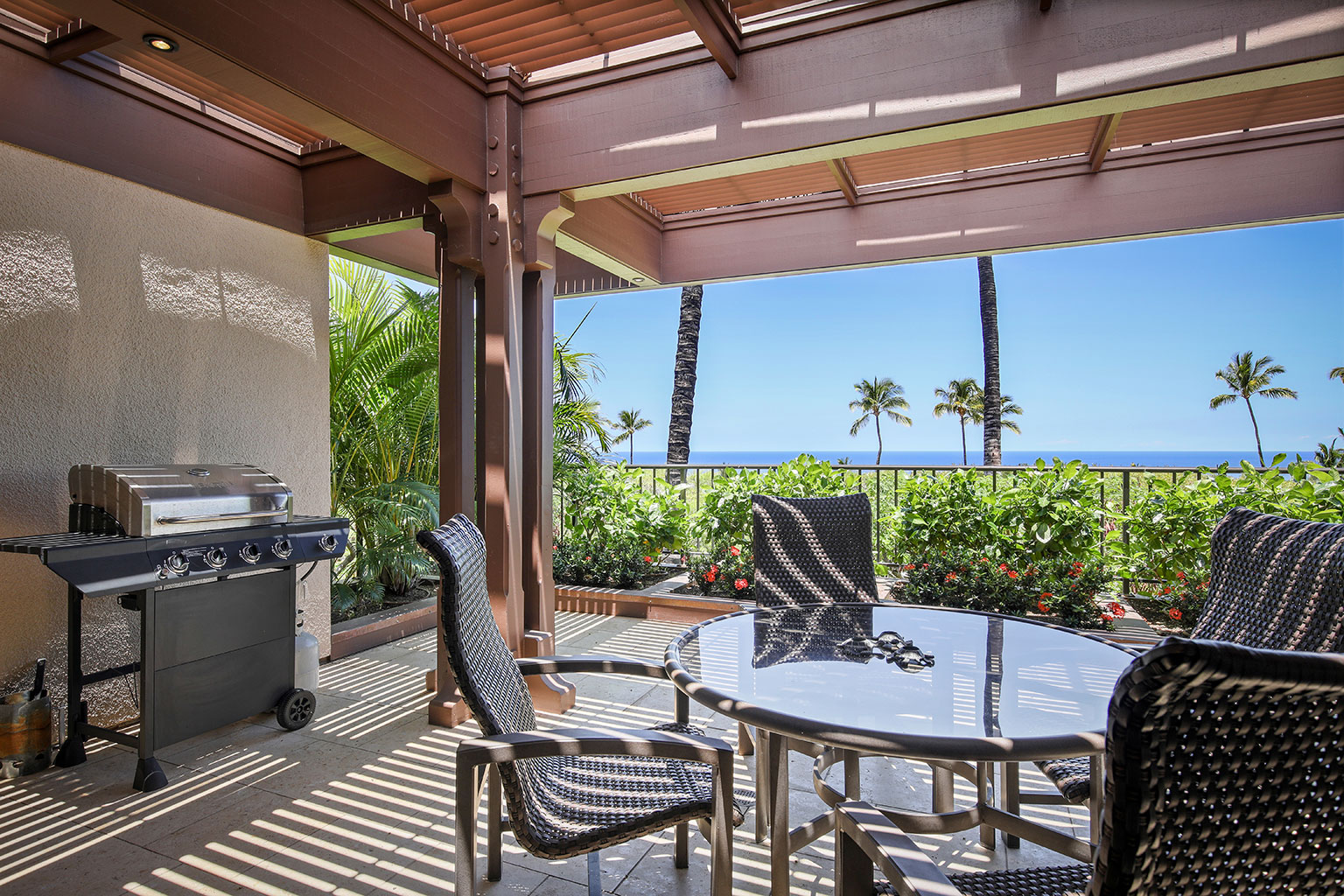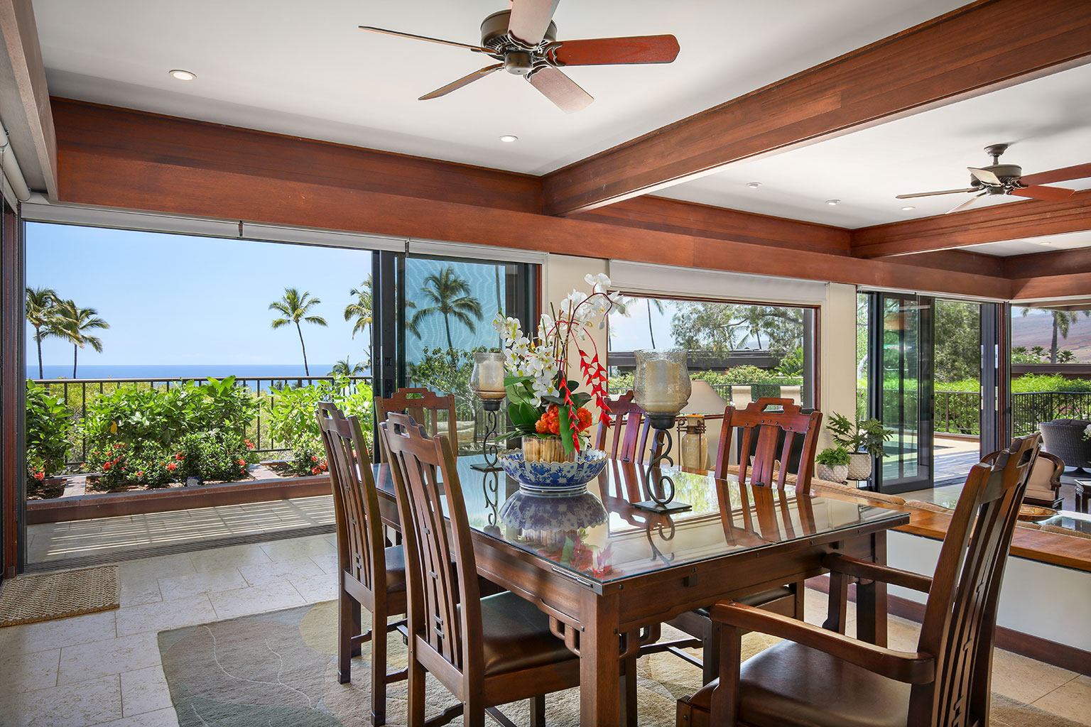 この1階建てのオーシャンフロントの邸宅には、ハワイのライフスタイルにぴったりなスライド ガラスドアが屋内と屋外のスペースを一体化する段差のあるサンクン ルーム、ダイニング エリアが2か所、キングベッド1台があるプライマリーマスタースイートルームがあります。プライマリースイートルームにはバスタブのあるバスルームが付随しています。ゲストルームは2室(1室はクイーンベッド2台、もう1室はクイーンベッド1台)です。その他の施設としては、ランドリールーム、エアコンとシーリングファン、ウェットバー、屋外シャワー、プライベートプール、ジャグジー、BBQグリルと家具が備わったラナイがあり、駐車場は車2台を停められます。ビーチ、ゴルフコース、マウナ ケア ビーチ ホテルまで徒歩10分のところにあります。