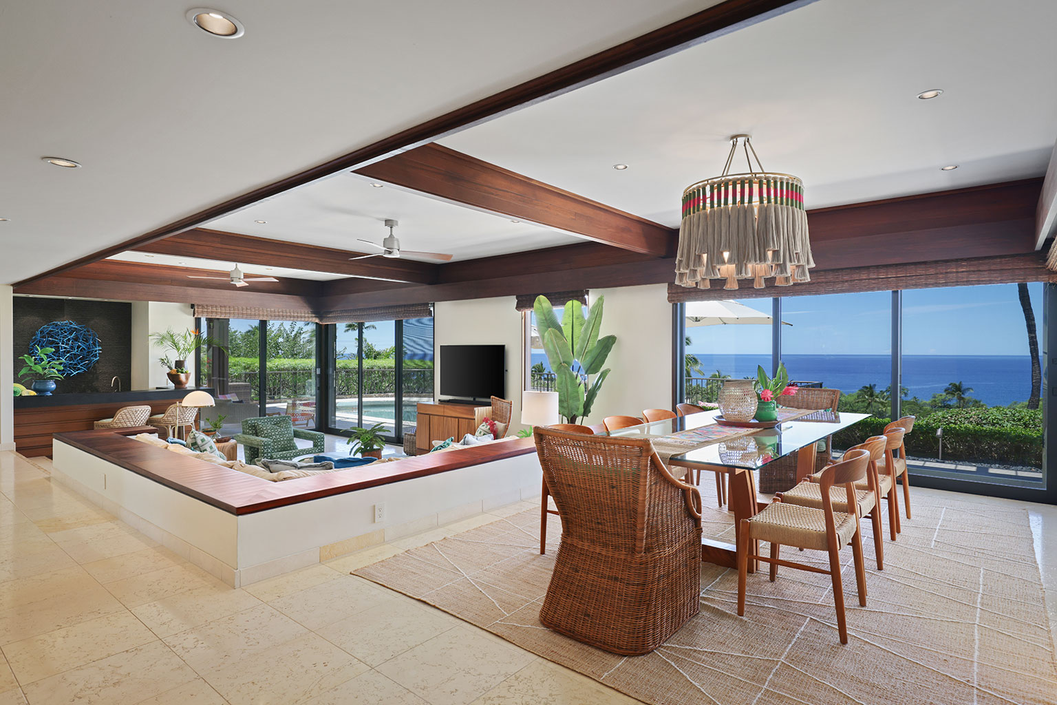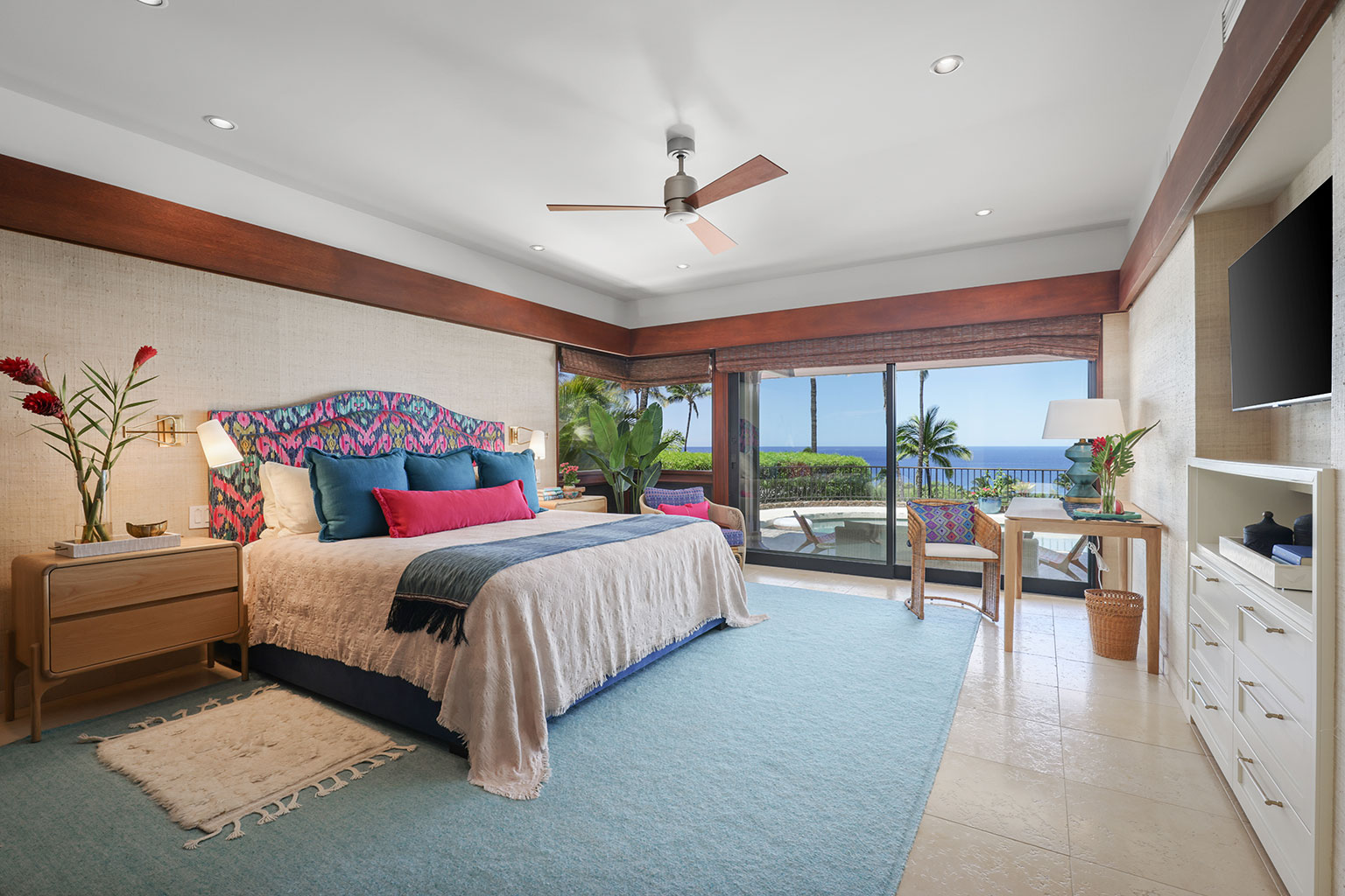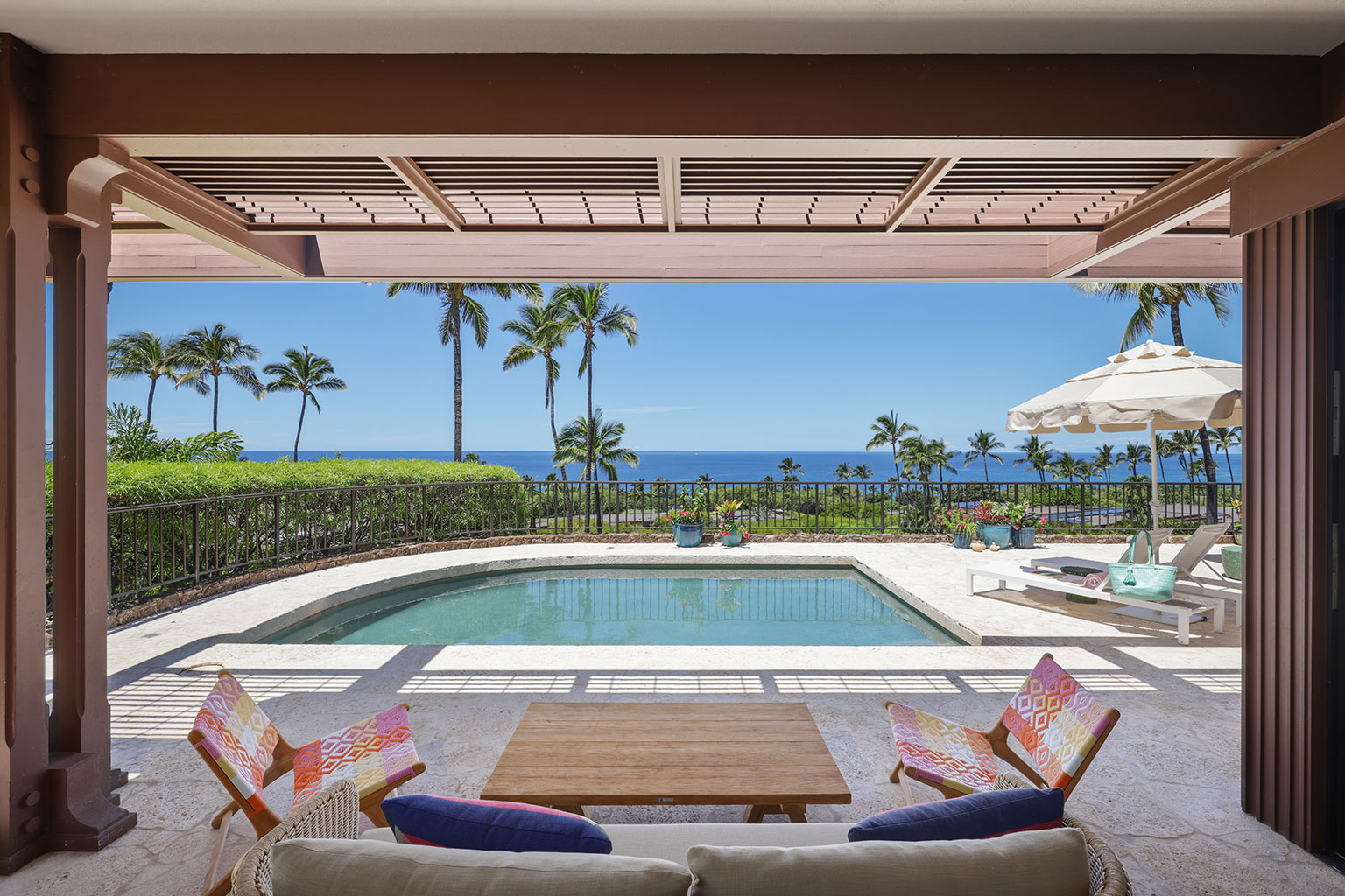 この1階建ての洗練を極めたオーシャンフロント邸宅には、屋内と屋外のスペースを一体化するスライド ガラス ドアがハワイのライフスタイルにぴったりな段差のあるサンクン リビング、Wolf製およびSub-Zero製調理機器を備えたプロ キッチン、ウェットバーを併設したダイニング エリア、屋外シャワーと屋内浴槽を備えたマスター スイートルーム、2台のクイーンベッドのあるベッドルーム、そして2台のツインバンクベッド(2段ベッド)のあるベッドルームを完備しております。 その他、ランドリー ルーム、エアコンとシーリング ファン、プライベート プール、バーベキュー コンロのある家具付きラナイ、車2台分の駐車場をご用意。ビーチやゴルフ場、マウナ ケア ビーチ ホテルから徒歩でほんの5分といったロケーションも魅力のレジデンスです。