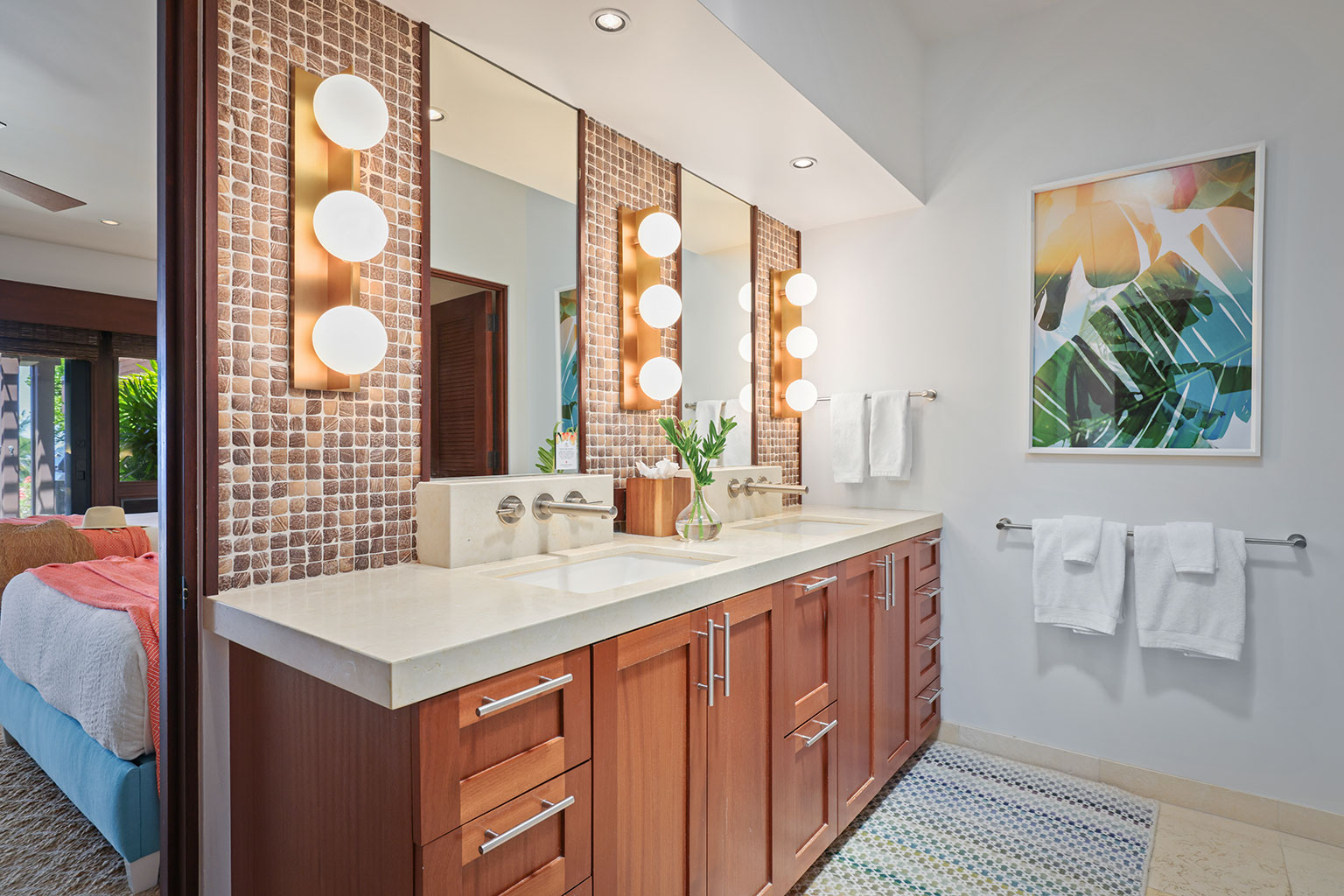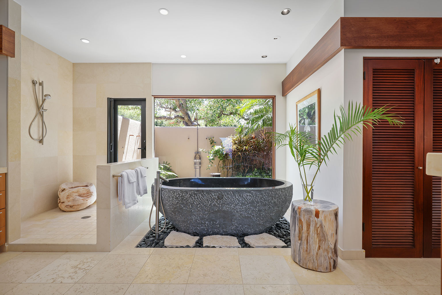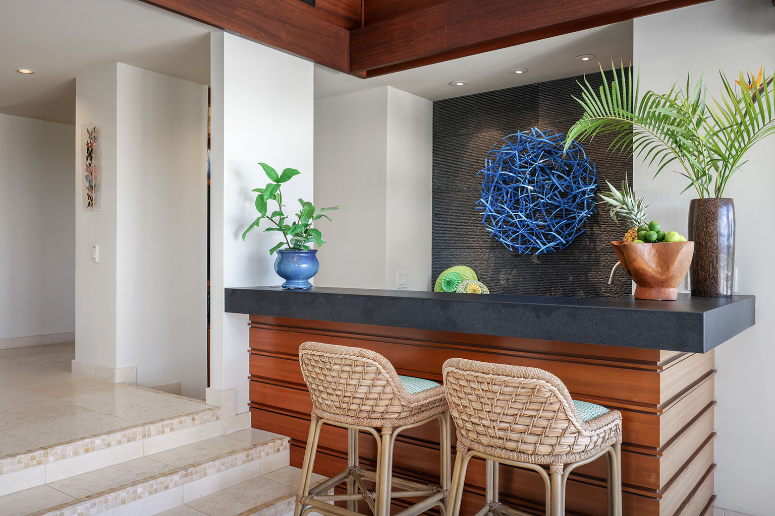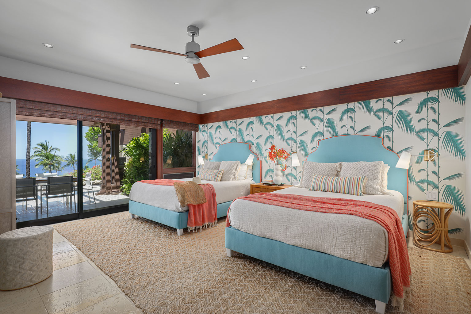 この1階建ての洗練を極めたオーシャンフロント邸宅には、屋内と屋外のスペースを一体化するスライド ガラス ドアがハワイのライフスタイルにぴったりな段差のあるサンクン リビング、Wolf製およびSub-Zero製調理機器を備えたプロ キッチン、ウェットバーを併設したダイニング エリア、屋外シャワーと屋内浴槽を備えたマスター スイートルーム、2台のクイーンベッドのあるベッドルーム、そして2台のツインバンクベッド(2段ベッド)のあるベッドルームを完備しております。 その他、ランドリー ルーム、エアコンとシーリング ファン、プライベート プール、バーベキュー コンロのある家具付きラナイ、車2台分の駐車場をご用意。ビーチやゴルフ場、マウナ ケア ビーチ ホテルから徒歩でほんの5分といったロケーションも魅力のレジデンスです。