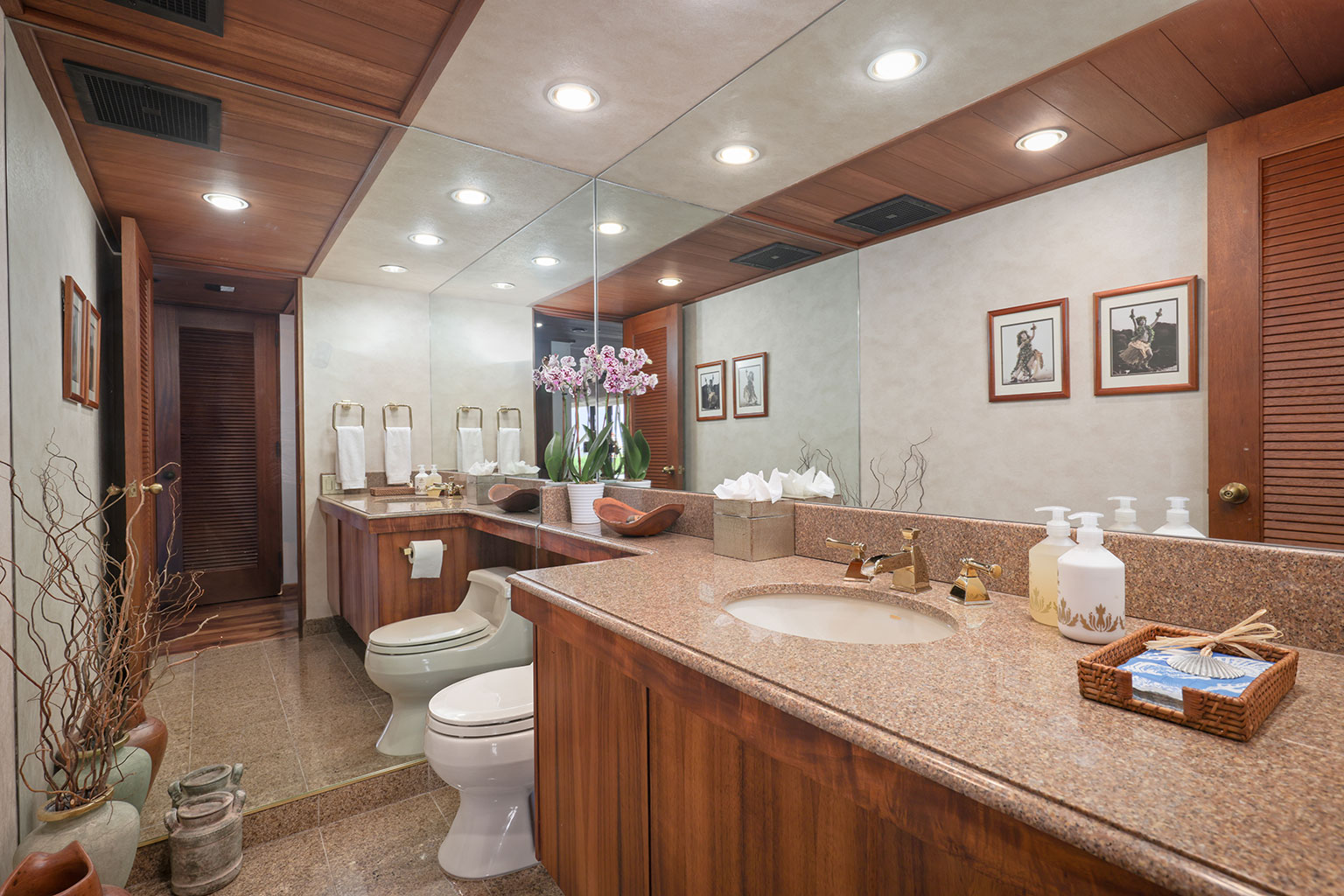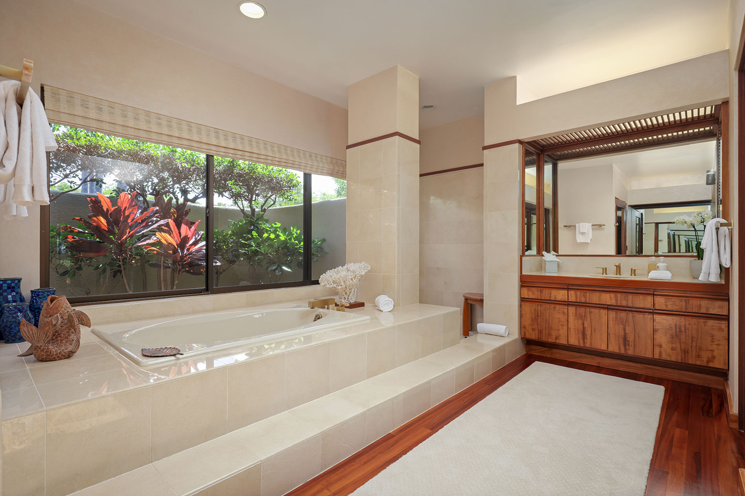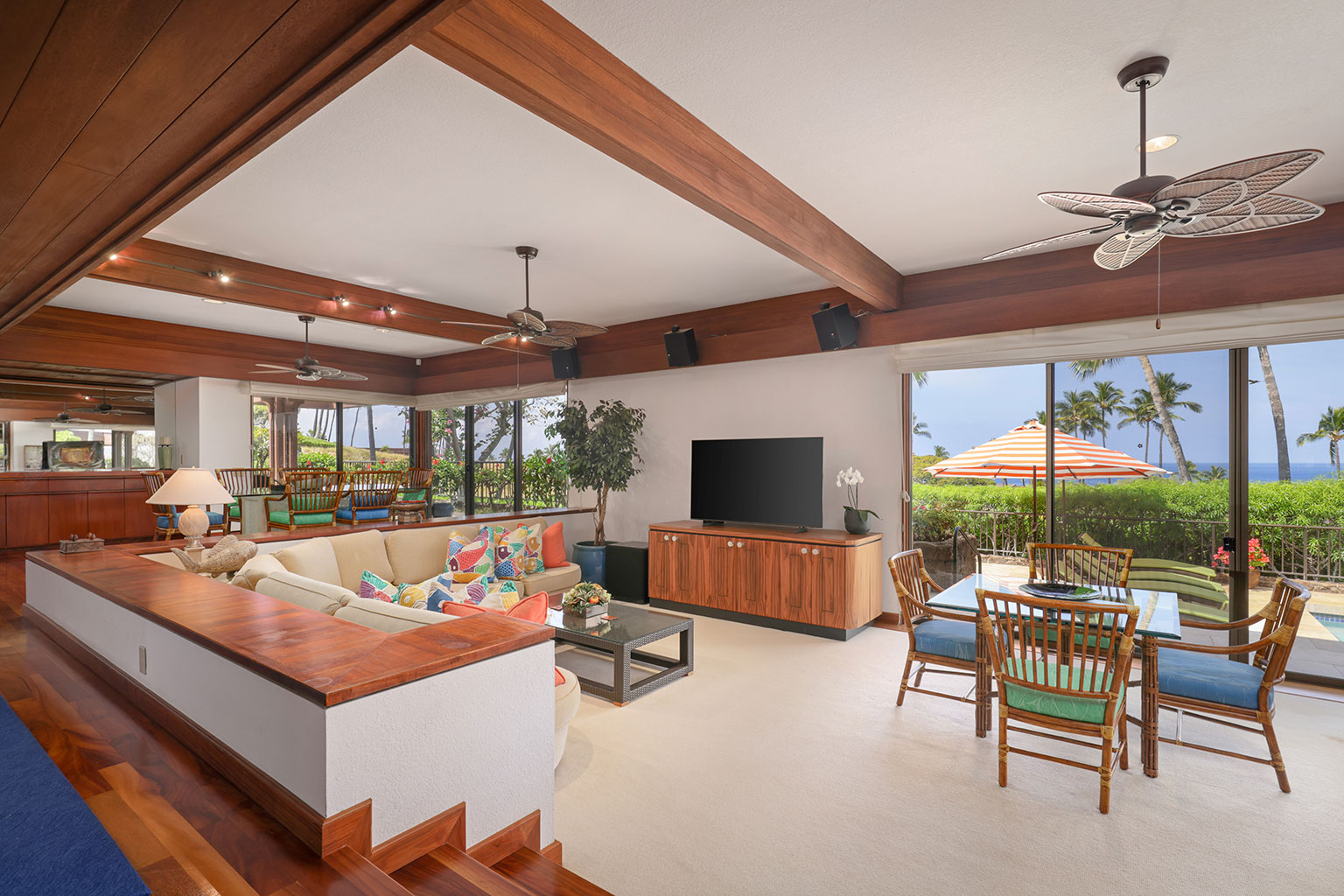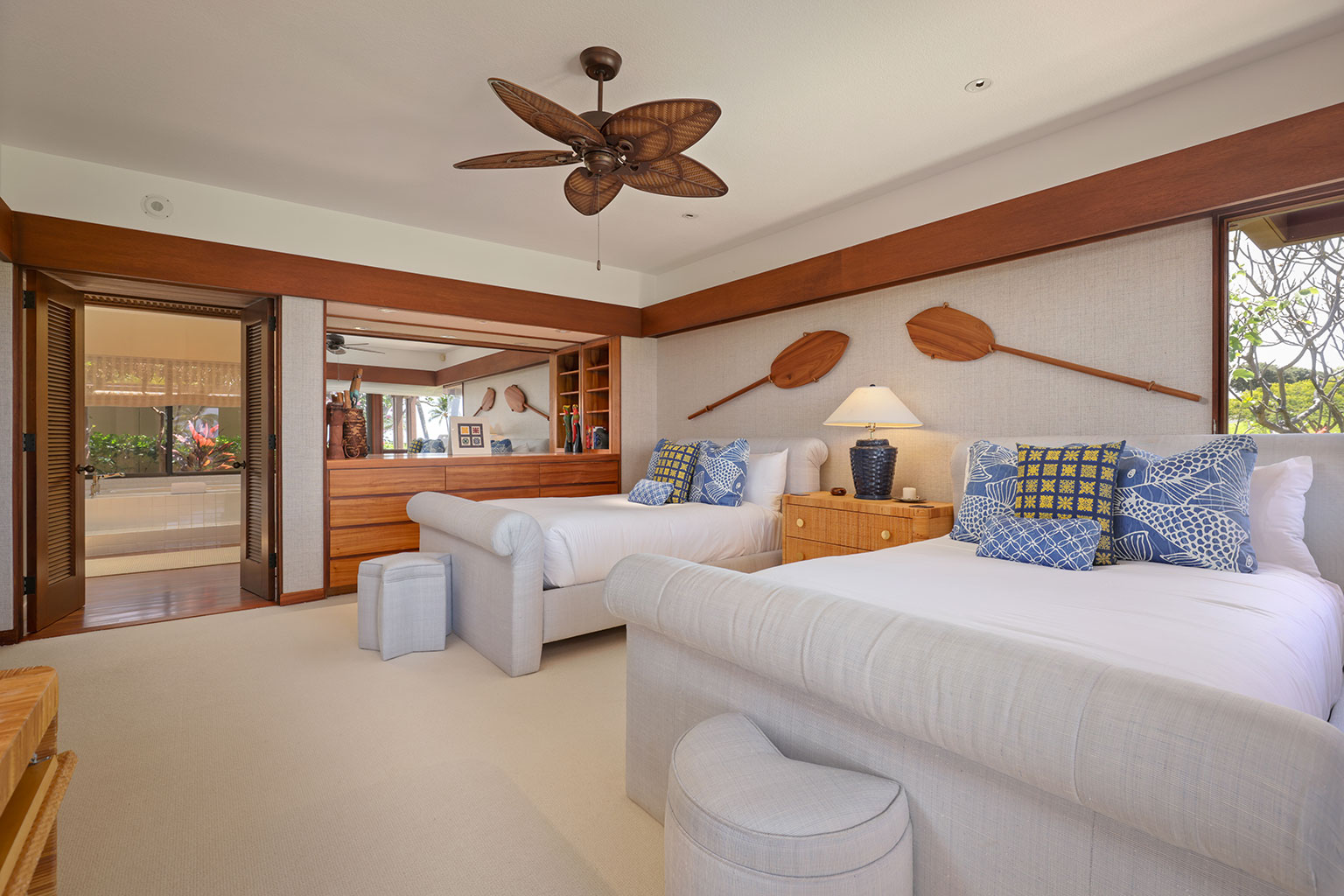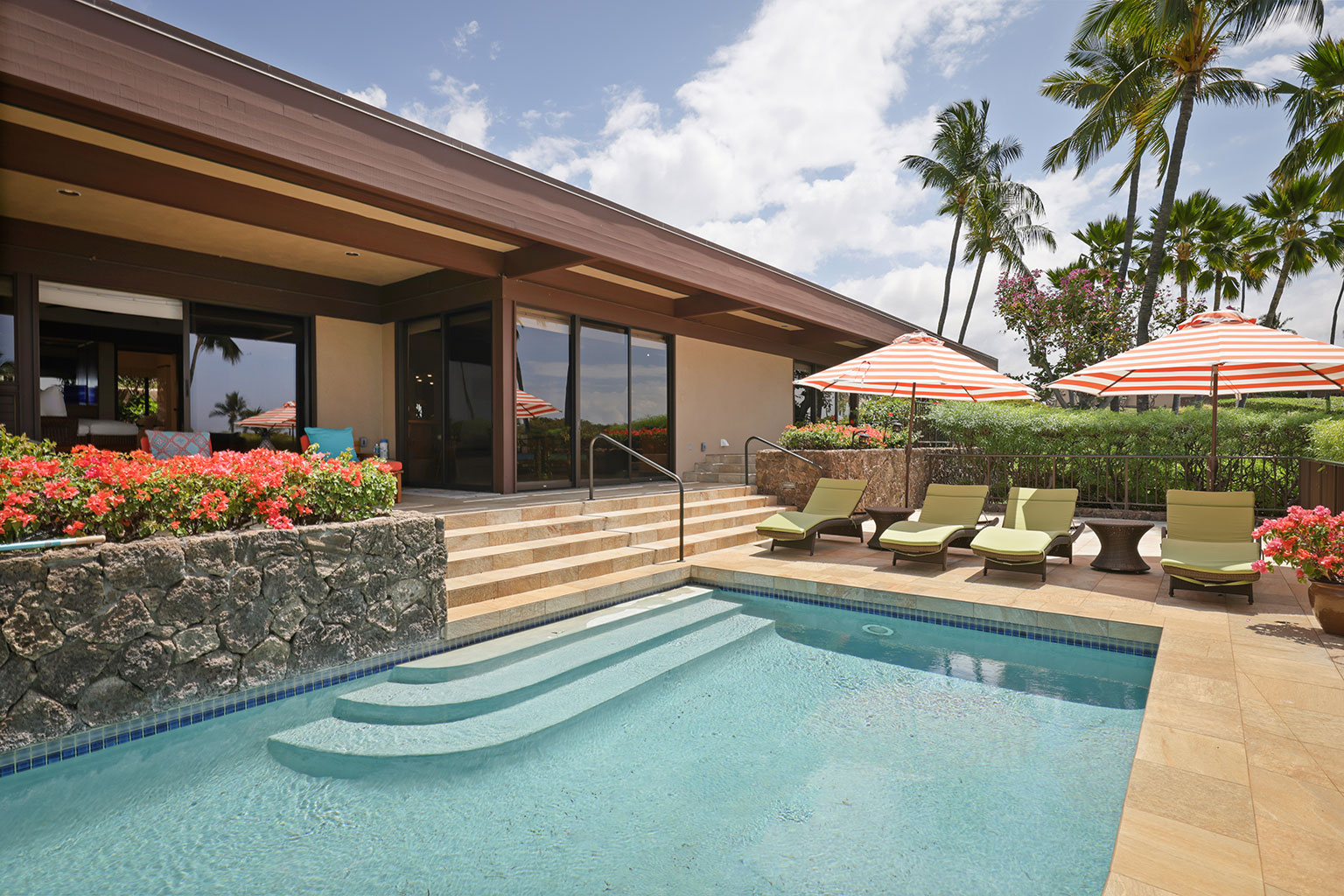 ヴィラ アット マウナケアは、豪華なオーシャンビューを望むクラシックなハワイアンスタイルの邸宅です。この平屋建ての邸宅では、スライディングドアを開放して室内外のリビングエリアをつなげて使うことができます。また、屋内にはウェットバーを備えた段差のあるサンクン リビング、屋外のプライベートデッキにはプールとBBQ施設があります。プライマリースイートにはキングベッド1台が入っており、バスルームも併設されています。セカンダリースイートにはダブルベッドが2台あり、こちらもバスルームが併設されています。その他、エアコン、洗濯機と乾燥機、プライベートガレージも備わっております。