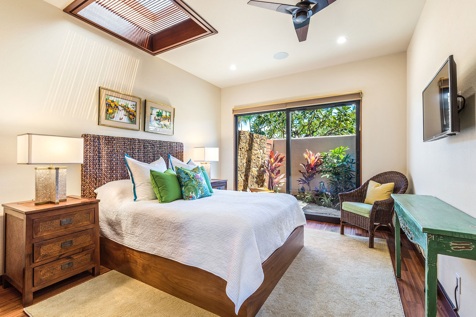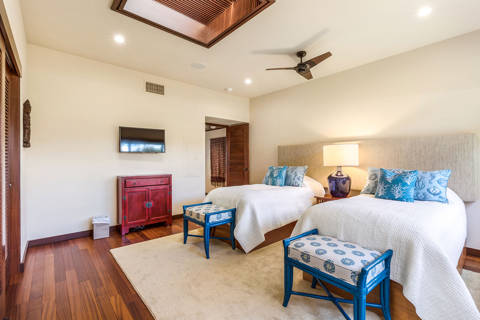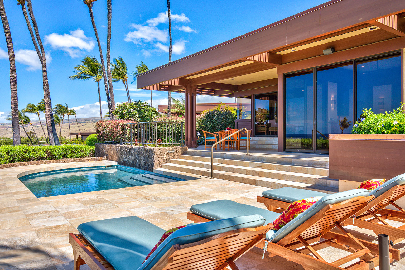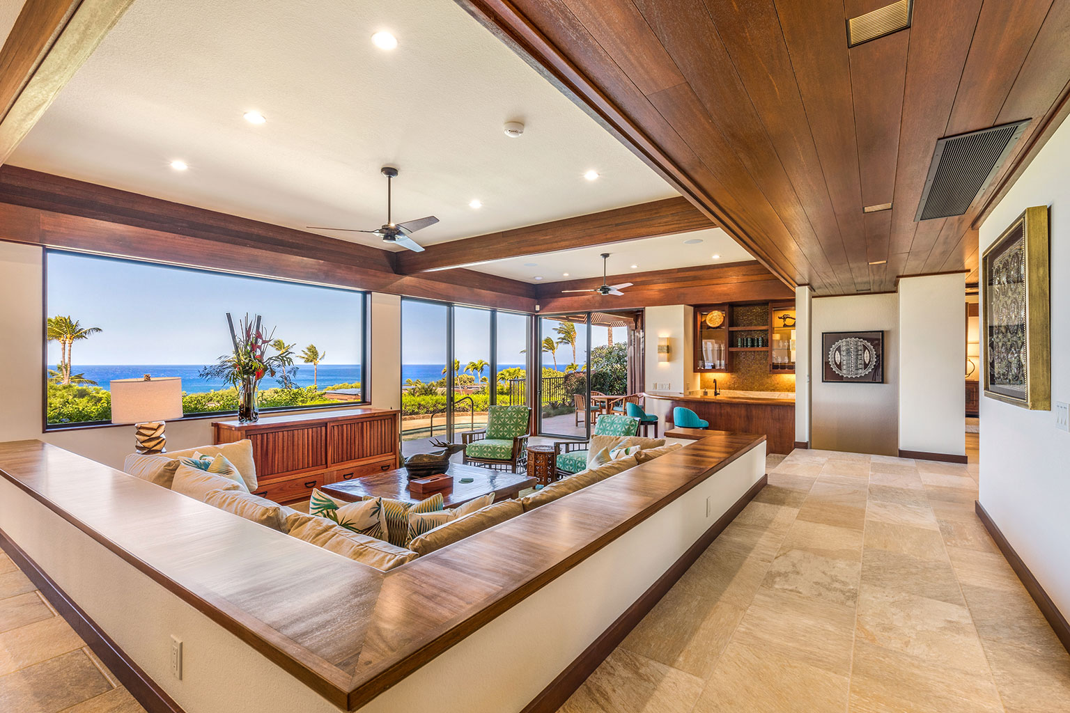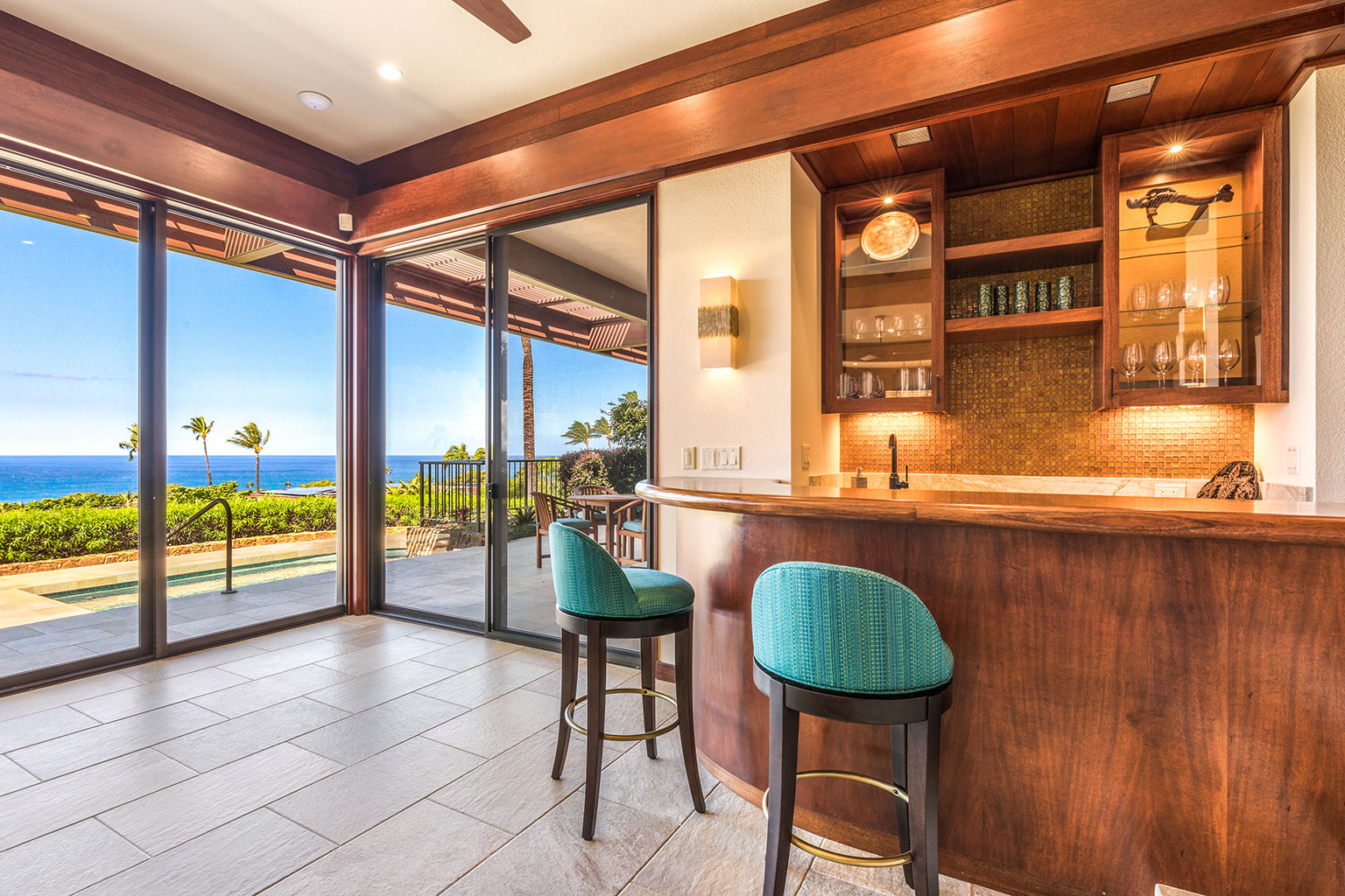 この広大な一階建てのオーシャンフロント邸宅には、ハワイのライフスタイルにぴったりな、屋内と屋外のスペースを一体化するスライド ガラス ドアのある段差をつけたサンクン リビングとSonos音響システム、Wolf製およびSub-Zero製調理機器とワインセラーを備えたシェフ キッチン、ウェットバーを併設したダイニング、キングベッドのあるふたつのマスター スイートルーム(そのうちひとつには屋外シャワーあり)、2台のツインベッドをキングベッドにすることも可能なベッドルームを完備しております。さらに4つ目のベッドルームには、クイーンサイズのベッドがあり、隣接するホールのシャワーバスルームを利用できます。その他、ランドリー ルーム、エアコンとシーリング ファン、プライベート温水プール、バーベキュー コンロのある家具付きラナイ、車2台分の駐車場もご用意。ビーチやゴルフ場、マウナ ケア ビーチ ホテルから徒歩でほんの5分といったロケーションも魅力のレジデンスです。