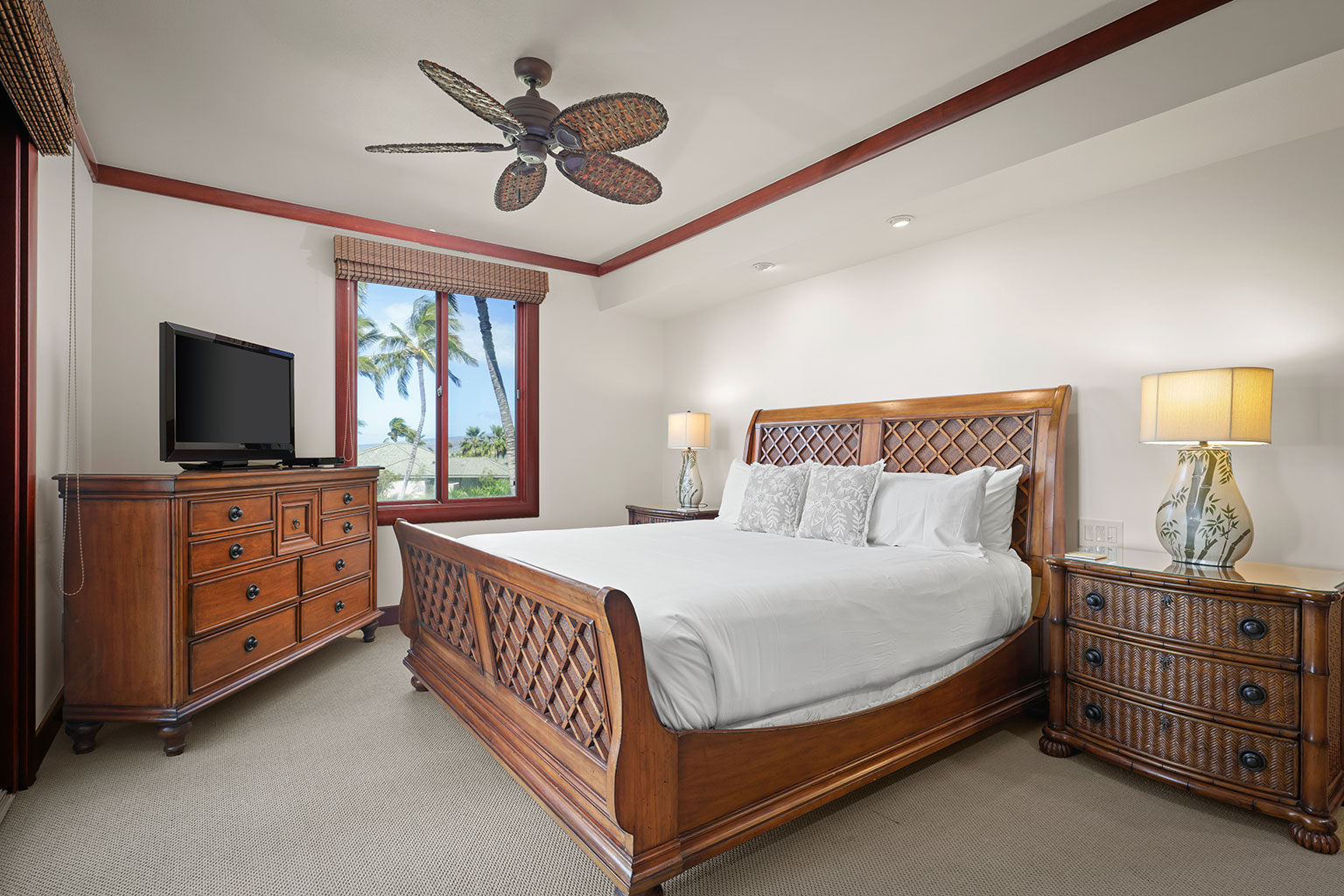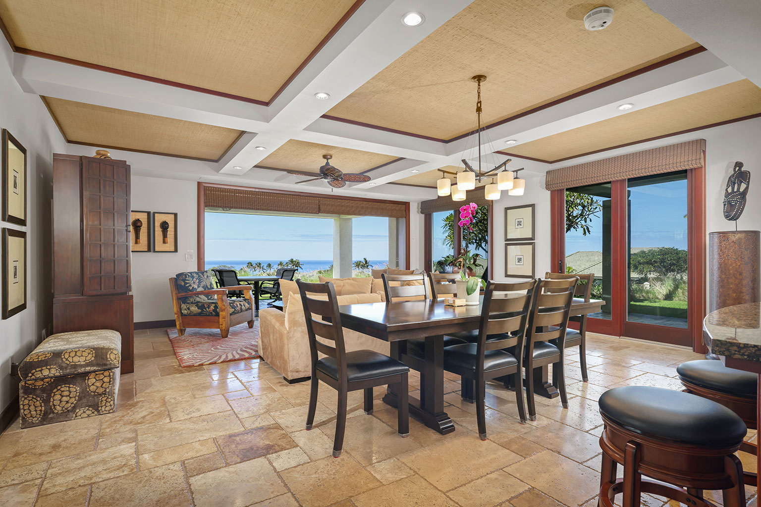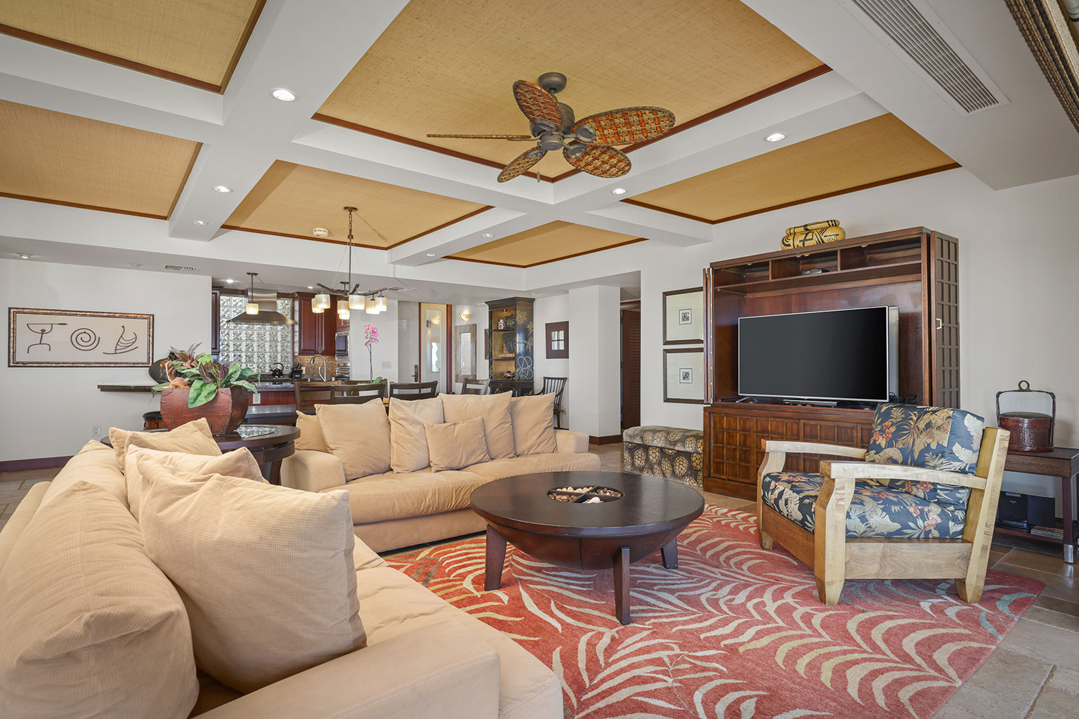 息をのむような素晴らしいオーシャンビューを見渡すレジデンスです。ゲストスイートルームが2部屋、どちらのお部屋にもキングベッドが入っており、またバスルームも併設されています。3つ目のゲストルームにはツインベッド2台(スプリットキング)が入っております。プロパティーにはエアコン、シーリングファン、洗濯機/乾燥機、ワインセラー、そしてラナイには家具およびWolf社製アウトドアキッチン(BBQグリル、冷蔵庫)が備わっています。このレジデンスには海から約1マイル(約1.6km)の場所にあります。