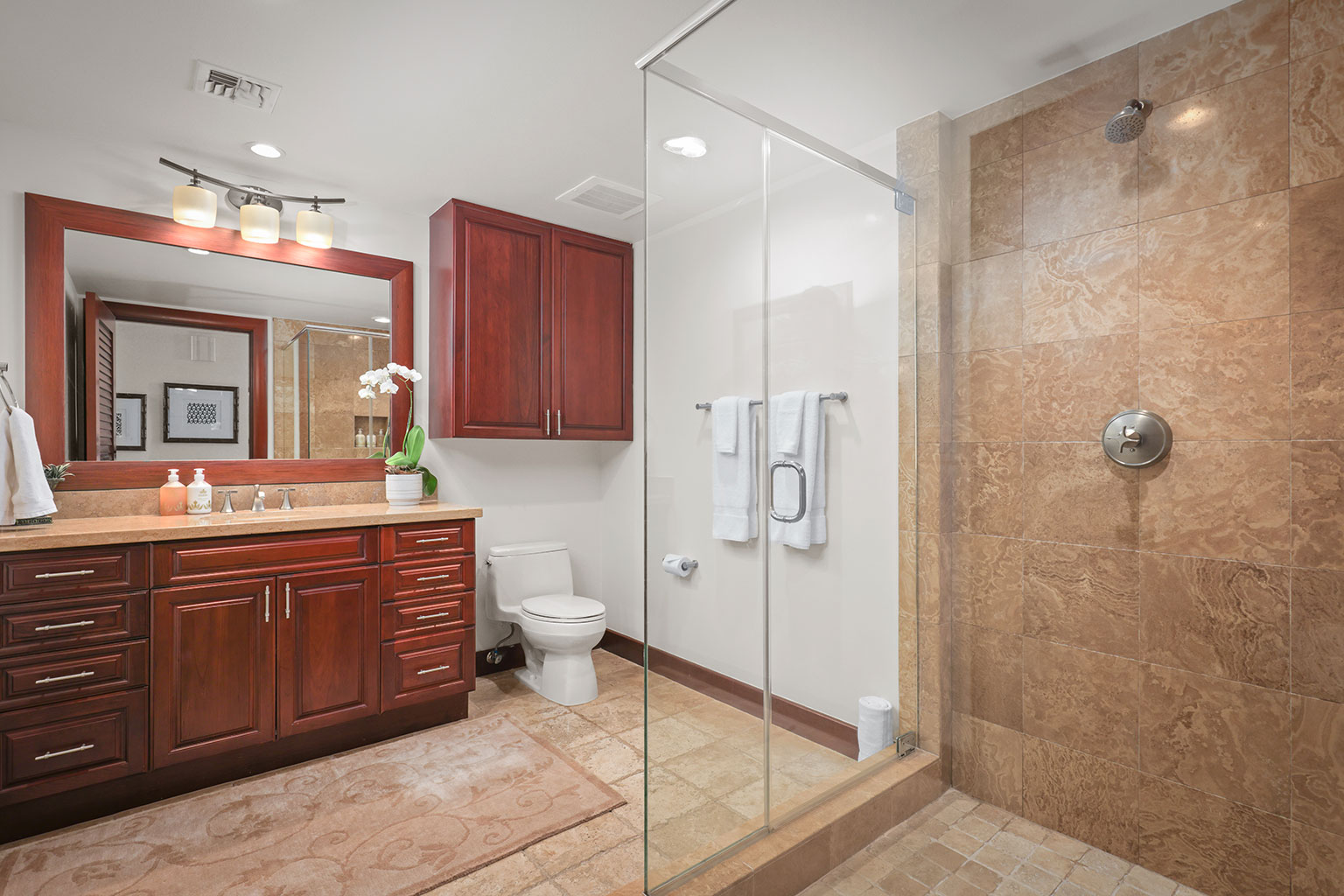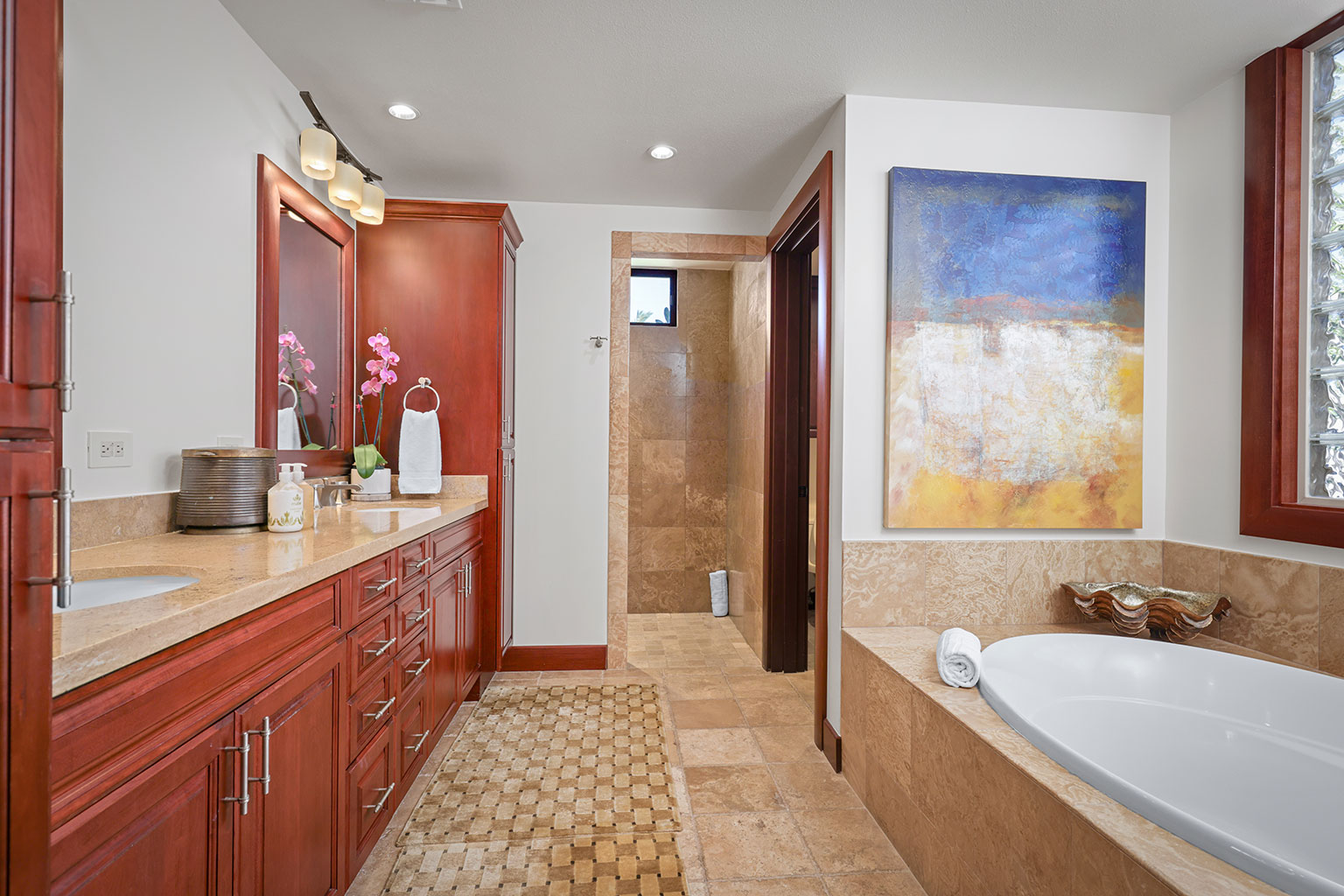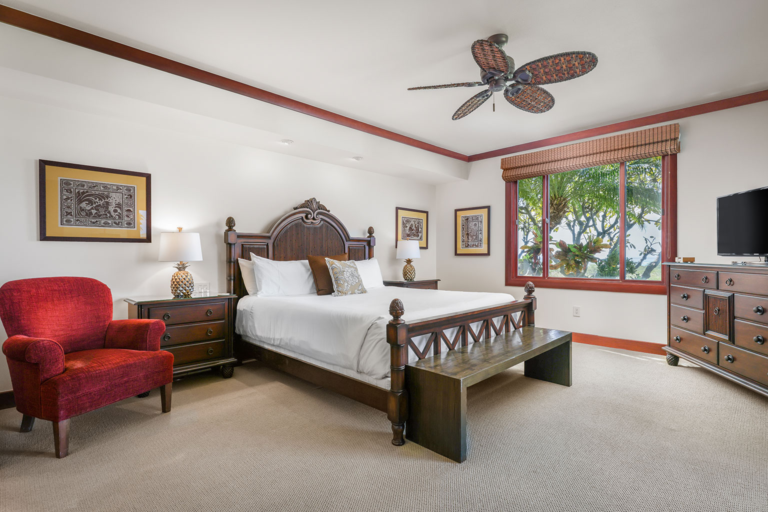 息をのむような素晴らしいオーシャンビューを見渡すレジデンスです。ゲストスイートルームが2部屋、どちらのお部屋にもキングベッドが入っており、またバスルームも併設されています。3つ目のゲストルームにはツインベッド2台(スプリットキング)が入っております。プロパティーにはエアコン、シーリングファン、洗濯機/乾燥機、ワインセラー、そしてラナイには家具およびWolf社製アウトドアキッチン(BBQグリル、冷蔵庫)が備わっています。このレジデンスには海から約1マイル(約1.6km)の場所にあります。