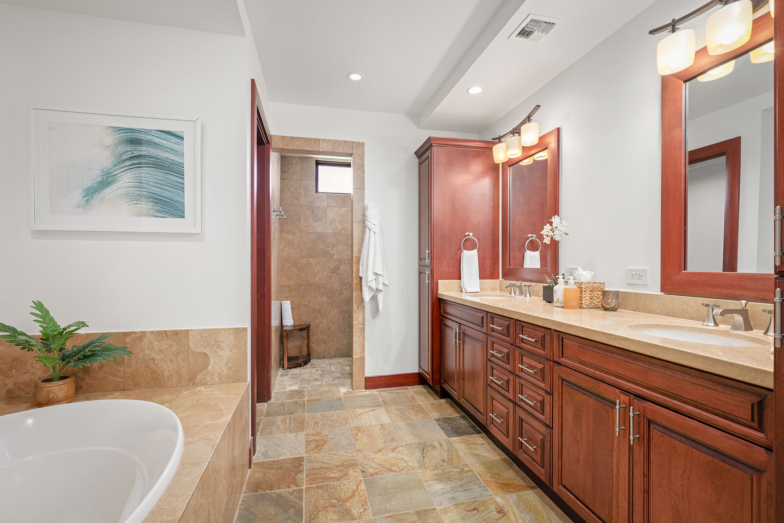 ラナイには家具およびWolf製アウトドアキッチン(BBQグリル、冷蔵庫)が備わっています。このレジデンスは海から約1マイル(約1.6km)の場所にあります。
