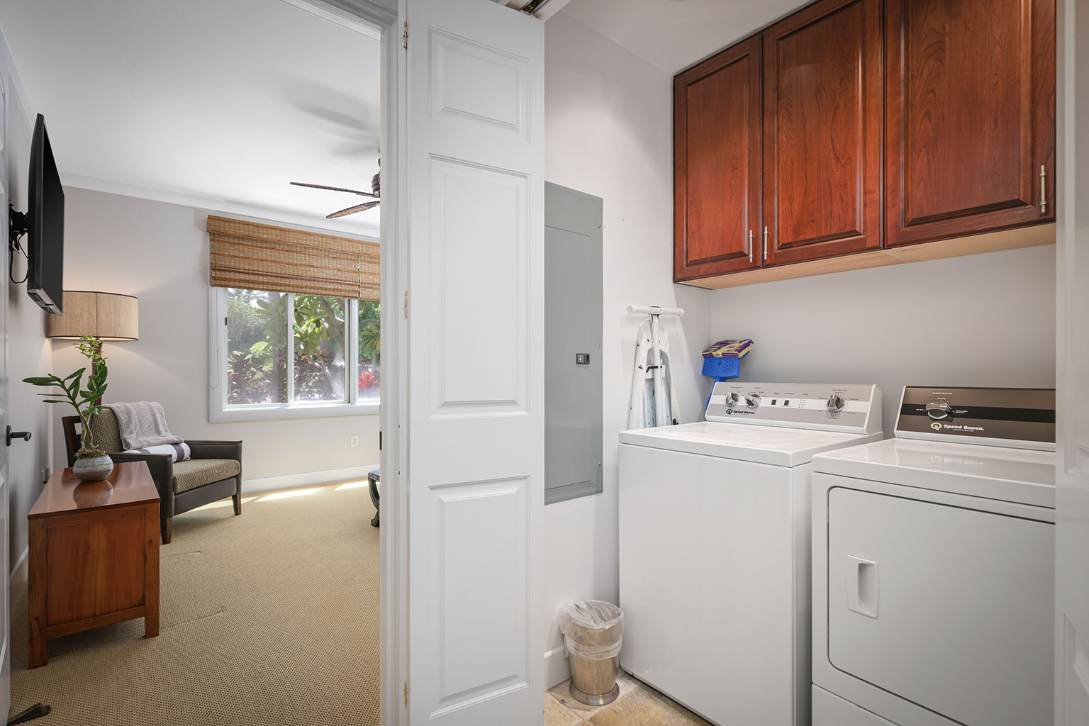 地上1階角部屋のオーシャンビュー・レジデンスです。ガラス窓にポケットドアシステムを採用し、リビングエリアは窓を開けた時に屋内と屋外スペースが一体化するようになっています。プロ仕様のキッチンにはステンレス製のガスレンジと電化製品、大理石のカンタートップが採用され、6名で利用できるダイニングテーブルが備わっています。ゲストスイートルームが2部屋、それぞれキングベッドが1台入っており、スパ仕様のバスルームが併設されています。エアコン、ランドリークローゼット、シーリングファン、車1台分の駐車場完備。このレジデンスは海から約1マイル(約1.6km)の場所にあります。