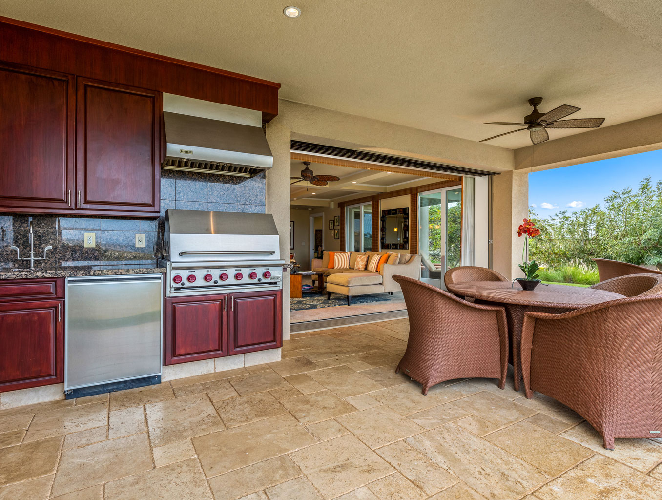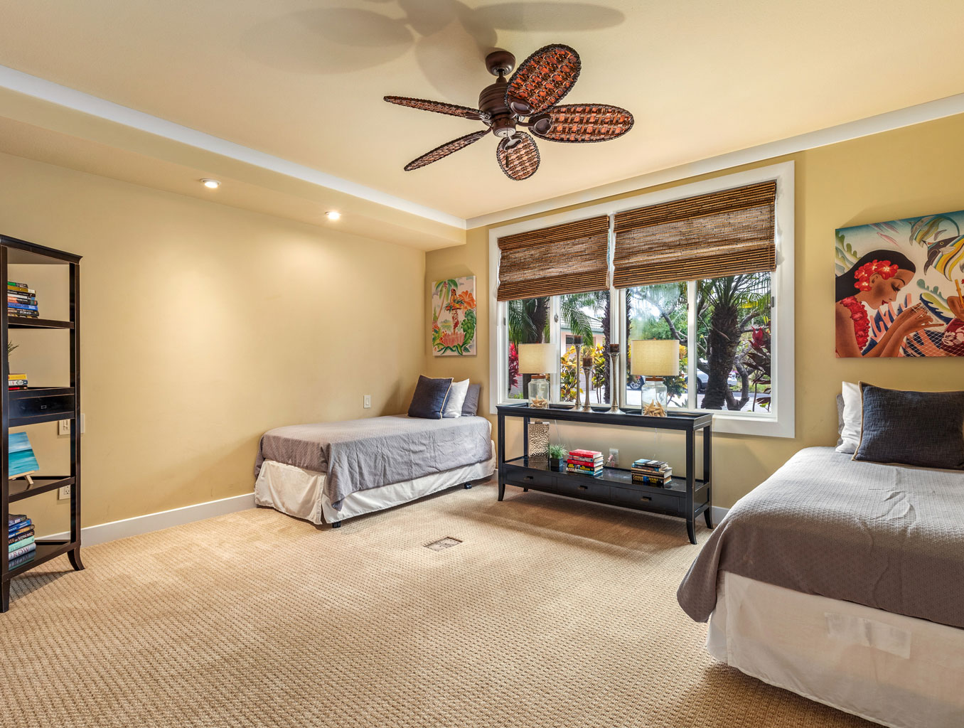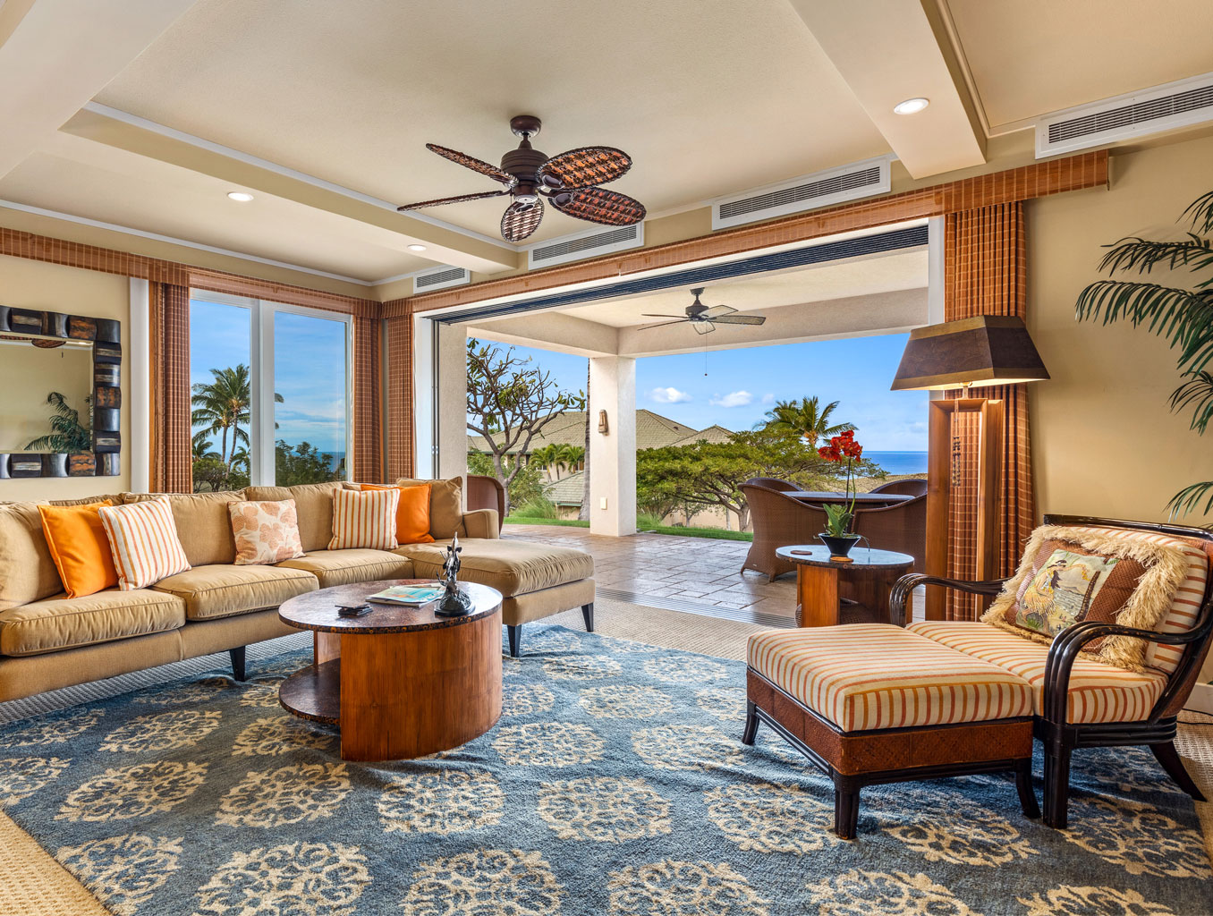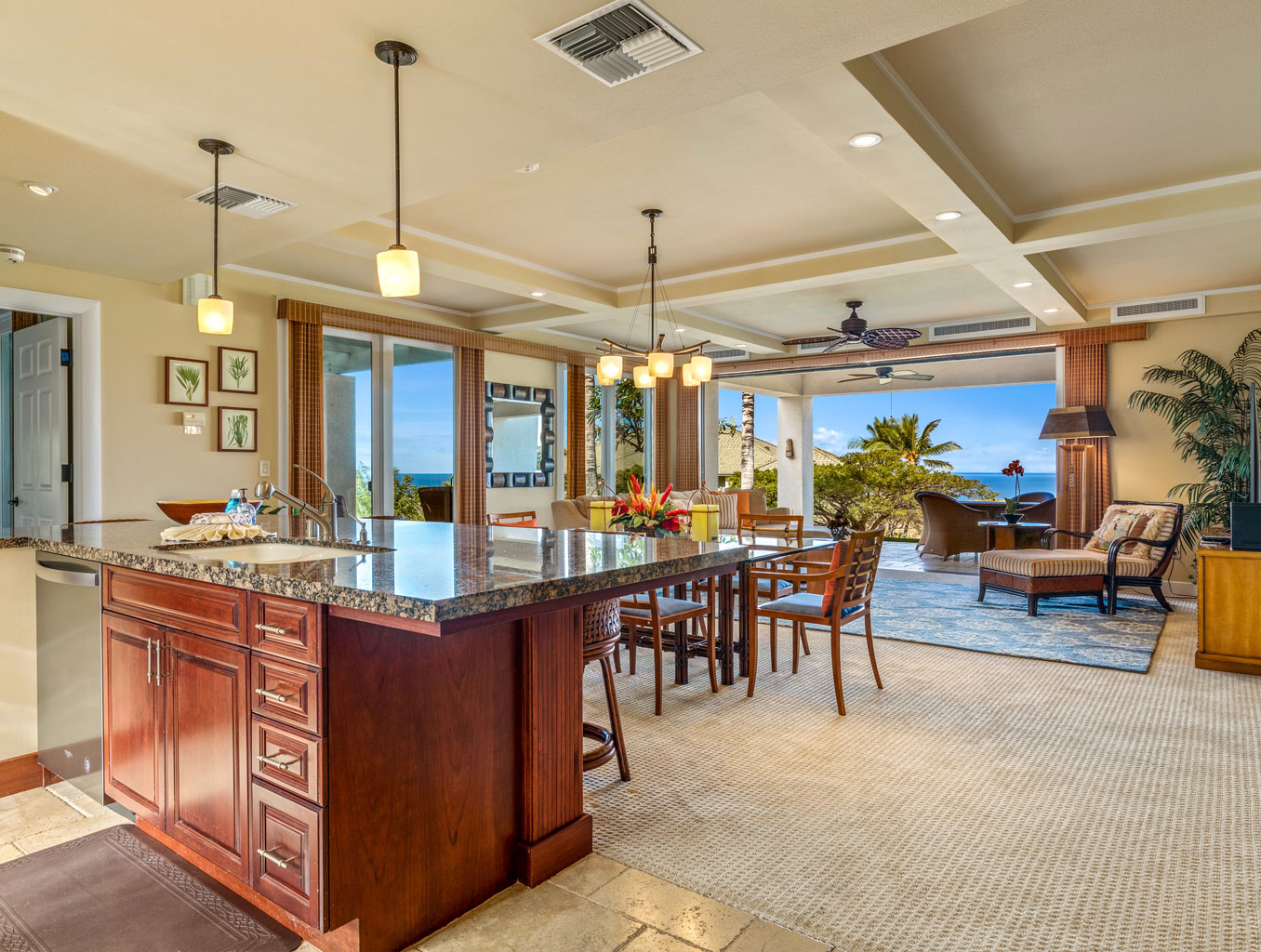 プロフェッショナルにデザインされた地上階に位置するこのオーシャンビュー レジデンスには、屋内外を一体化するハワイのライフスタイルを創り出すスライド ガラスドアのある心地よい空間、プロフェッショナル シリーズのステンレス製電化製品/ガスレンジを備えたシェフキッチン、2つのマスター スイートルーム、ツインベッドのあるゲスト用ベッドルームをご用意しております。その他、エアコン、シーリングファン、洗濯機/乾燥機、Wolf製屋外キッチン(バーベキューコンロと冷蔵庫)のある家具付きラナイをご用意。このレジデンスは海から1マイルの場所にあります。