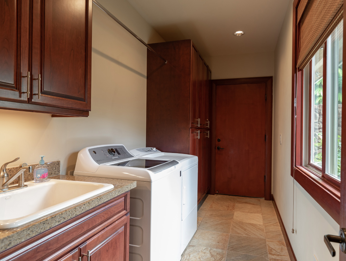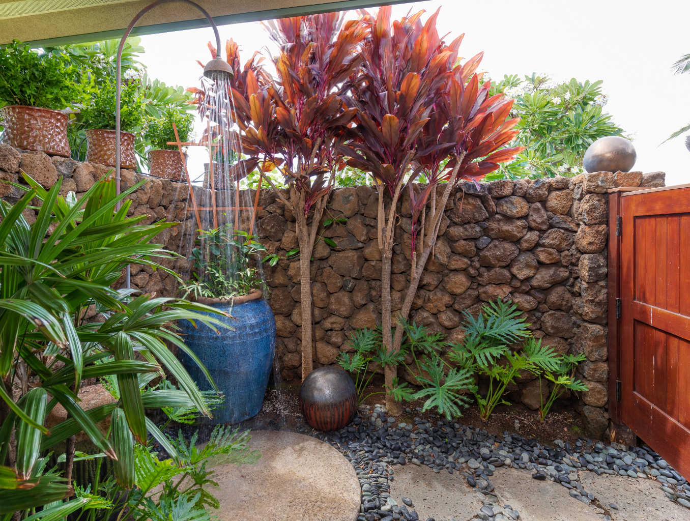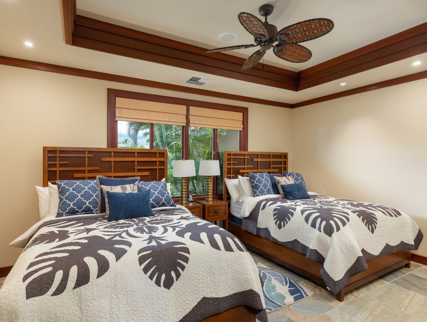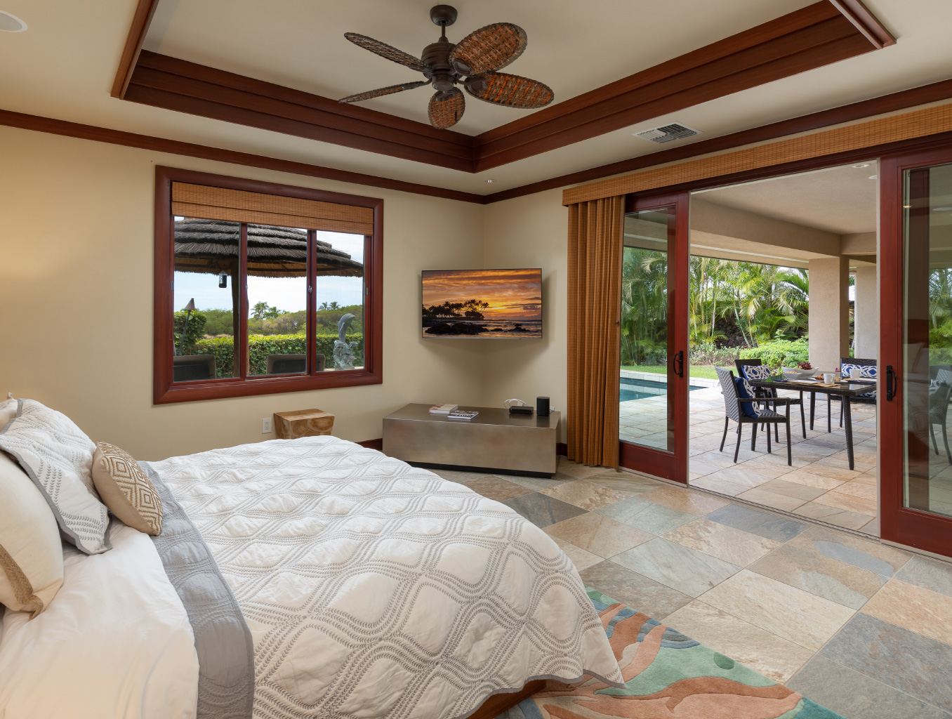 室内に一歩踏み入れるとアロハを感じる心地よい空間が広がる、細部にこだわったこのオーシャンビューのアップカントリーなヴィラでは、華やかなアートワークのコレクションや洗練されたアイランドスタイルの家具、屋内外を一体化するハワイのライフスタイルを創り出すスライド式のポケットドアのある心地よい空間、花崗岩のカウンタートップ、ダブルオーブンやワイン用冷蔵庫を含むWolf製およびSub-Zero製調理機器をそろえたグルメなキッチン、6人用のダイニングテーブルをご提供しております。