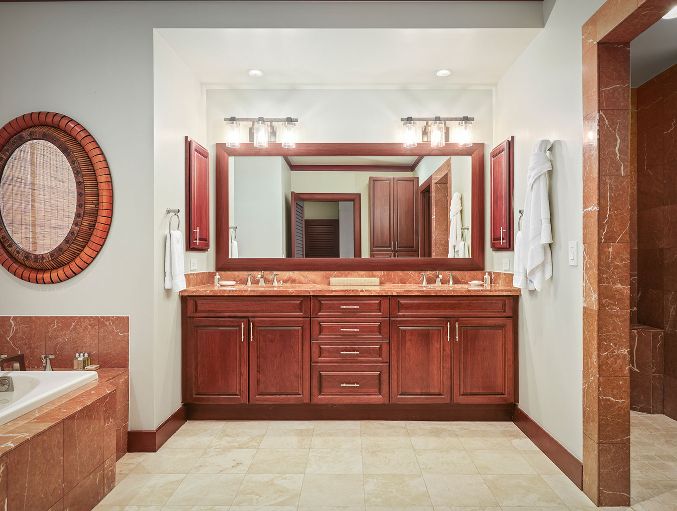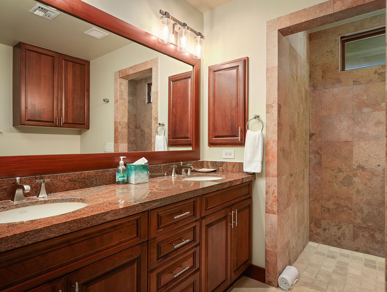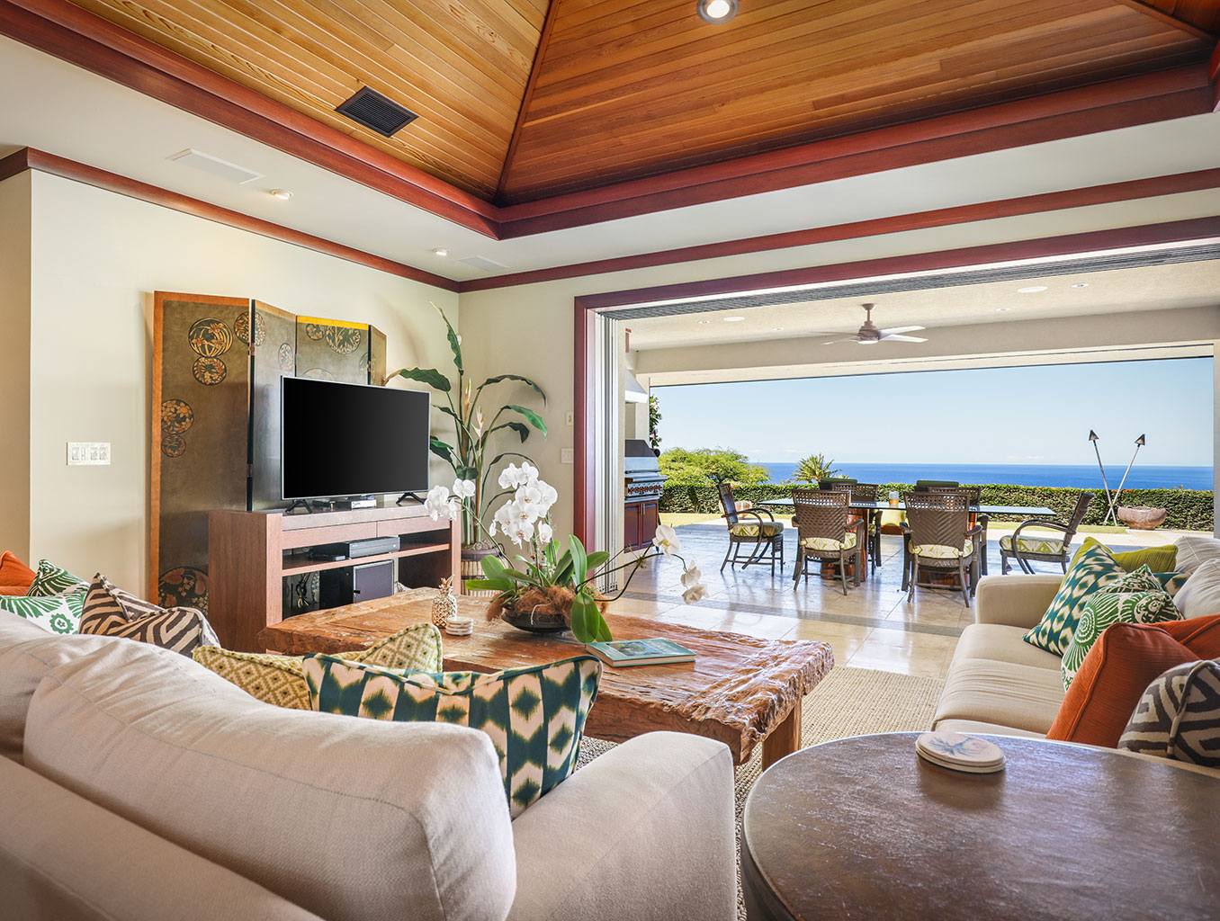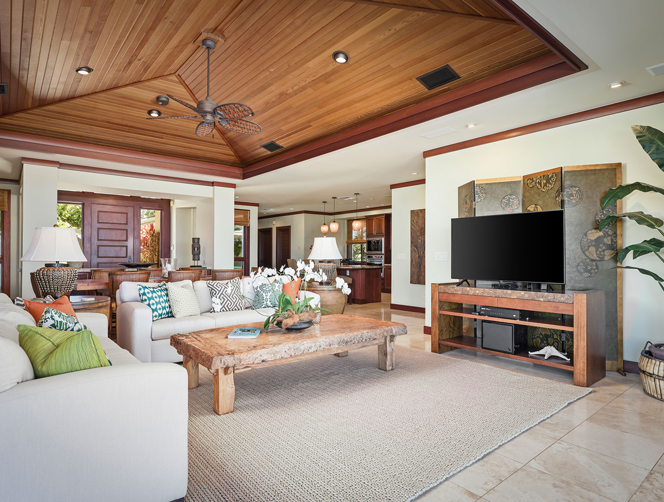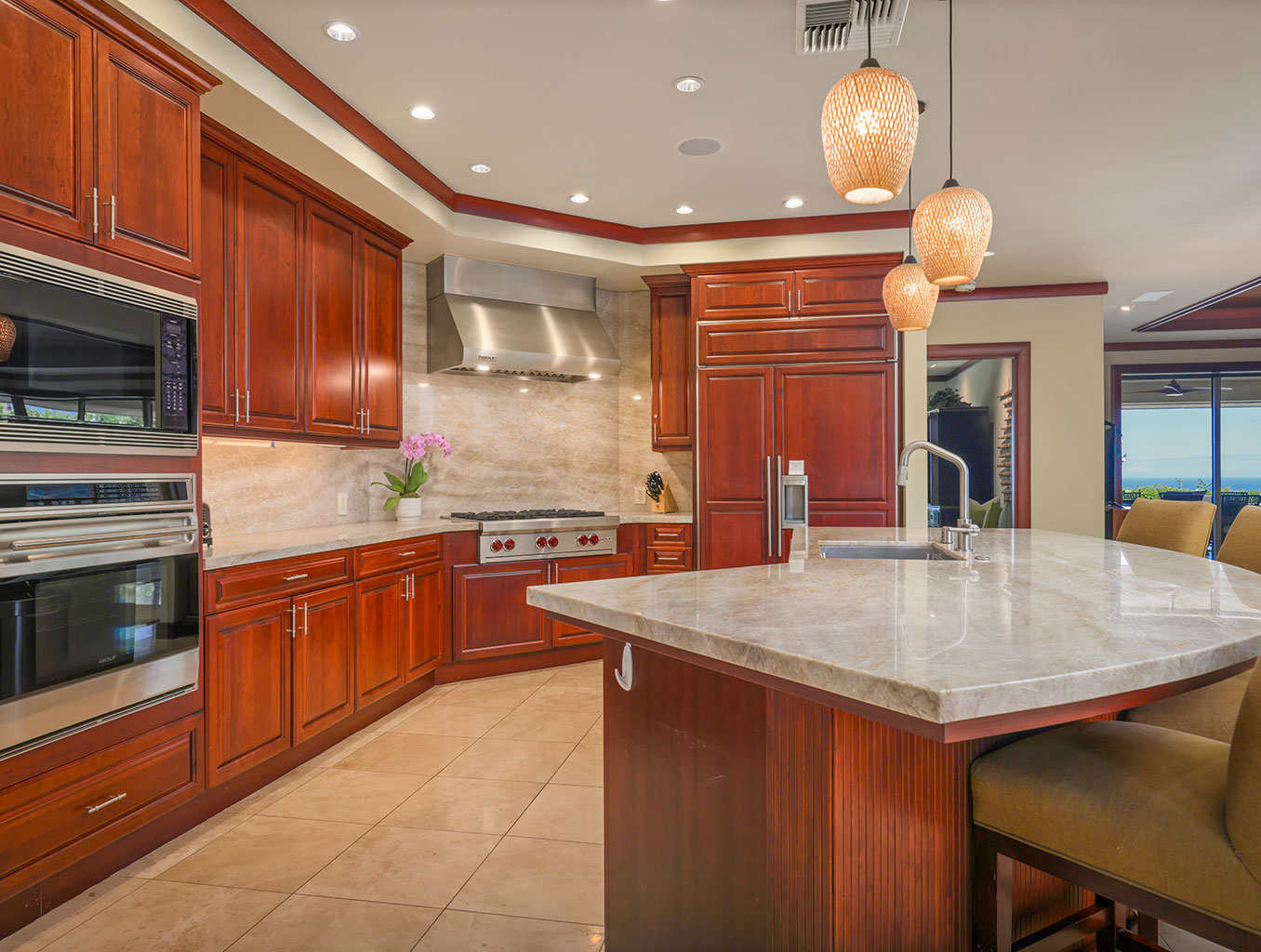 このクラシカルなハワイアン インテリアが美しい豪華な「アップカントリー」のオーシャンビュー レジデンスは、屋内外を一体化するハワイのライフスタイルを創り出すスライド ガラスドアのある心地よい空間、ガスレンジやダブルオーブン、ワインセラーなどのWolf製調理機器を設えたシェフキッチン、ふたつのマスター スイートルームならびに専用玄関やウェットバー、冷蔵庫およびラナイのあるオハナ スイートルームをご用意しております。その他、空調とシーリングファン、洗濯機と乾燥機、屋外シャワー、プライベート プール、ジャグジー、Wolf製屋外キッチン(バーベキュー コンロと冷蔵庫)のある家具付きラナイをご提供。車庫はご利用いただけません。このレジデンスは海から約1マイルの場所にあります。