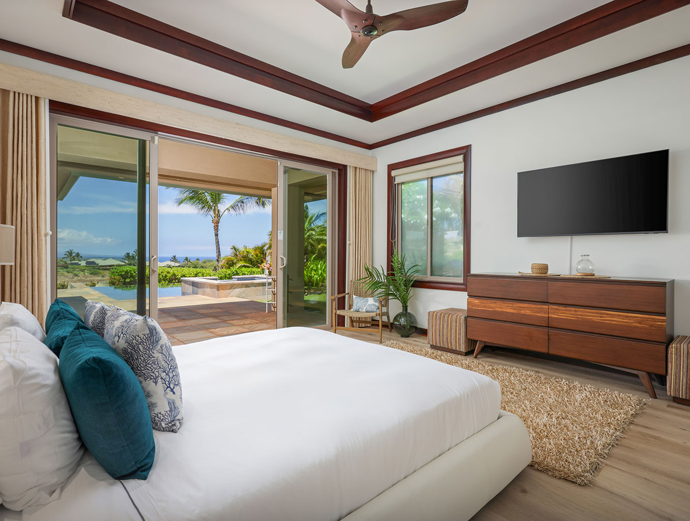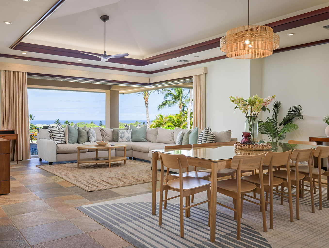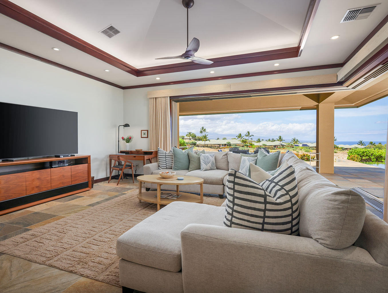 このクラシカルなハワイアン インテリアが美しい豪華な「アップカントリー」のオーシャンビュー レジデンスは、屋内外を一体化するハワイのライフスタイルを創り出すスライド ガラスドアのある心地よい空間、ガスレンジやダブルオーブン、ワインセラーなどのWolf製調理機器を設えたシェフキッチン、ふたつのマスター スイートルームならびに専用玄関やウェットバー、冷蔵庫およびラナイのあるオハナ スイートルームをご用意しております。その他、空調とシーリングファン、洗濯機と乾燥機、屋外シャワー、プライベート プール、ジャグジー、Wolf製屋外キッチン(バーベキュー コンロと冷蔵庫)のある家具付きラナイをご提供。車庫はご利用いただけません。このレジデンスは海から約1マイルの場所にあります。