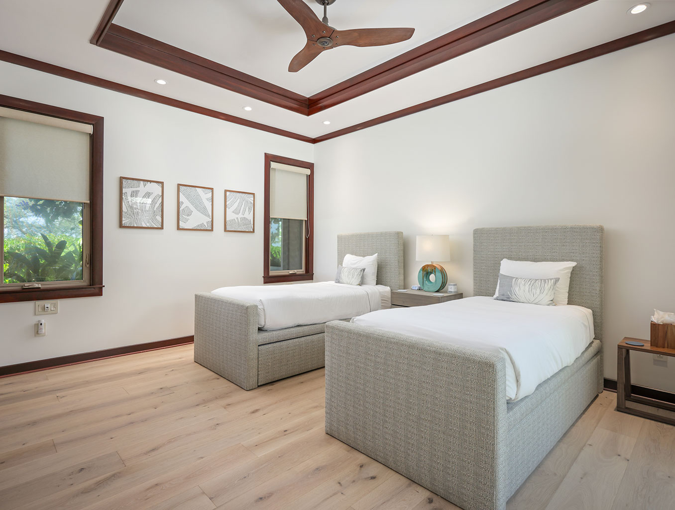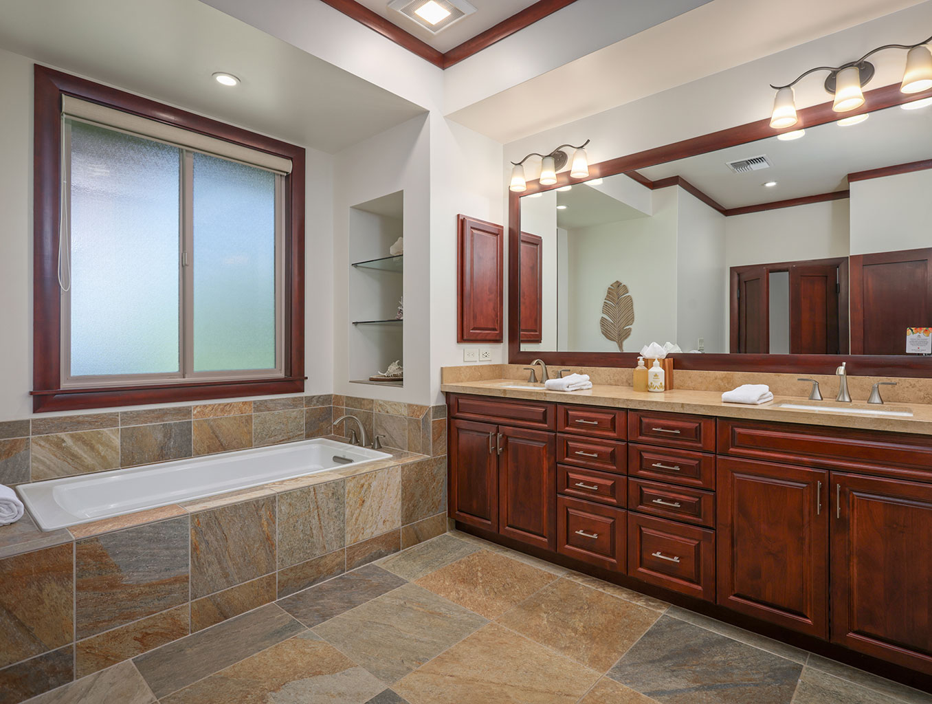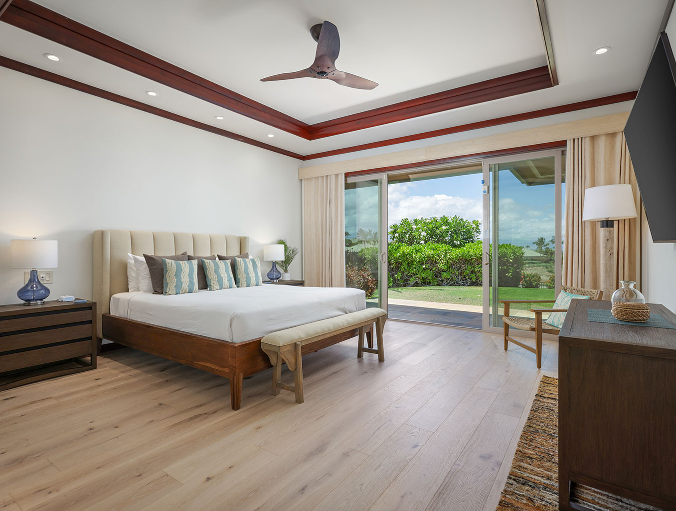 このクラシカルなハワイアン インテリアが美しい豪華な「アップカントリー」のオーシャンビュー レジデンスは、屋内外を一体化するハワイのライフスタイルを創り出すスライド ガラスドアのある心地よい空間、ガスレンジやダブルオーブン、ワインセラーなどのWolf製調理機器を設えたシェフキッチン、ふたつのマスター スイートルームならびに専用玄関やウェットバー、冷蔵庫およびラナイのあるオハナ スイートルームをご用意しております。その他、空調とシーリングファン、洗濯機と乾燥機、屋外シャワー、プライベート プール、ジャグジー、Wolf製屋外キッチン(バーベキュー コンロと冷蔵庫)のある家具付きラナイをご提供。車庫はご利用いただけません。このレジデンスは海から約1マイルの場所にあります。